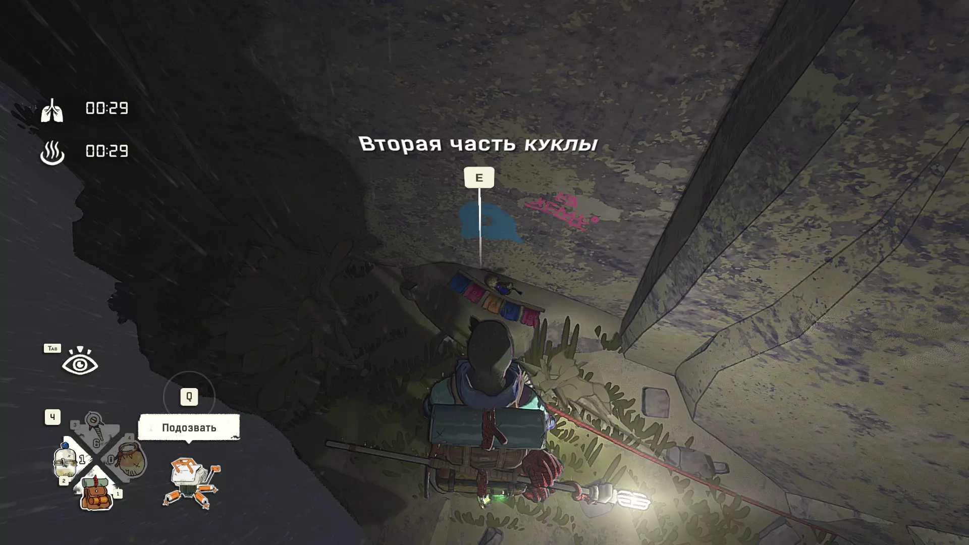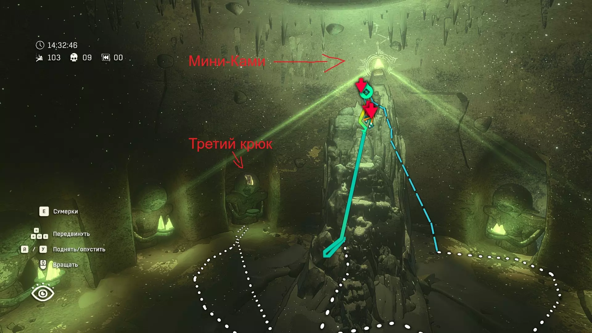 生命线: 将绳索拉伸至最大长度 用钩子勾住物体,向上或向下攀爬并尽可能下降。或者可以用钩子勾住岩石,下降后移动。关键是要让剩余的绳索数量为0