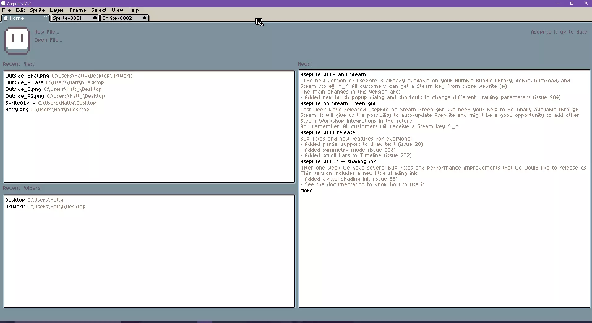 给想了解这个软件操作有多简单的人一份基础指南。还有图片!超棒的图片! 2020年编辑:这份指南嘛,唉,现在已经有些年头了。如果某些地方的内容和现在不一样,我深表歉意。我刚开始写这份指南的时候,Aseprite还非常基础呢!感谢大家的评分、评论以及对我的耐心! 首页 嘿,我就不教大家怎么在Steam上打开这个软件了,显然你们可能已经知道怎么操作了。提示:直接点击它就行。点那个东西。现在就点! 点击之后,你就会看到这个主屏幕。