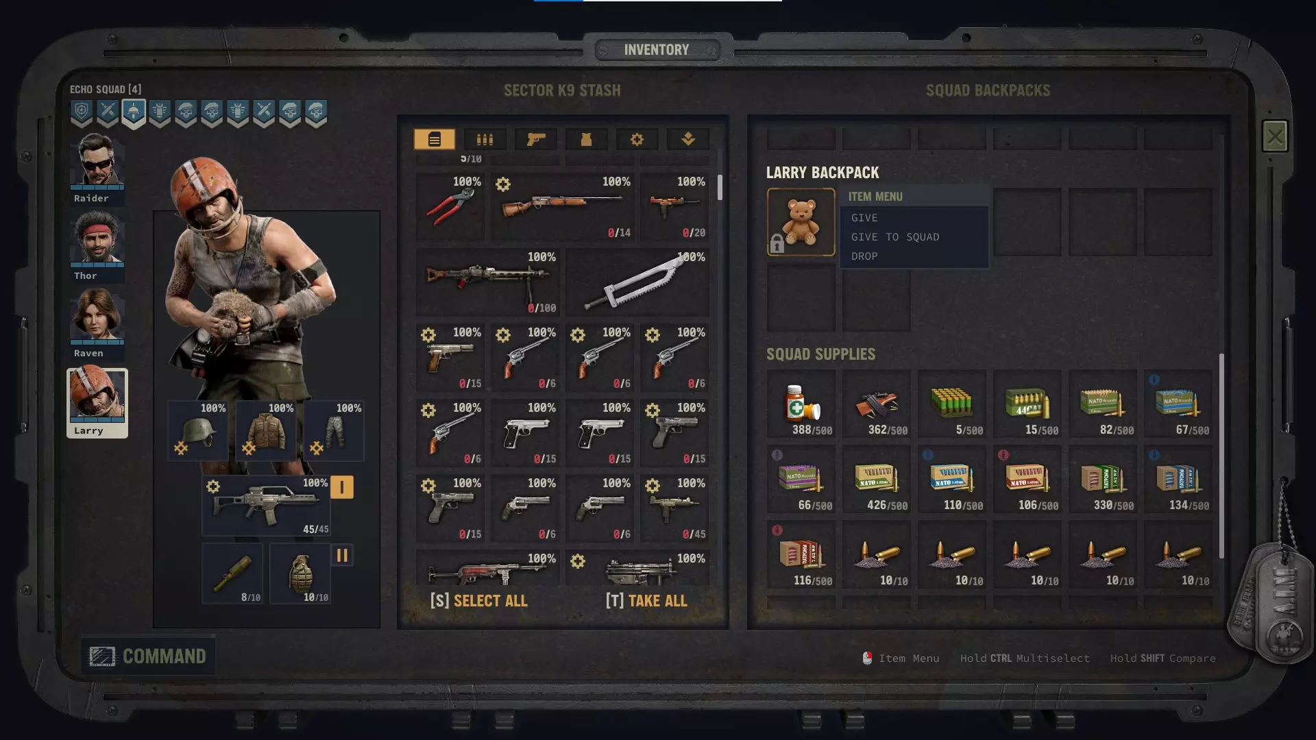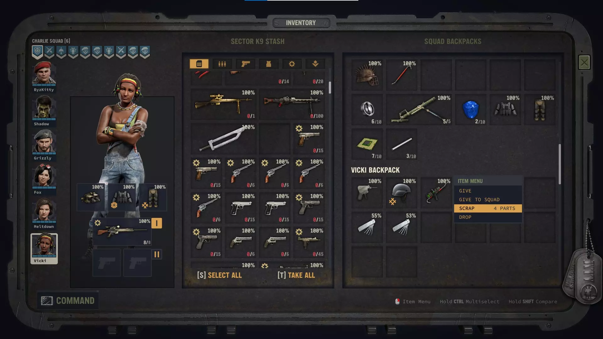 医疗物品的机制略有不同。使用医疗物品治疗角色时,其【耐久度百分比】会下降。无需修复医疗物品,你始终可以通过消耗【药品】将其重新补充至100%耐久度。 医疗物品无法拆解为零件,而是可以通过【回收】来获取药品。若在100%耐久度时进行回收,你将获得下方列出的回收价值。若医疗物品的耐久度低于100%,回收时获得的药品数量会减少。 耐久度为0%的【急救包】无法回收药品。补充急救包需要消耗16个药品,而在100%耐久度时回收可获得8个药品(即回收获得的数量为补充所需数量的一半)。随着耐久度的下降,你可以查看补充所需的药品数量。急救包的回收价值计算公式似乎为(16 - 补充费用)/ 2,结果向下取整,但最低回收价值为1(除非急救包处于0%状态,此时无法进行回收)。 物品回收价值: 急救包:8 医疗包:12 复活套件:12 复活套件非常稀有,不建议进行回收。 在游戏初期,医疗包较为罕见,但到了游戏后期,你会拥有大量医疗包。 急救包在整个游戏中都很充足,因此在需要时你可以放心回收它们。 9. 优化废料获取 由于物品在50%及以上状态时能获得全额废料价值,而状态低于50%时只能获得一半废料价值,因此你需要判断是否值得修理那些计划回收的物品。对于【废料价值】较低的物品(例如废料价值为2的【砍刀】),可能不值得花费时间和精力。但对于废料价值在14-16的高价值物品,这样做可能是值得的。