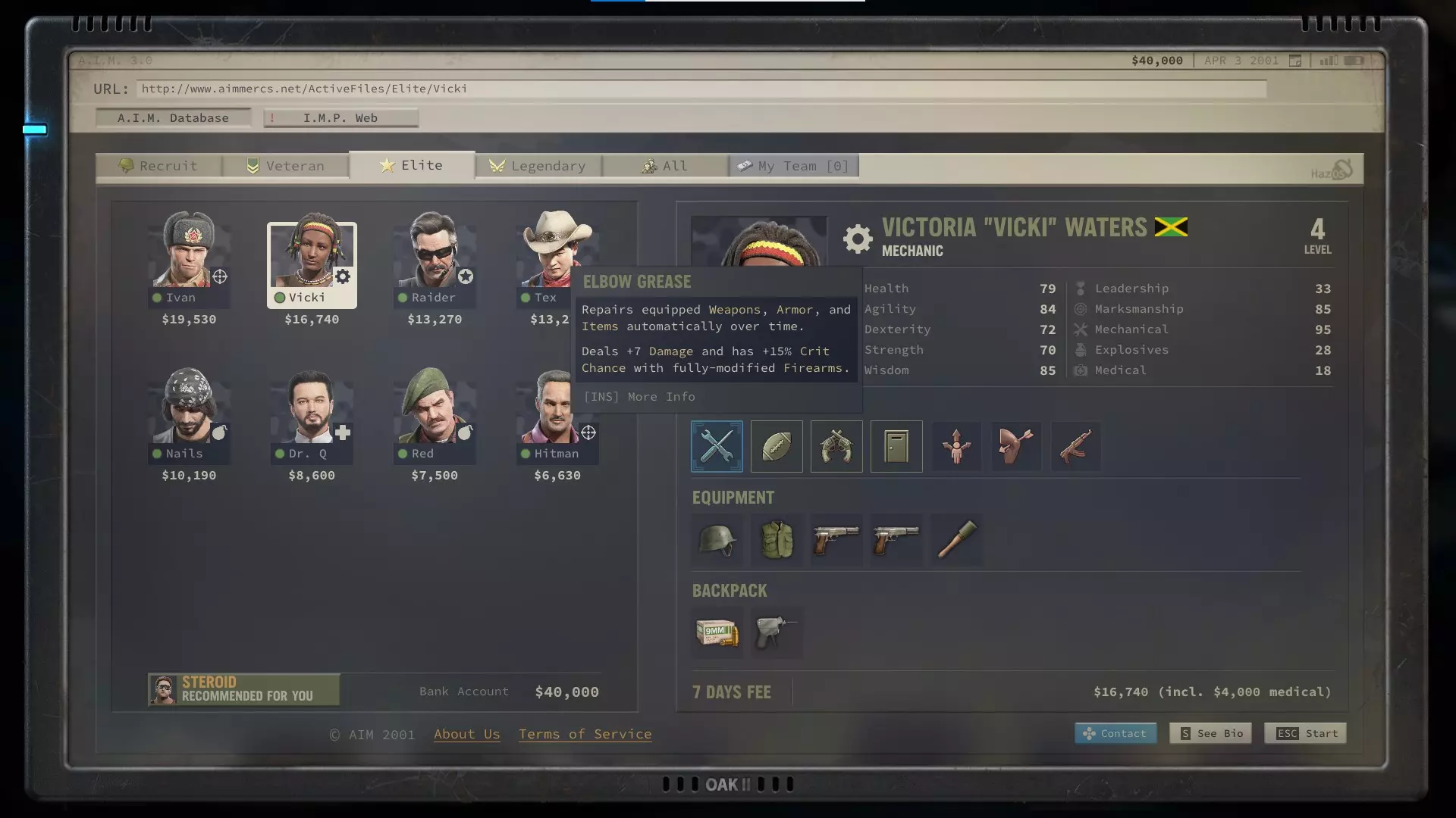 需要注意的是,维基的独特能力【强力 elbow grease】在最大化拆解获得的零件方面表现尤为出色。维基可以被动修复她已装备的物品,无需执行操作,也不需要零件。因此,你可以让维基将物品被动修复至50%,然后再进行拆解。