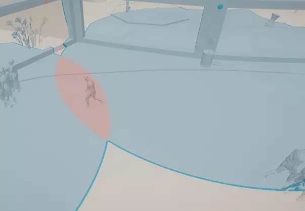 识别和找到逃生点的最佳方法是在围栏视图的热力图中显示可通行区域。在该视图中点击围栏内的动物,可通行区域会以蓝色标记。