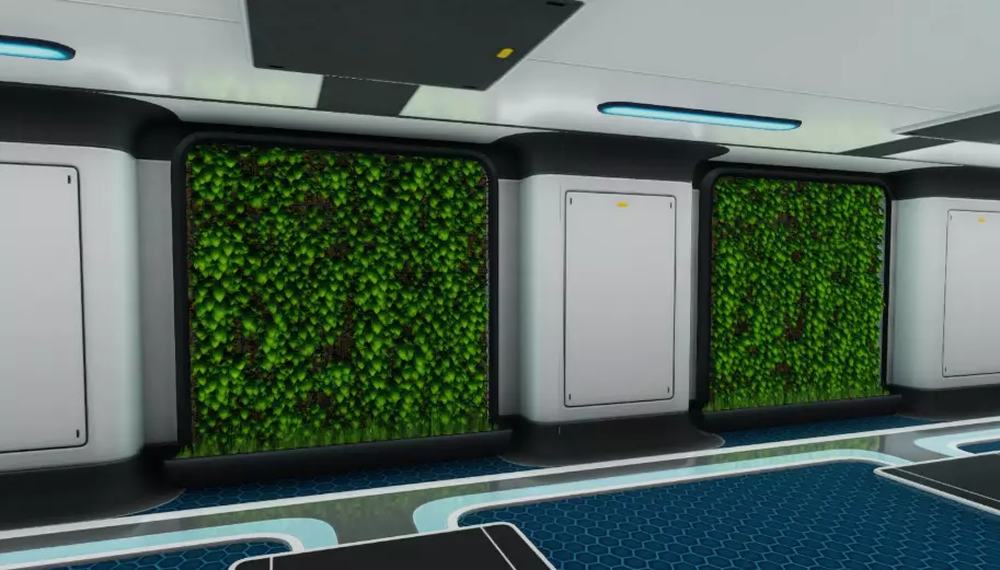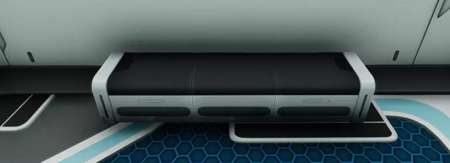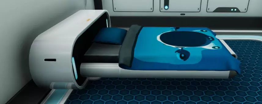 模块内有一张可用于睡觉的折叠床、一台点唱机和一个拍照框。由塑料锭、2个网状纤维和3个铅块制作而成。