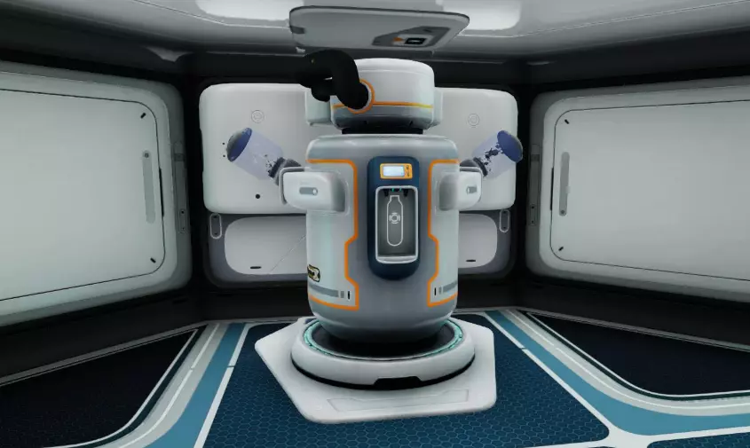 包含洗手池、马桶和浴缸。这些物品当然纯粹是装饰性的,没有实际用途,但可以与之互动。每个物品都由钛和管道构成。