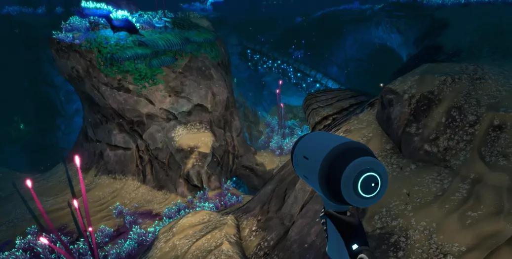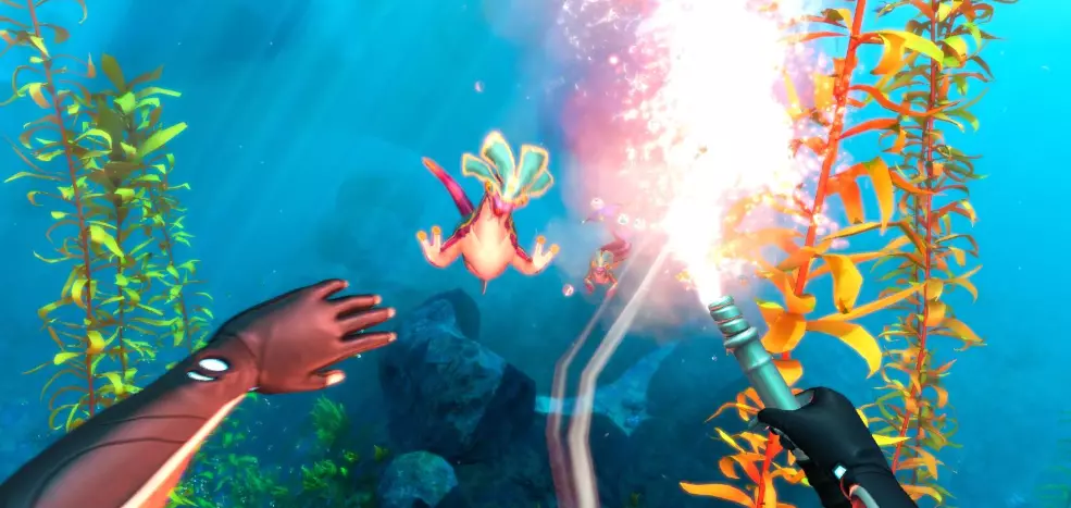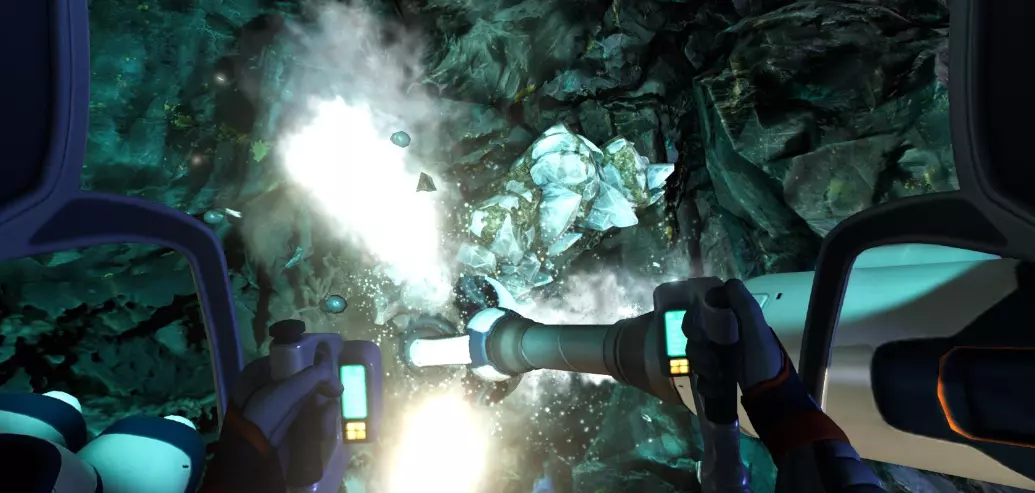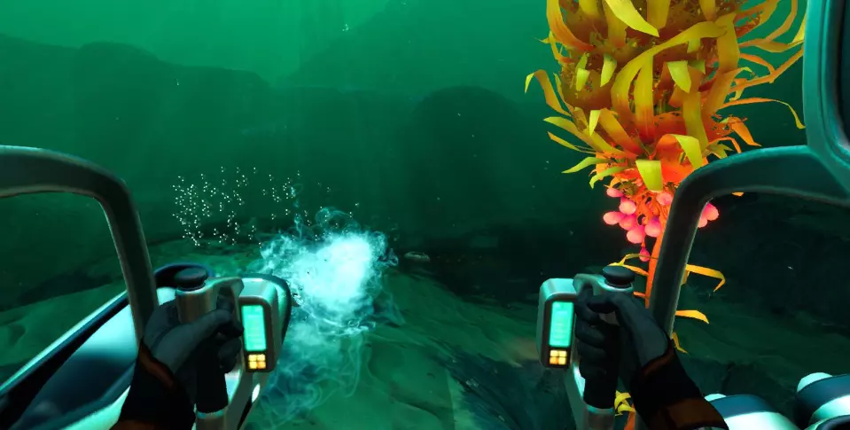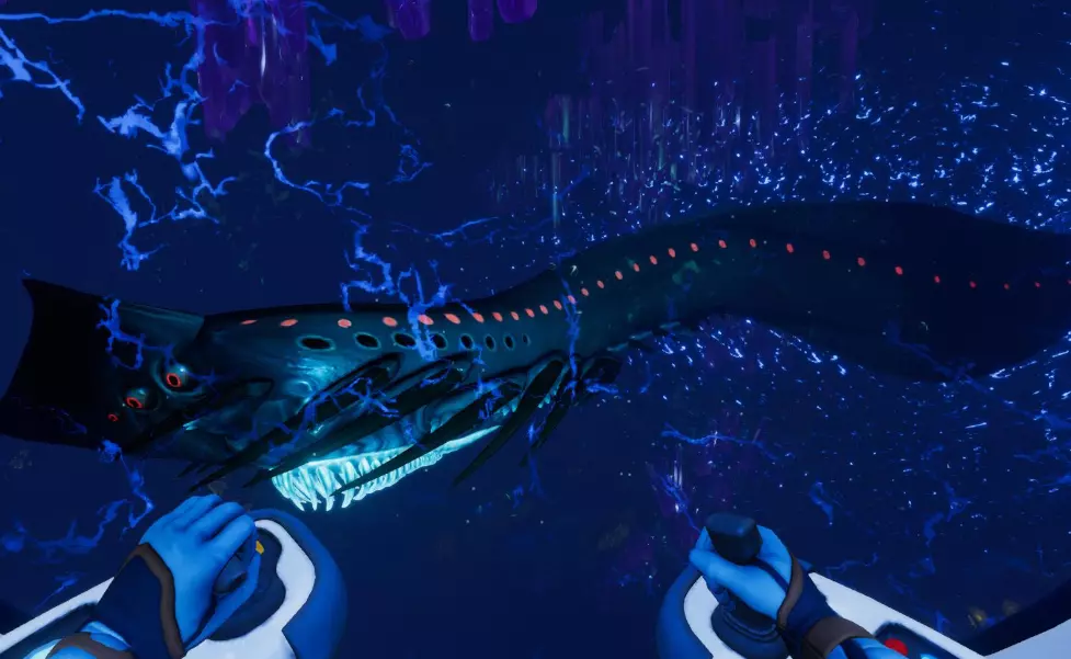 便携式载具建造器能够打造你的个人载具及其模块。游戏中的所有载具都相当于你的护甲,因为所有伤害都会转移到载具上。在载具内部,你可以无限补充氧气,深入探索而不必担心遭到捕食者的攻击。不过,大型捕食者仍然能够对载具造成损坏。 【注意躲避“利维坦”级别的捕食生物。】它们能够完全击沉你的载具!还有一些其他危险生物也能做到。 所有载具都可以通过在升级槽中安装特殊模块来进行强化。升级模块可在制造台和载具控制台制造台制作。 需要注意的是,载具需要维修和充电。维修需使用维修工具,并且所有载具都配备可更换的能量电池。如果你的载具电量耗尽,它就会熄火,你将无法在里面呼吸,因为氧气生成会停止。 遗憾的是,在我看来,这里的载具比第一代游戏中的表现要差。这并不意味着它不好或没用,只是我有点为“独眼巨人号”的缺席感到遗憾,不过在这款游戏的地图里,它确实会显得太挤了。由于地图深度也有所下降,所以交通工具的最大下潜深度现在为1000米,而非1700米,这也使得【КРАБа】的下潜稳定性从900米降至400米。 海行者(新增):水下列车