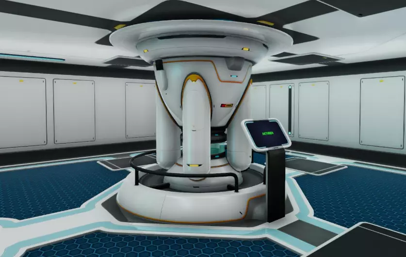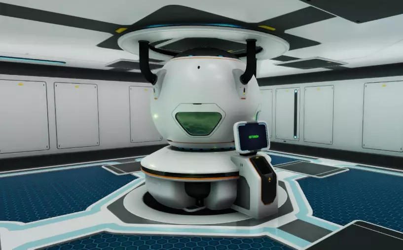 使用返回装置时,你将被传送到此模块。传送只会前往与座舱相连的最近模块。由塑料锭、扩展线束和2个气凝胶制成。