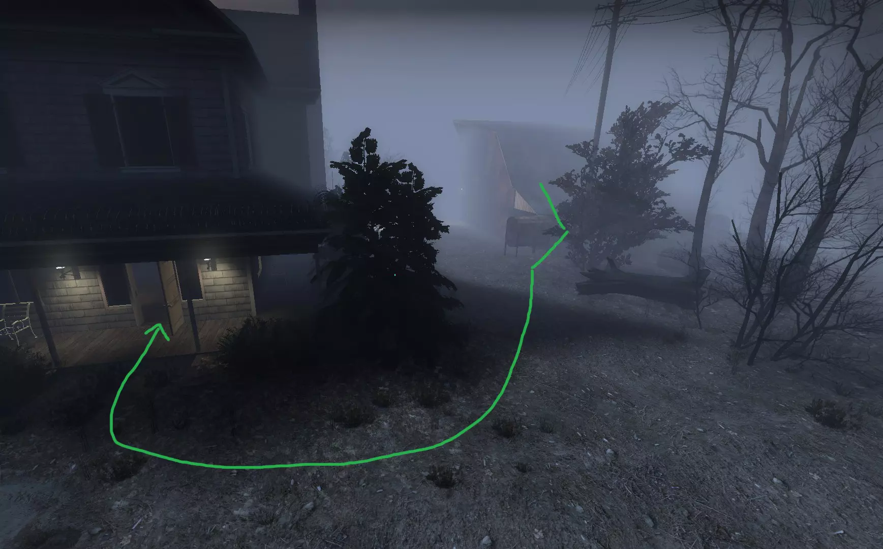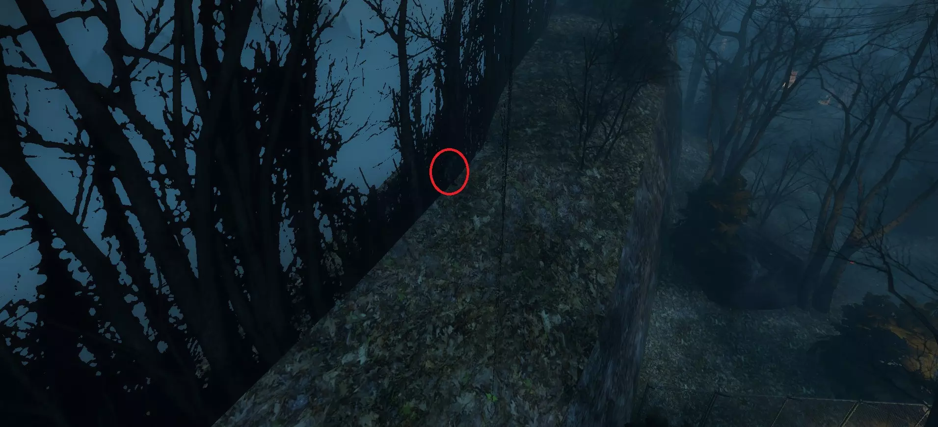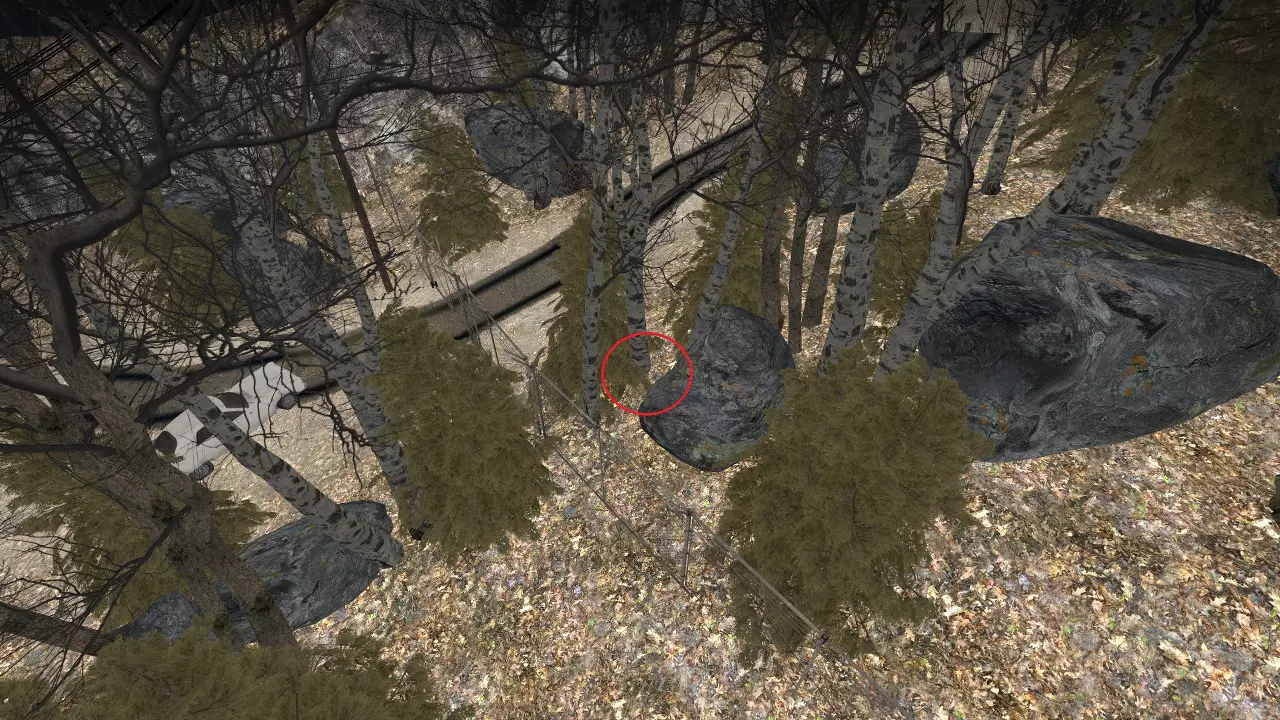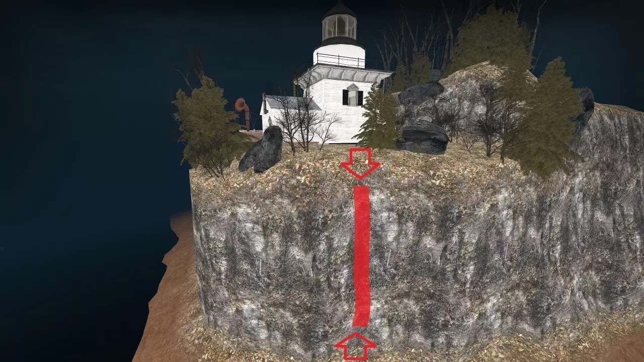 在战役中前往的房屋上方悬崖处,吸烟者可能会卡在树木或岩石上。【农舍】