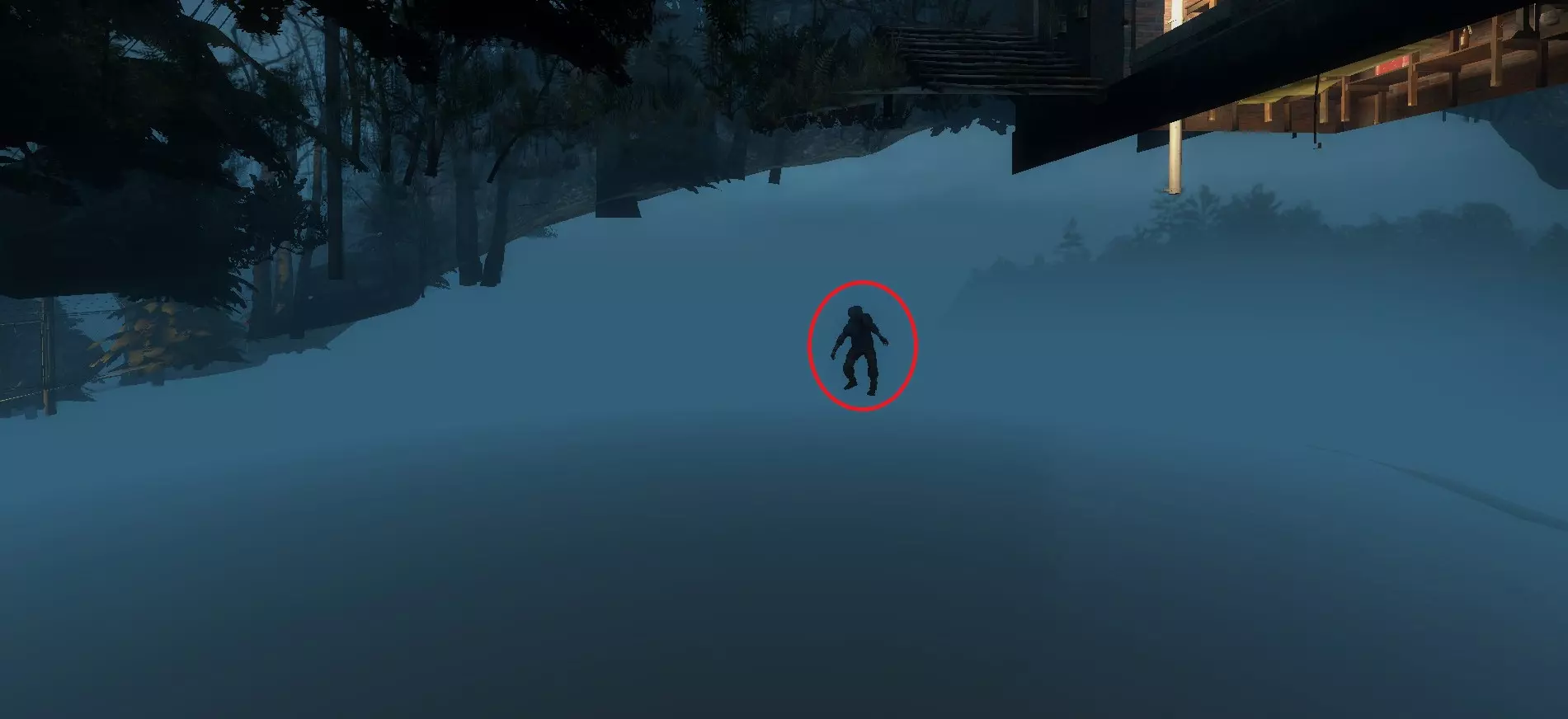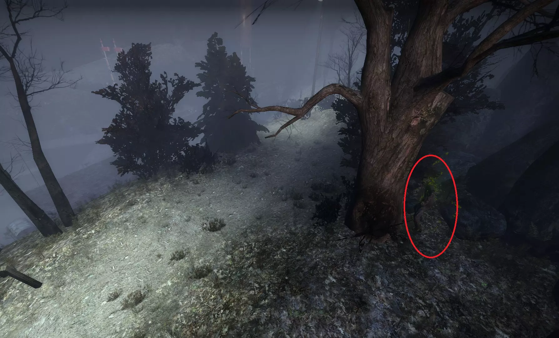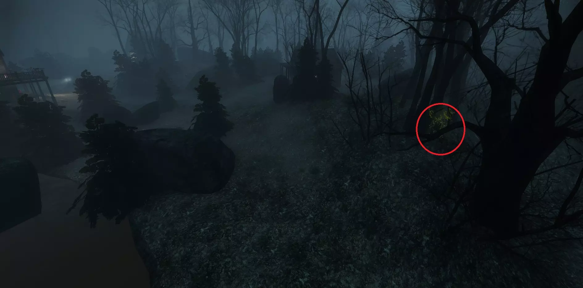 在战役中前往的房屋上方悬崖处,吸烟者可能会卡在树木或岩石上。【农舍】