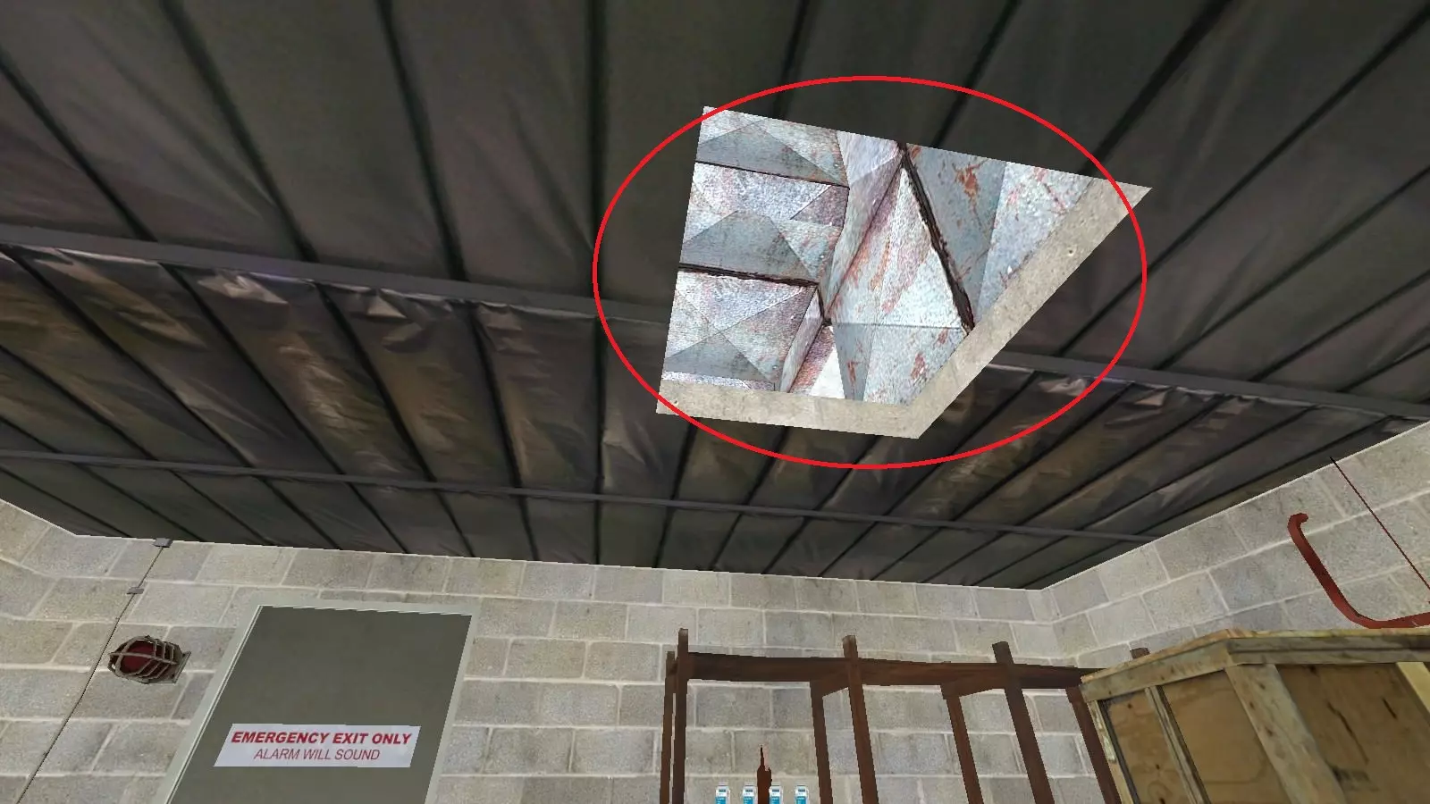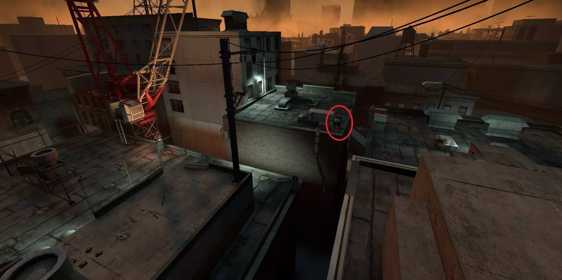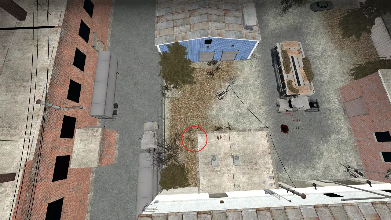 特感可能会卡在破损的天窗下方,就在墙的后面。它们通常会聚集在左侧,用猎枪或燃烧瓶可以打到那里。