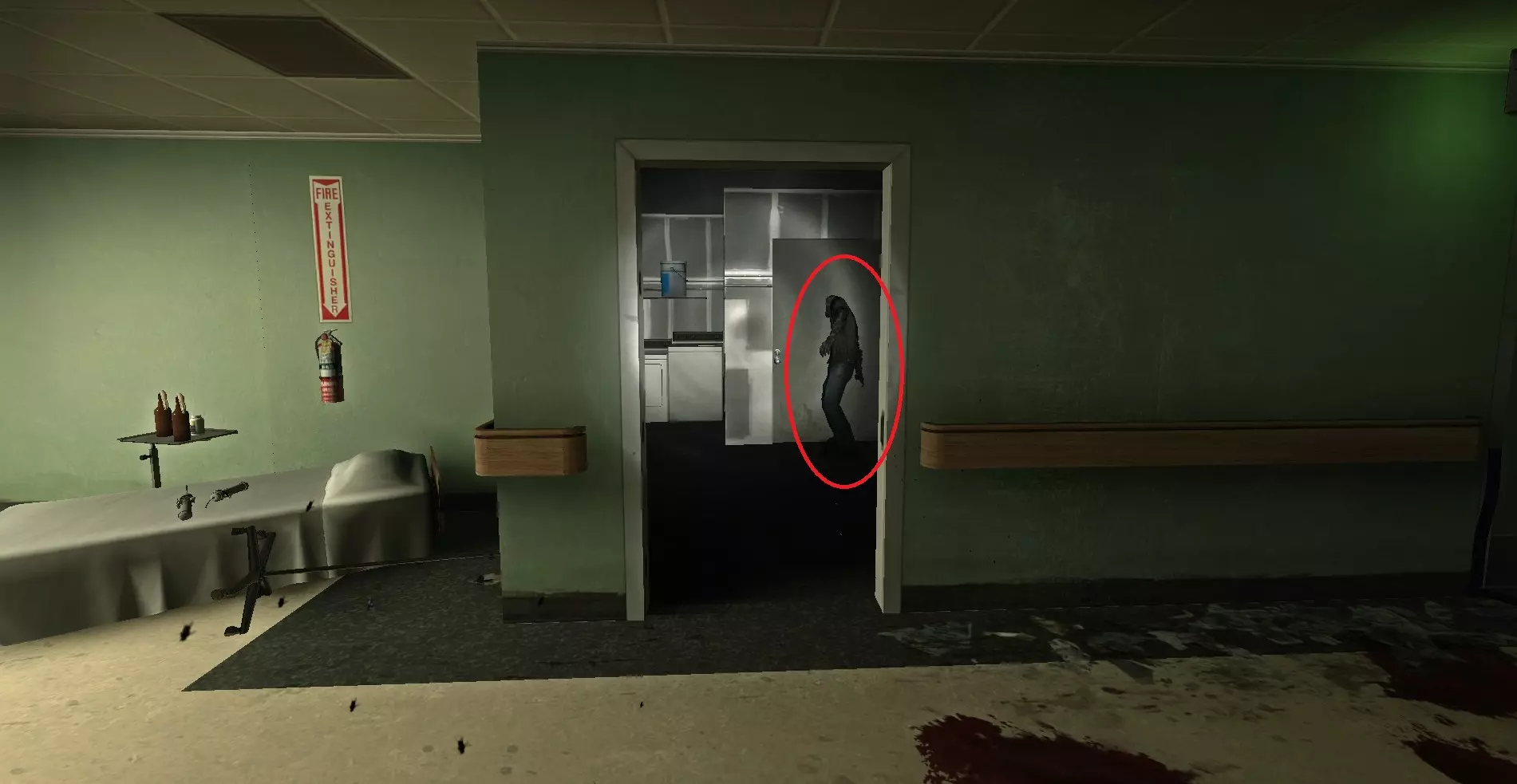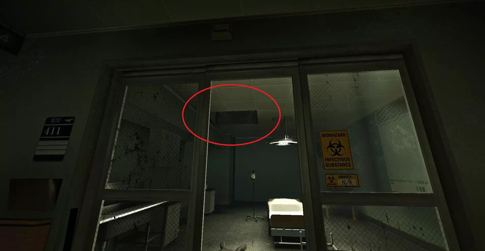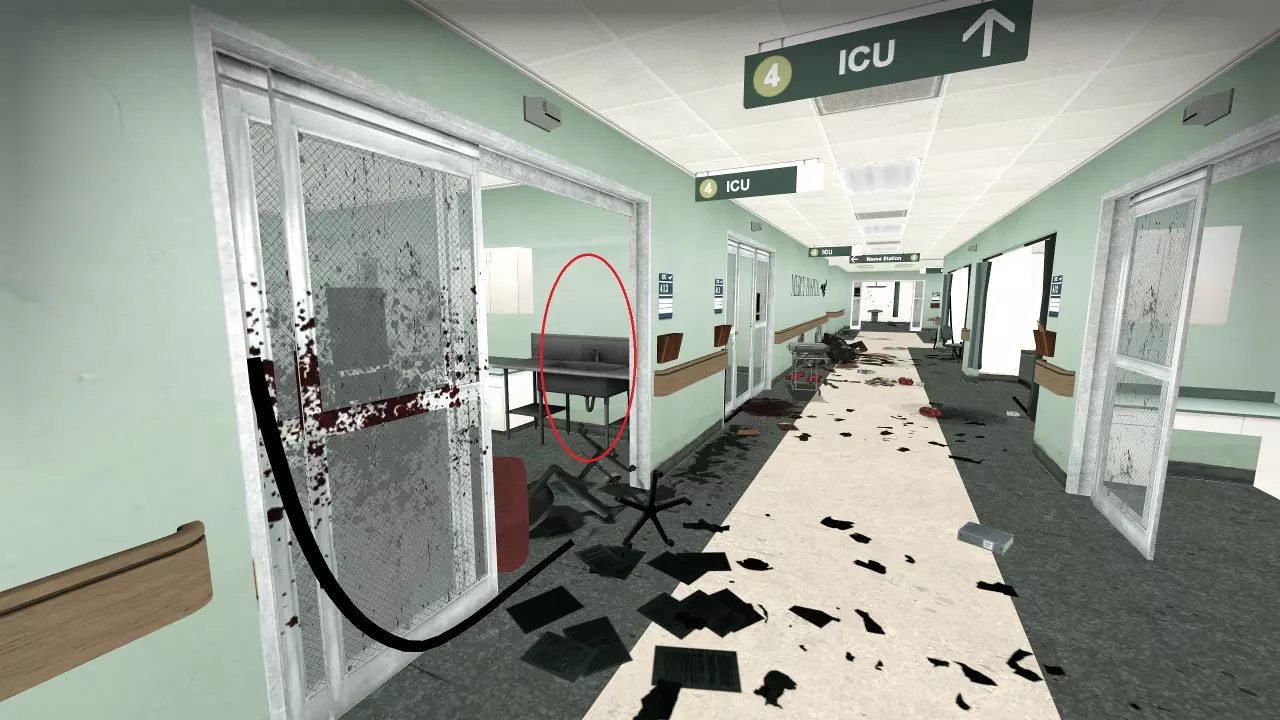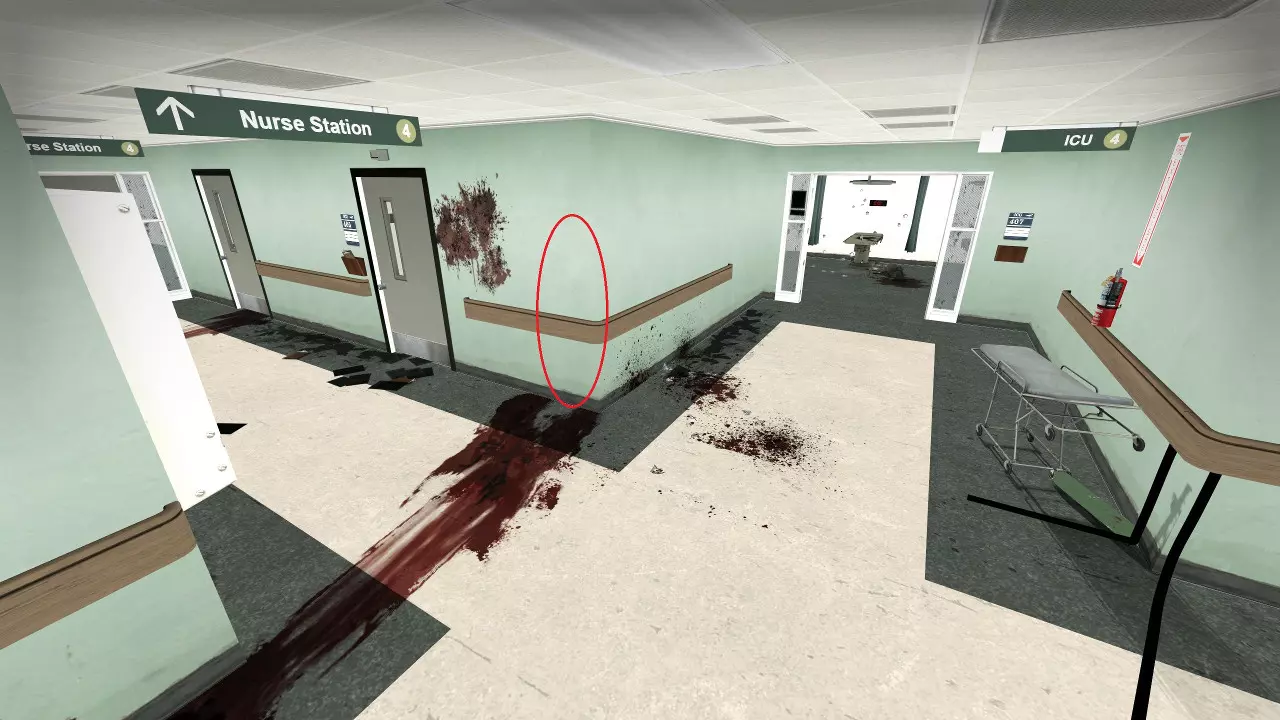 感染者可能会卡在战役中阻止玩家前进的路障处。玩家可以从上方房间向其射击。 医院