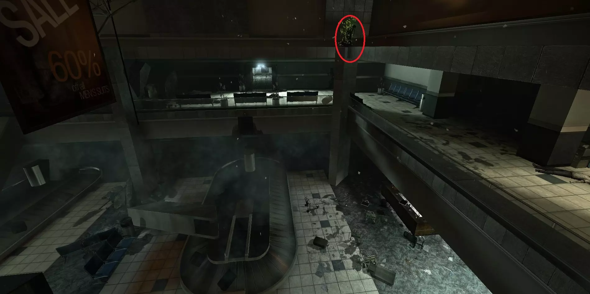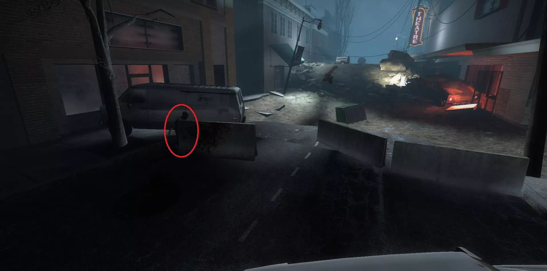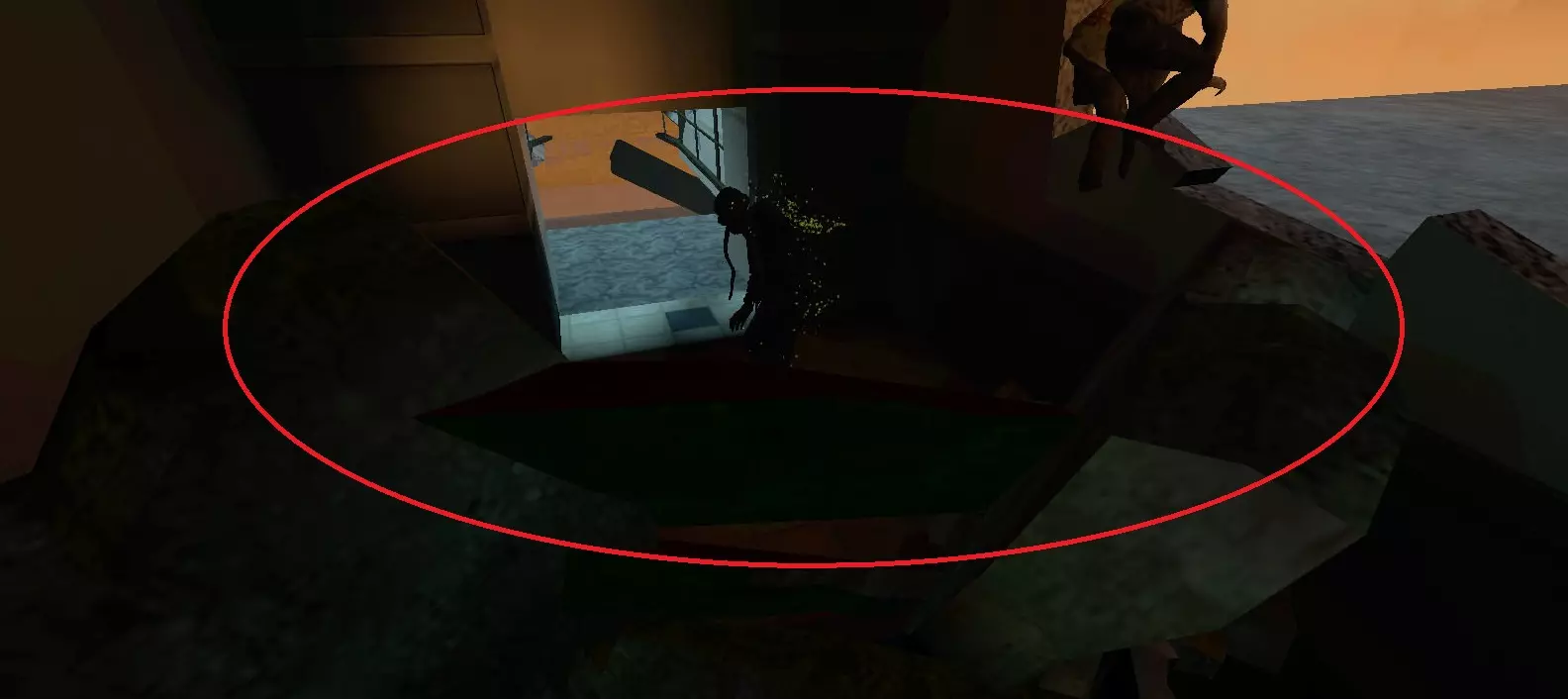 感染者可能会卡在战役中阻止玩家前进的路障处。玩家可以从上方房间向其射击。 医院