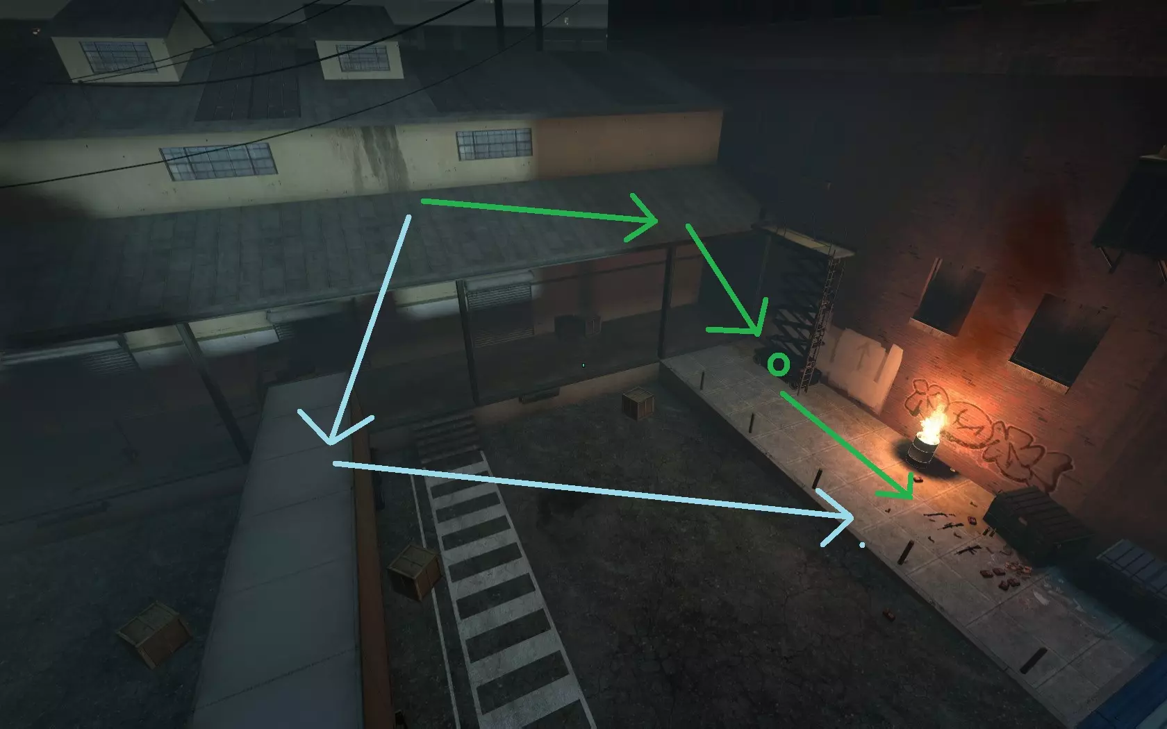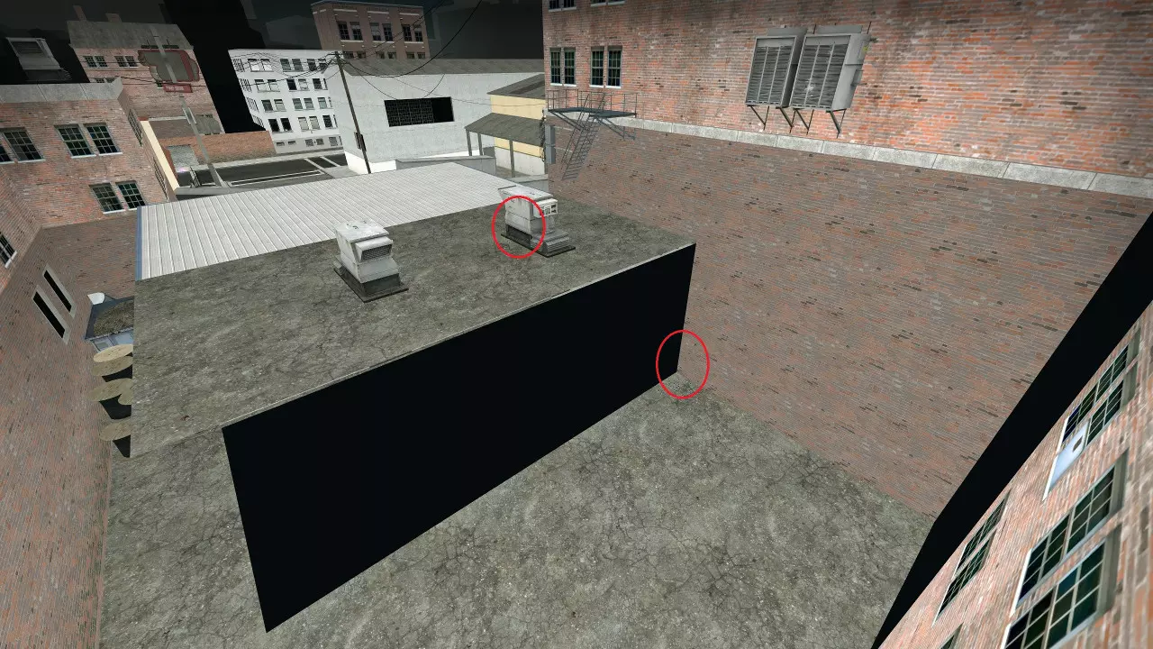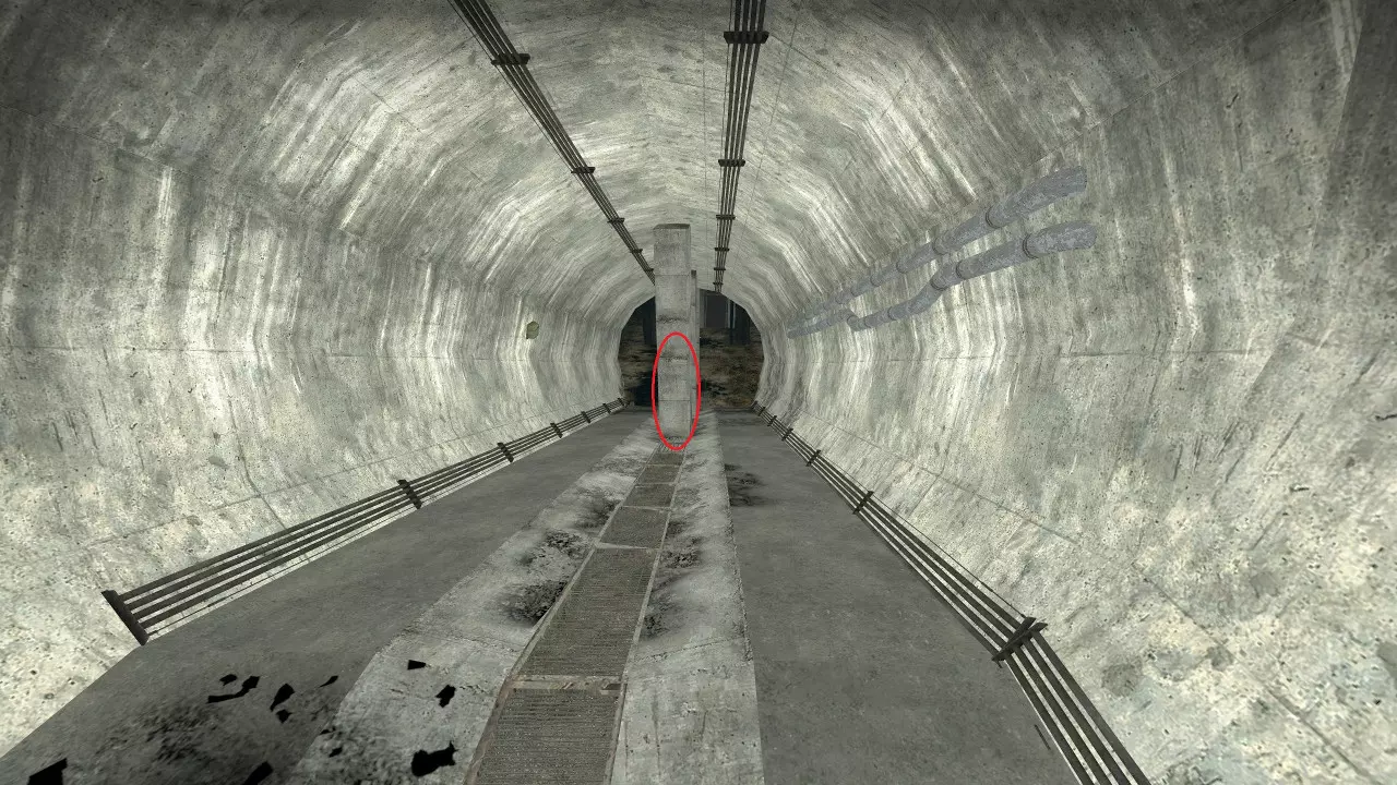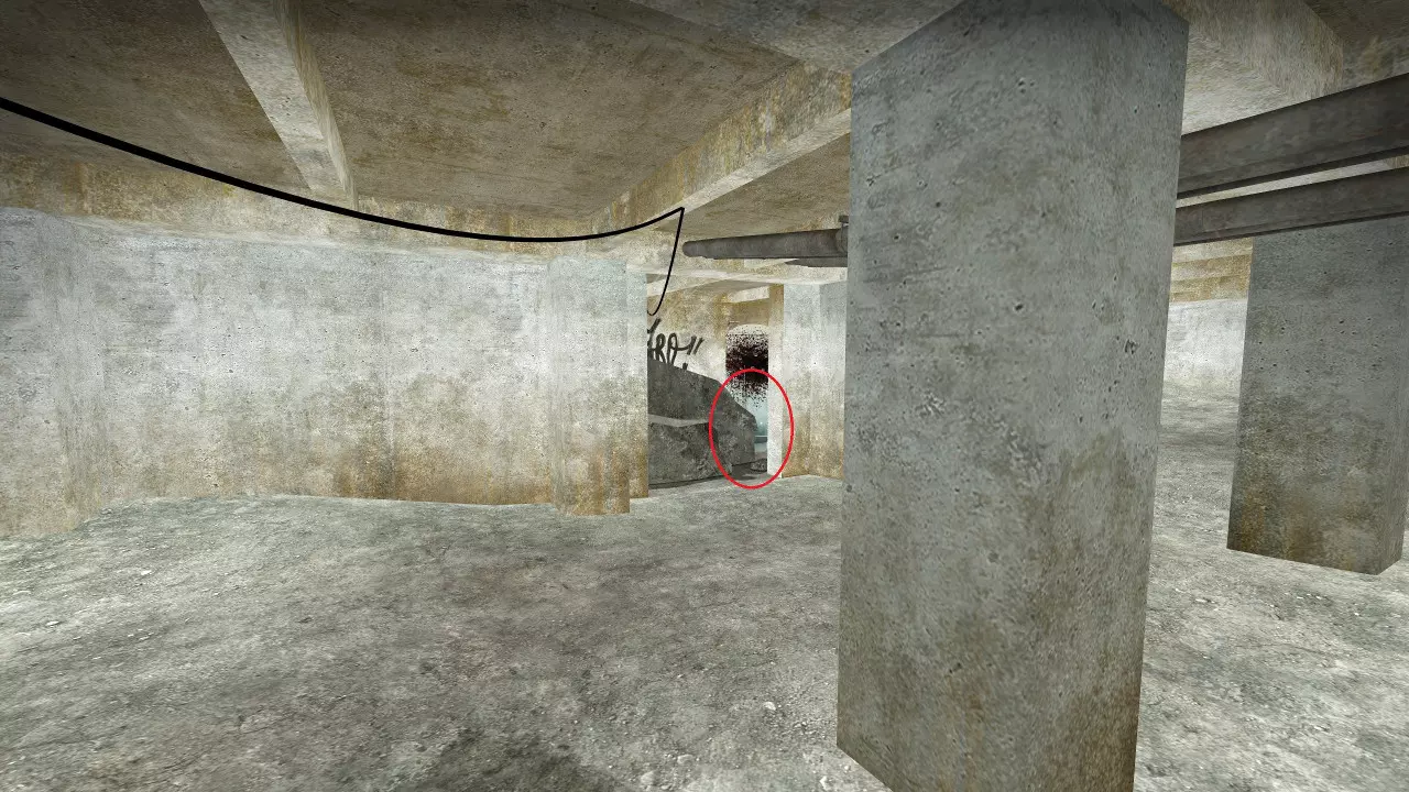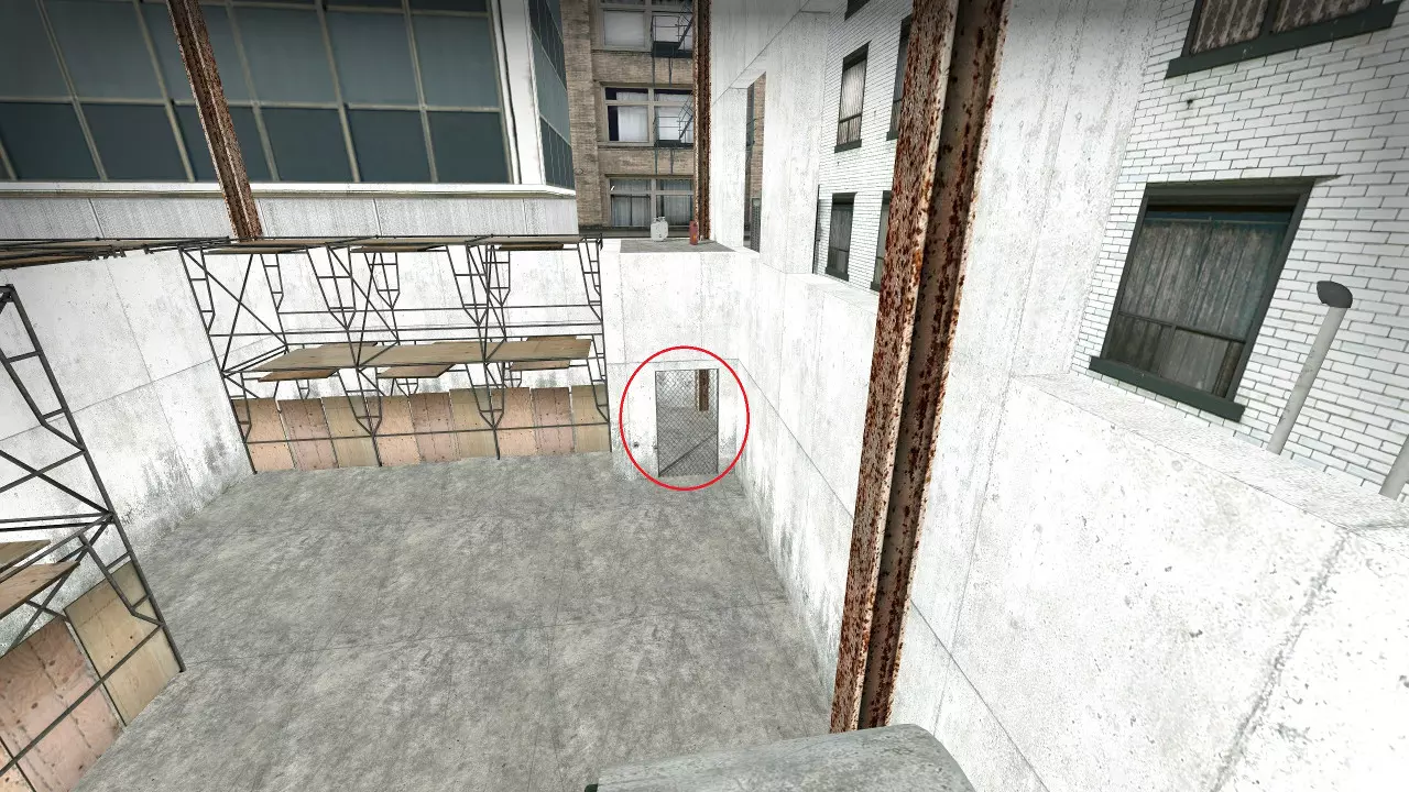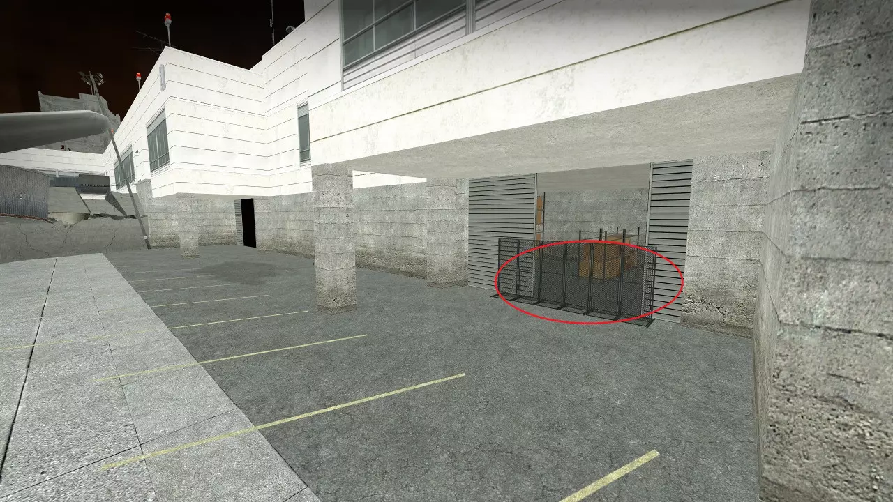 极少数情况下,烟雾弹会卡在团队通常防守位置上方及后方的这个平台上。 跑道