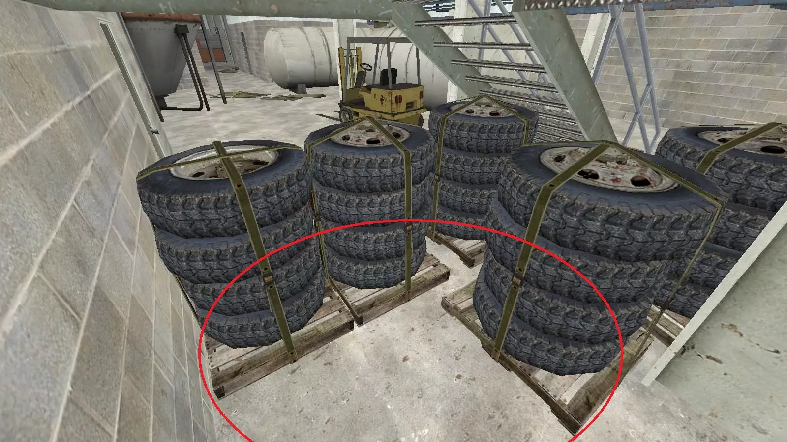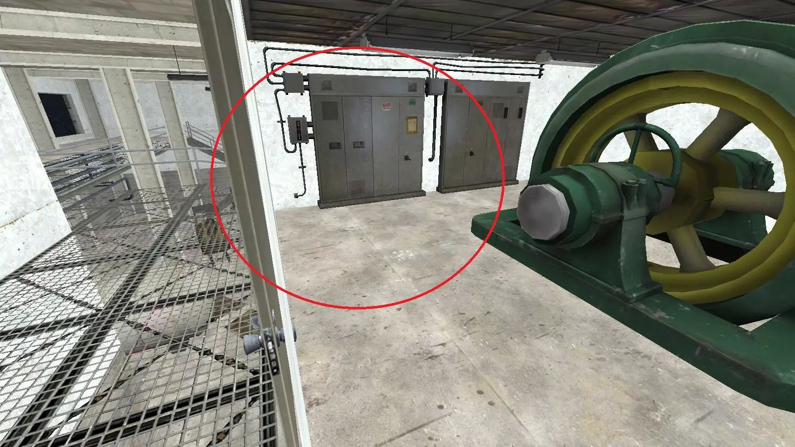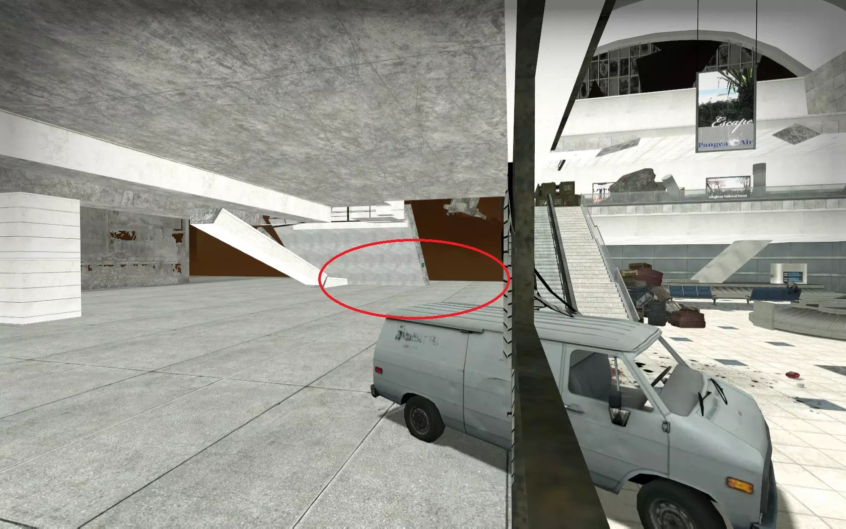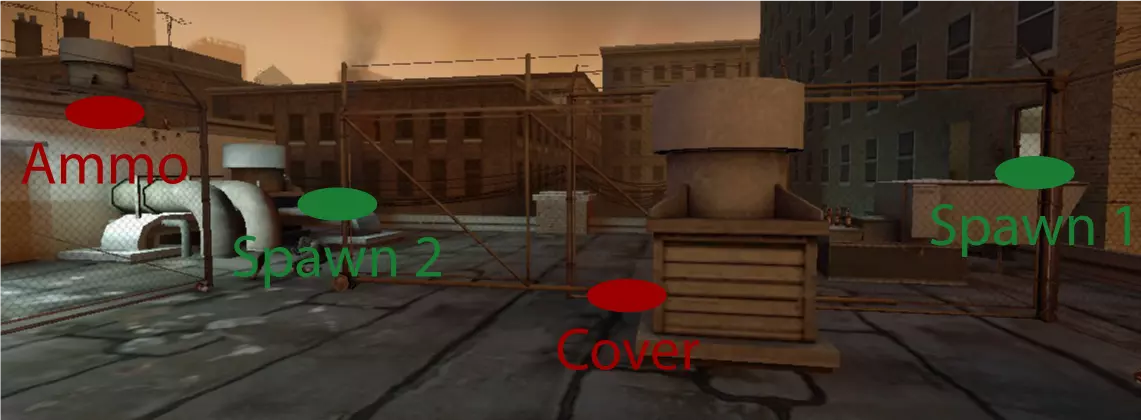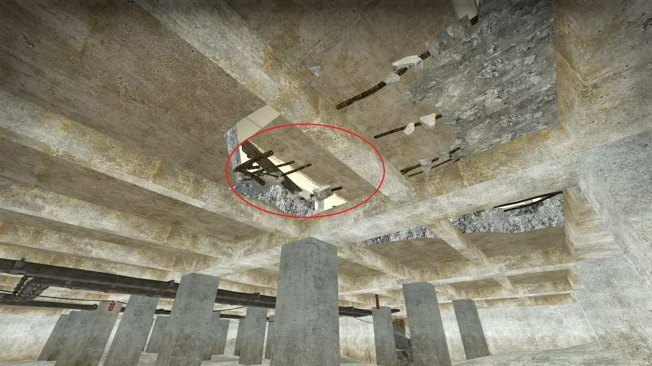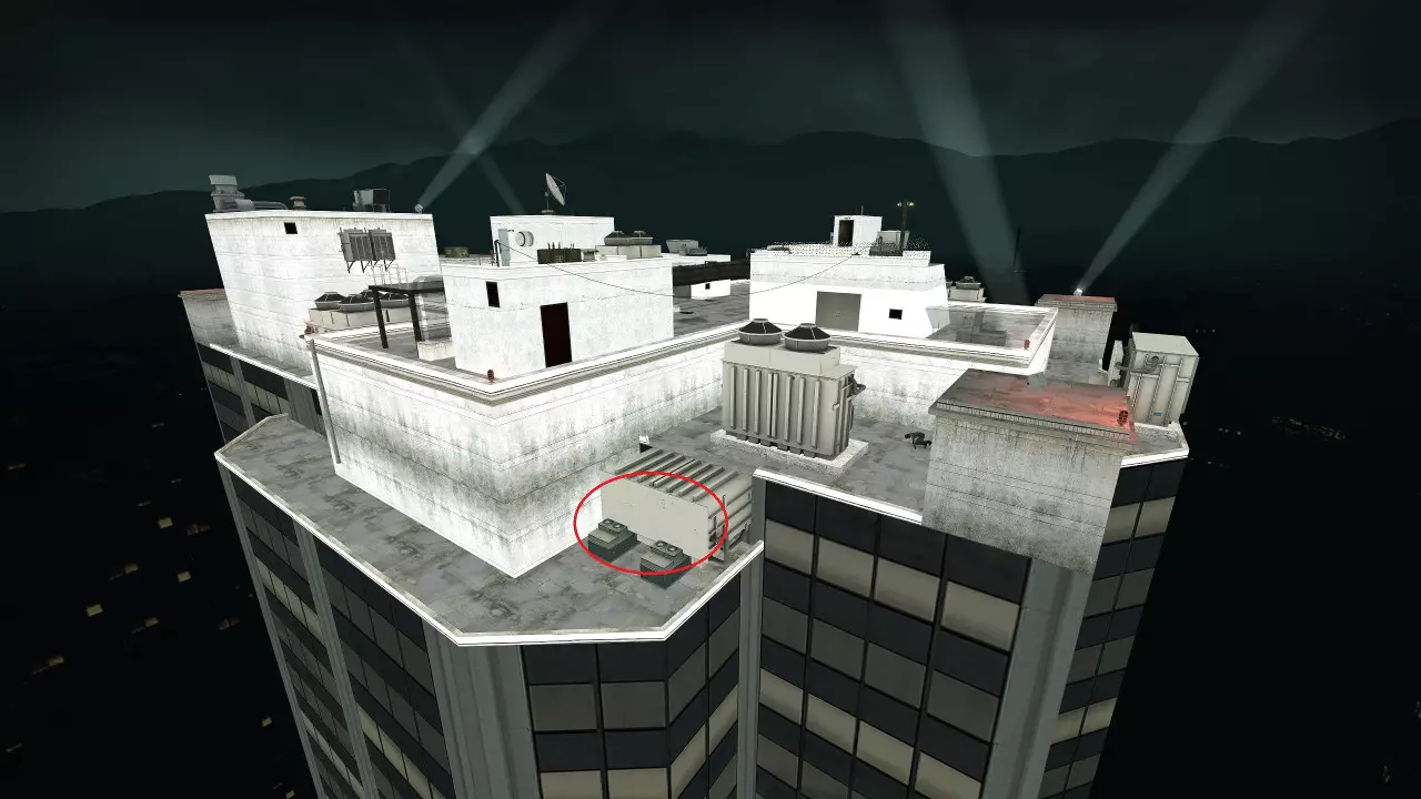 极少数情况下,烟雾弹会卡在团队通常防守位置上方及后方的这个平台上。 跑道