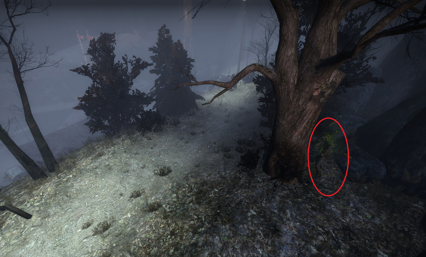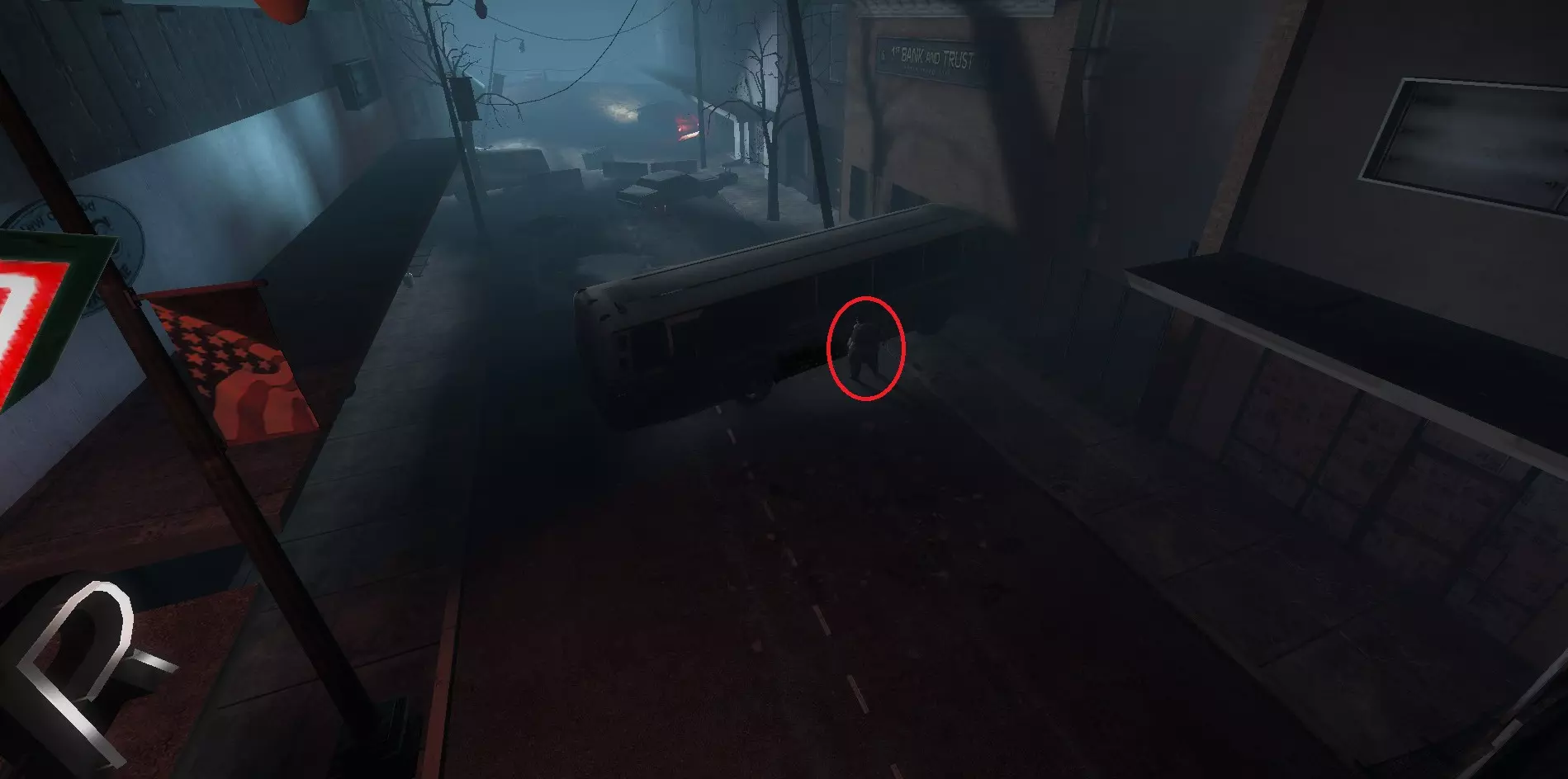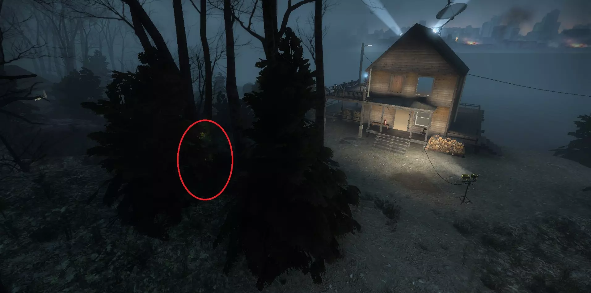 吸烟者可能会卡在地图边缘远处围栏附近的树木里。可以使用燃烧瓶杀死他们。
