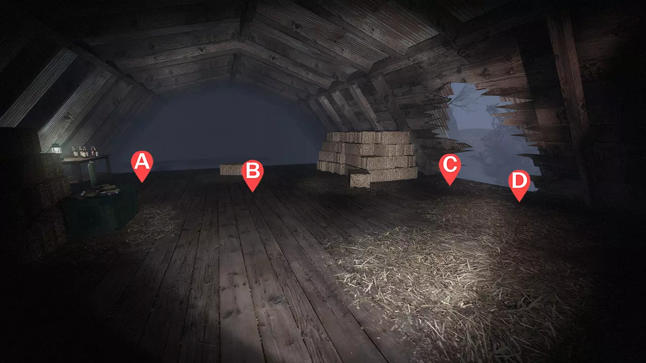 额外的药片生成位置是随机的。这里列出的4个只是幸存者初始拥有的(即最低数量)。药片可能会生成在谷仓、棚屋或农舍内。位置