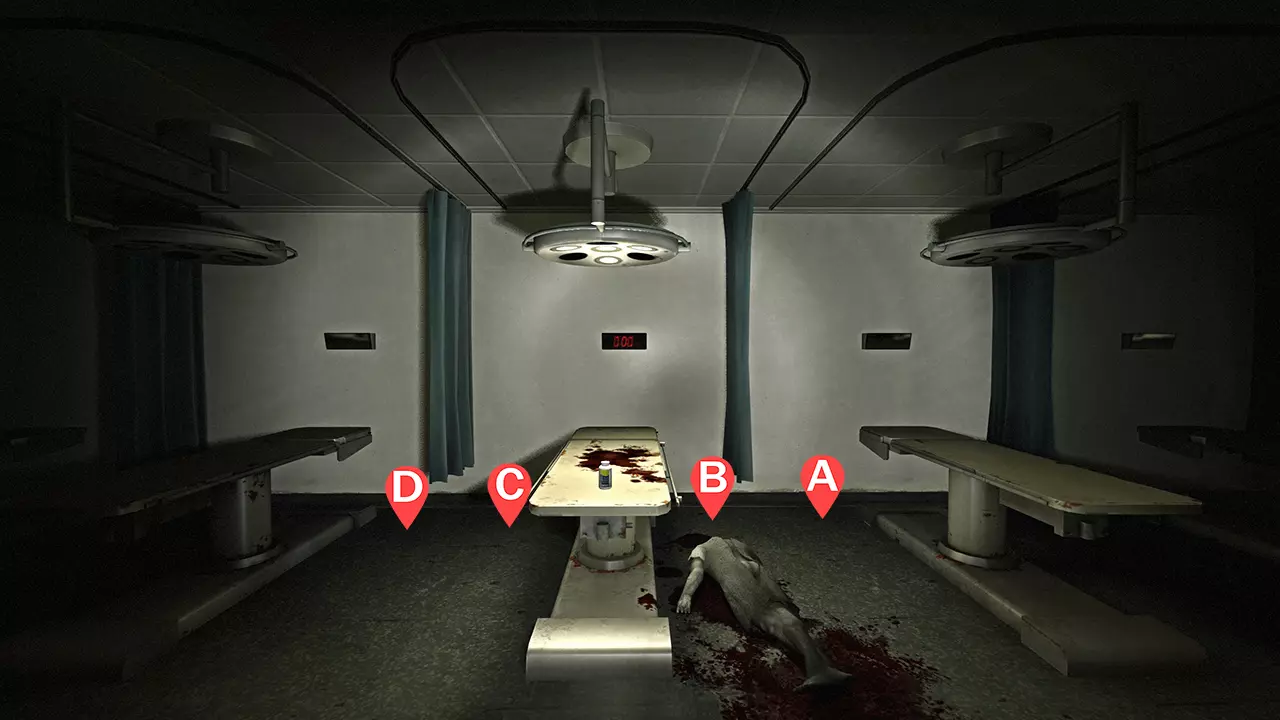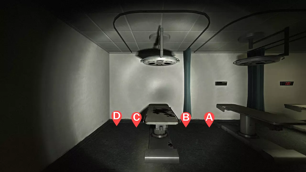 左侧病床有2名幸存者(A和B) 右侧病床有2名幸存者(C和D) 注意:幸存者将留在407房间,并蹲伏在房间右侧的病床旁。蹲伏可以延迟猎人的突袭,并且如果吸烟者抓住幸存者,他们会被病床卡住,而不是被拖到走廊里。 霰弹枪弹药应仅留作对抗坦克使用,或在有幸存者失去行动能力时使用。当幸存者的屏幕开始抖动时,立即拿出霰弹枪。如果有人在看到坦克后才拿出霰弹枪(拿枪过晚),就会有人被击中。 卡住点