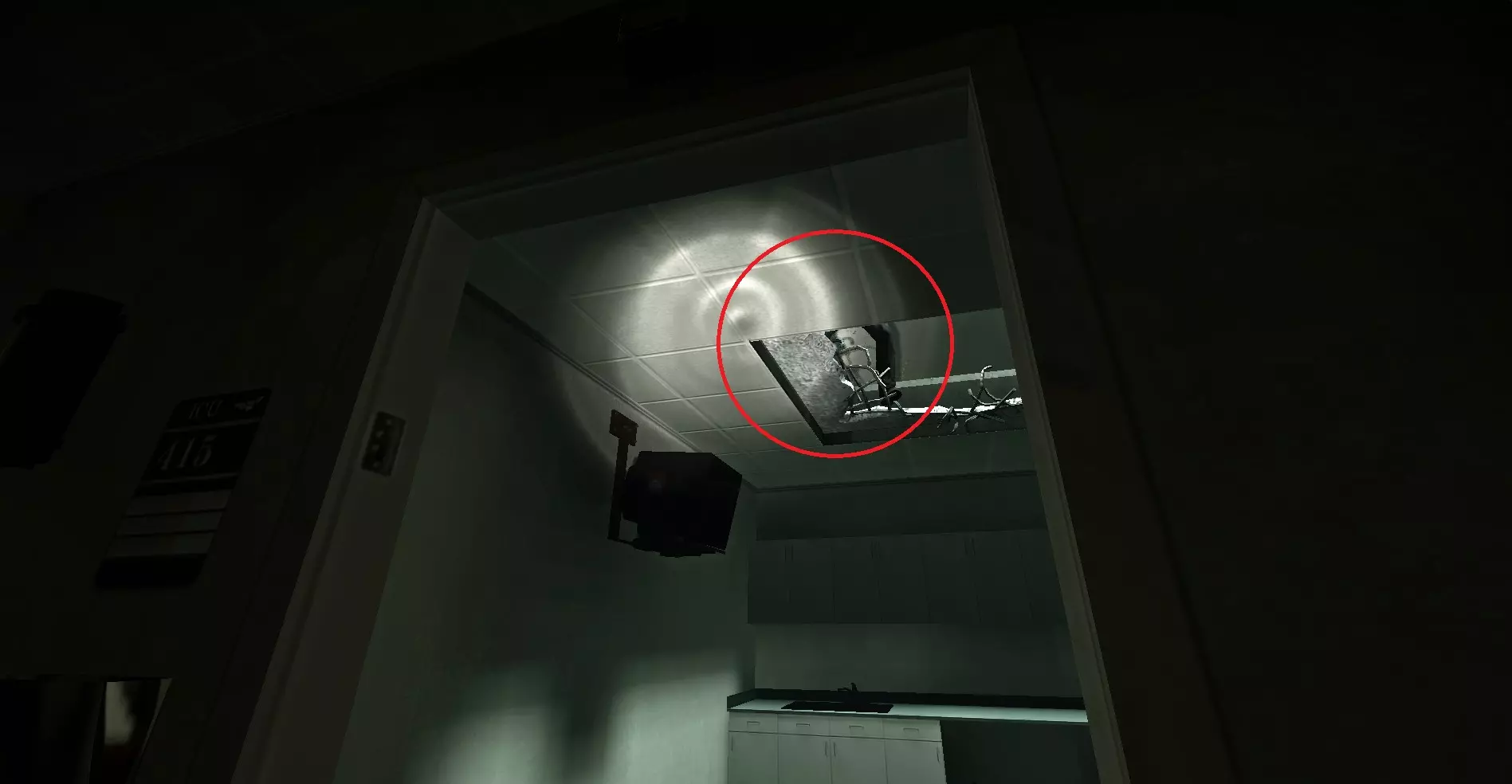 感染者可能会卡在415房间屋顶的洞里。