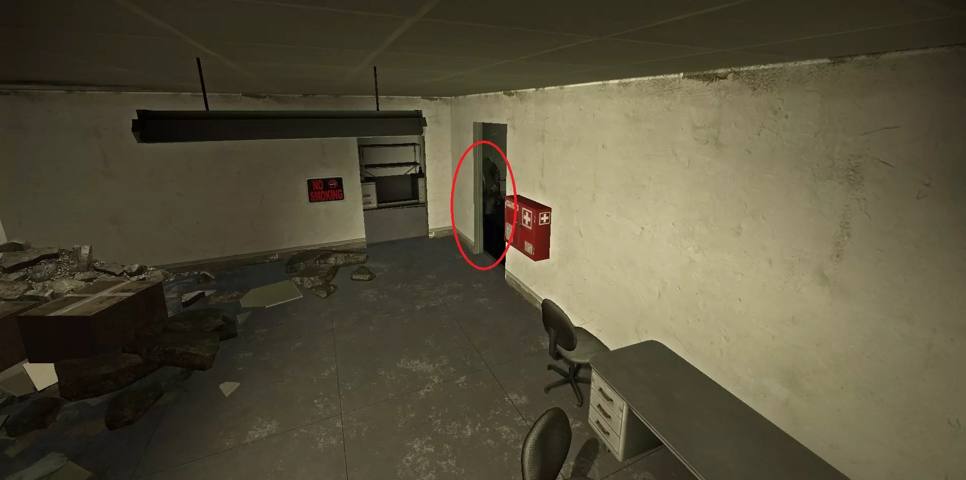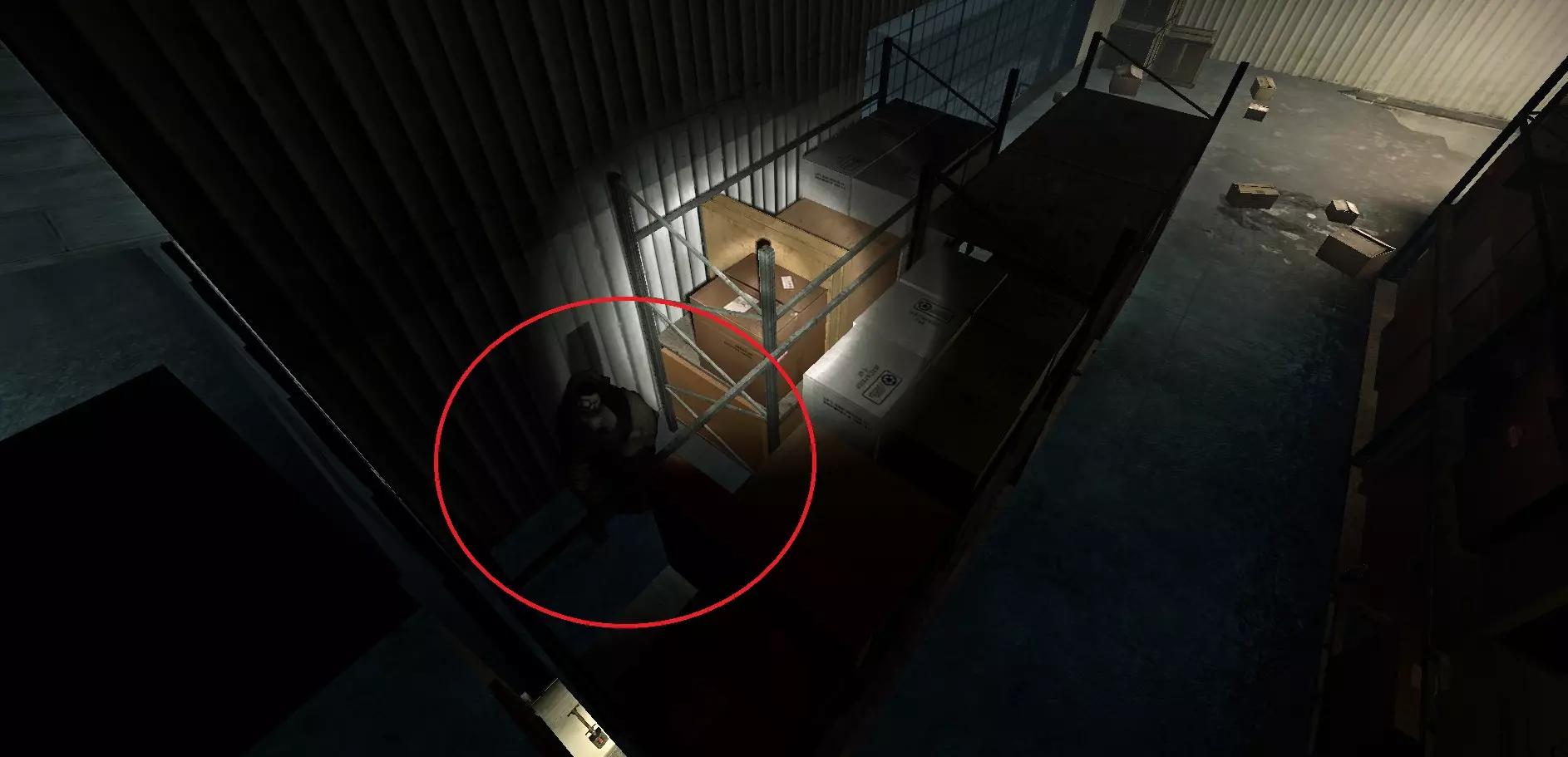 感染者可能会被困在主仓库建筑内的货架或箱子后面。