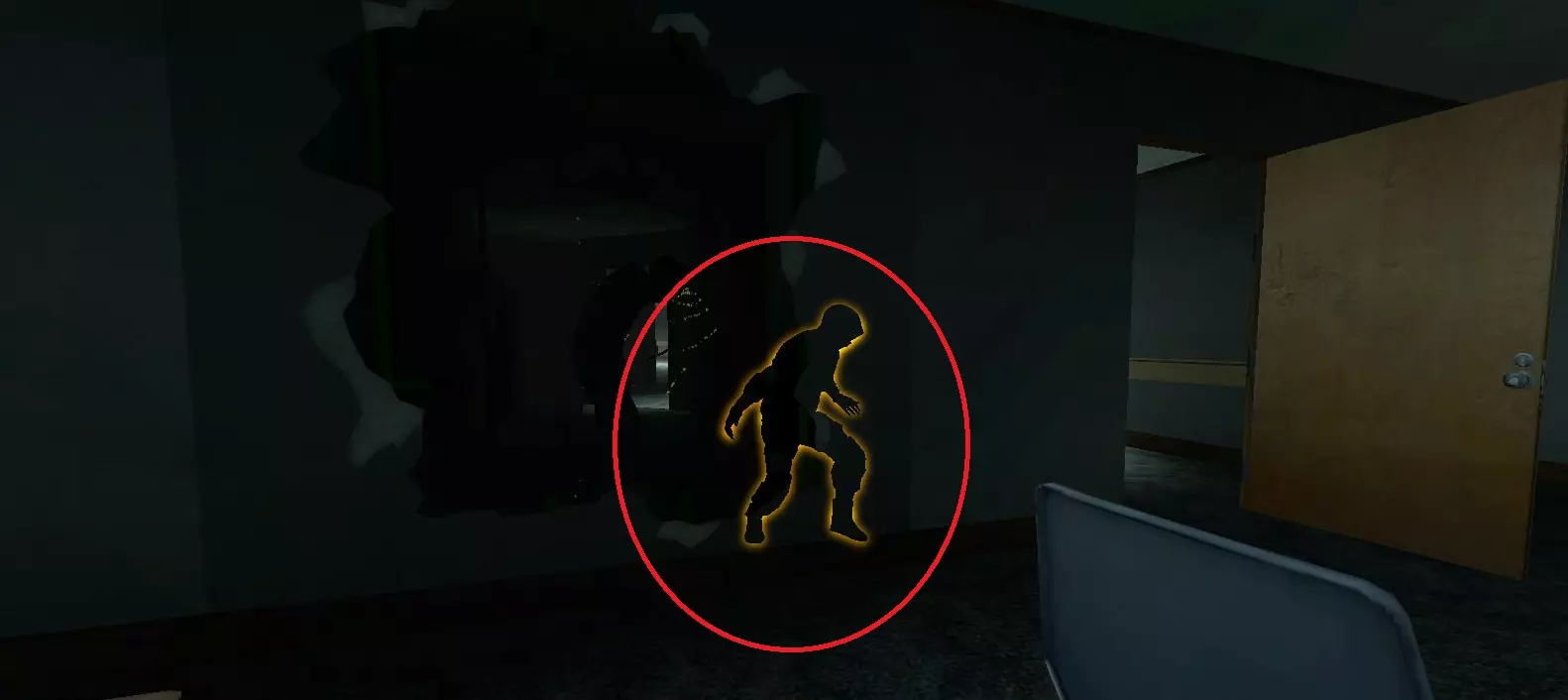 使用手枪战术时,某些敌人有时会站在门口的拐角处。