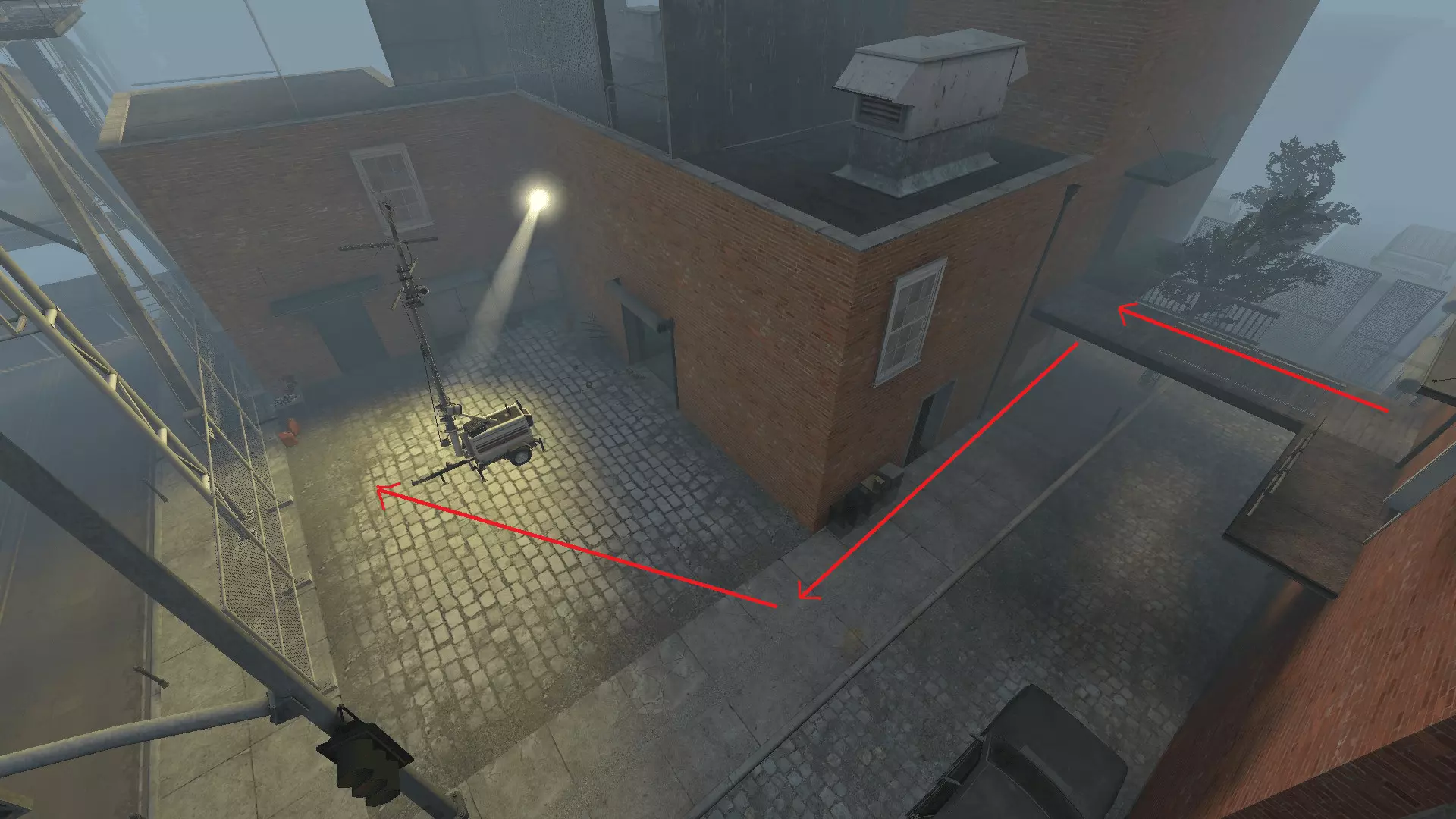特感可能会卡在通往初始安全屋的小巷里的消防逃生梯上。