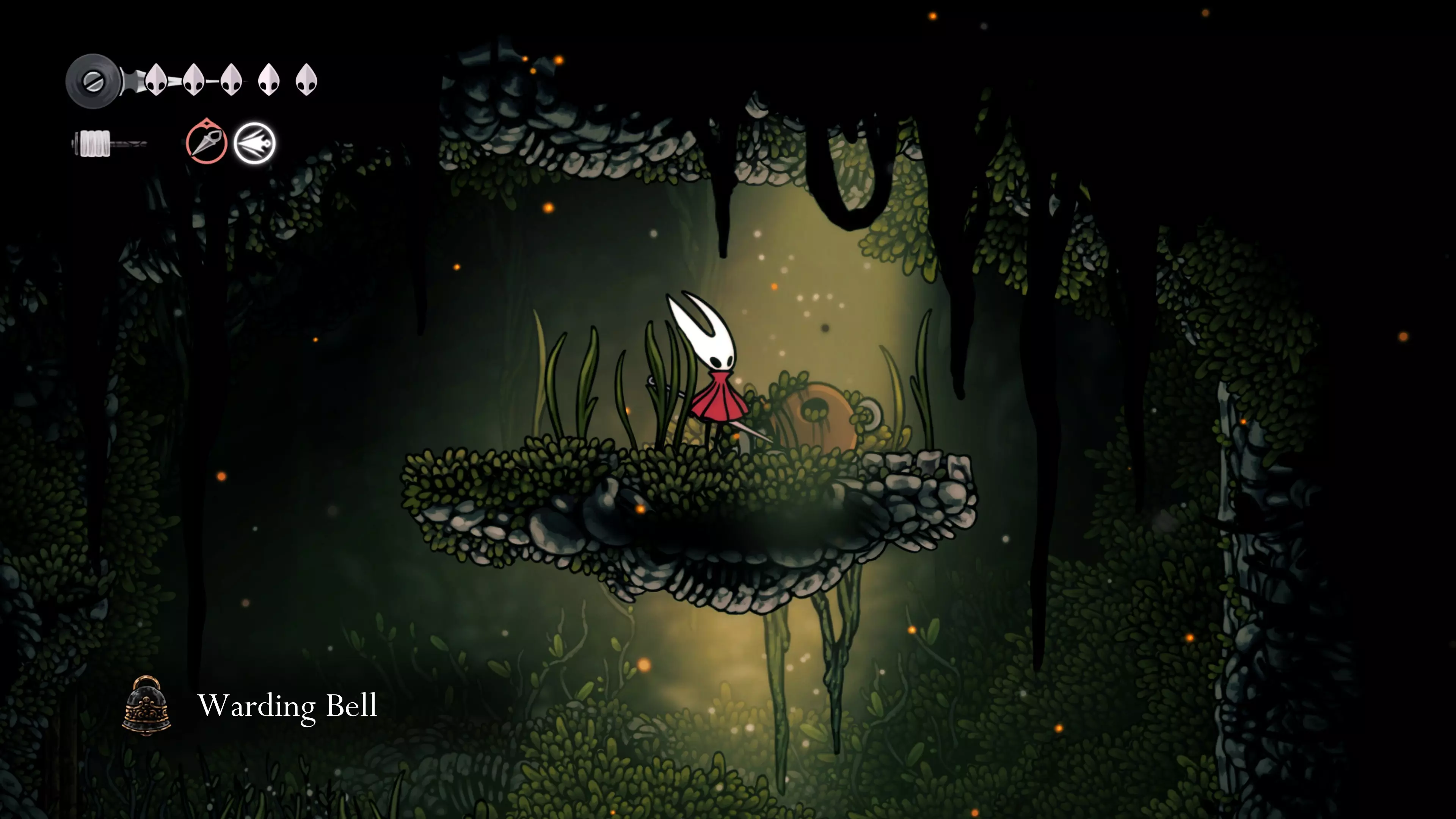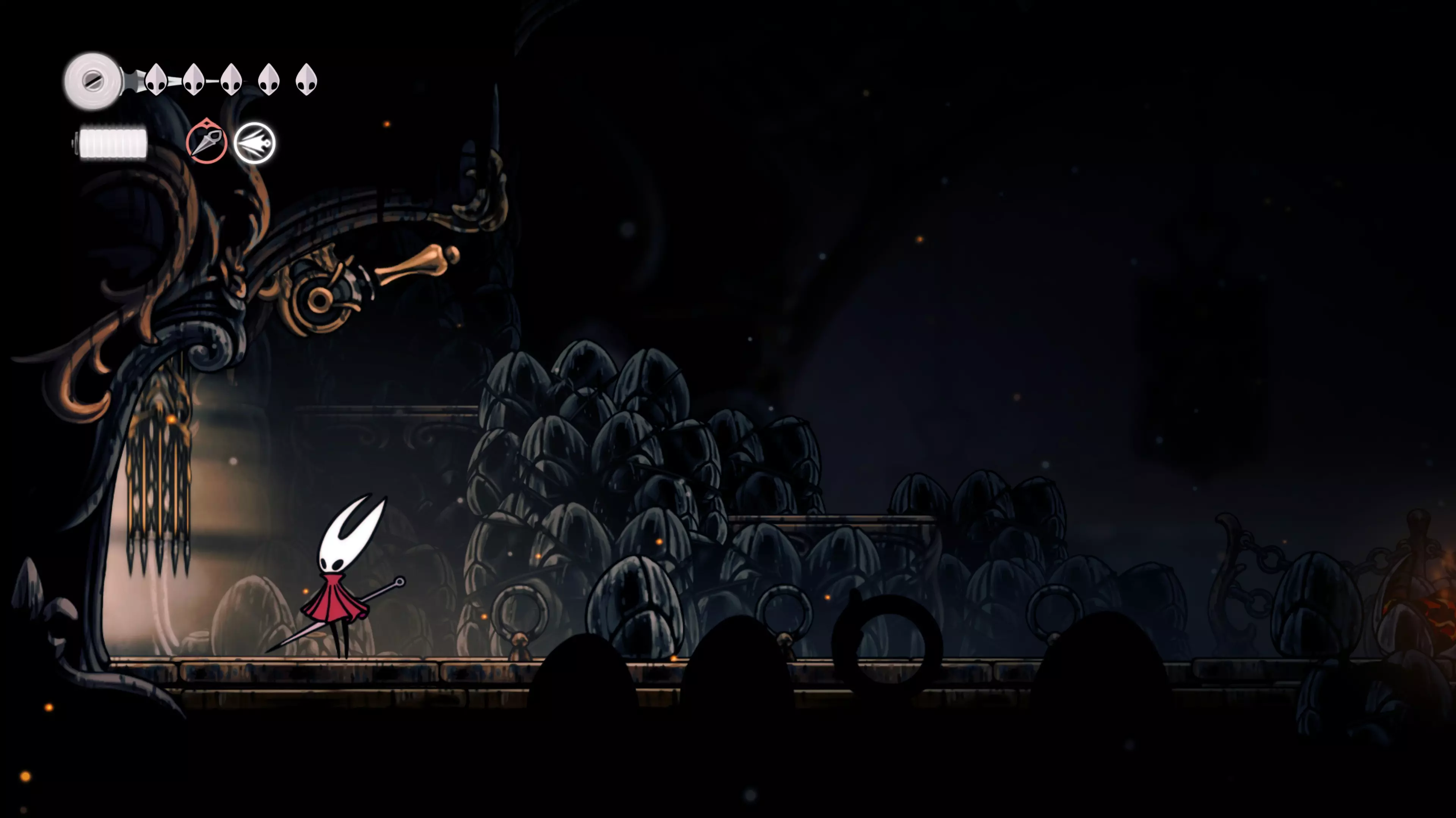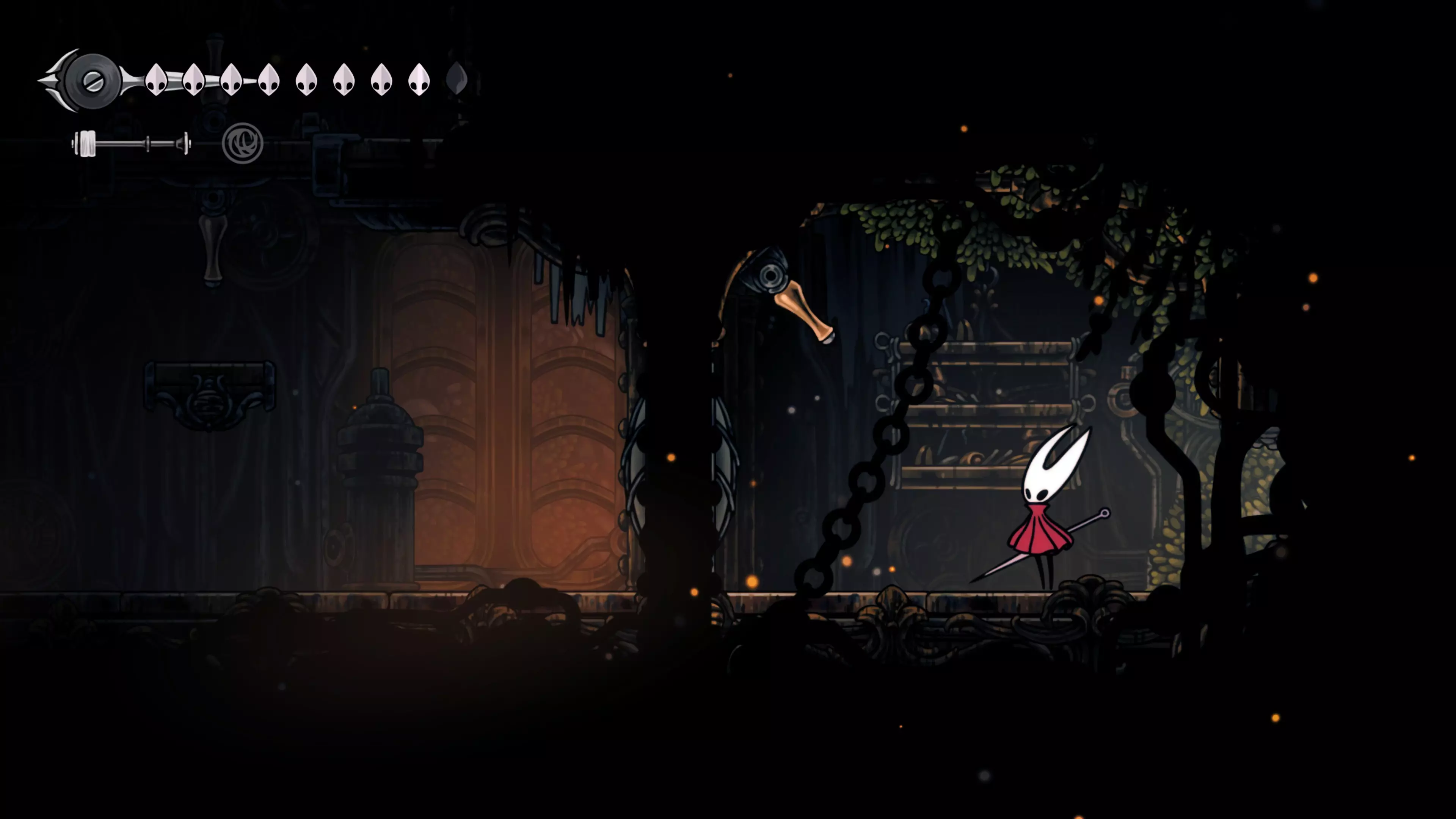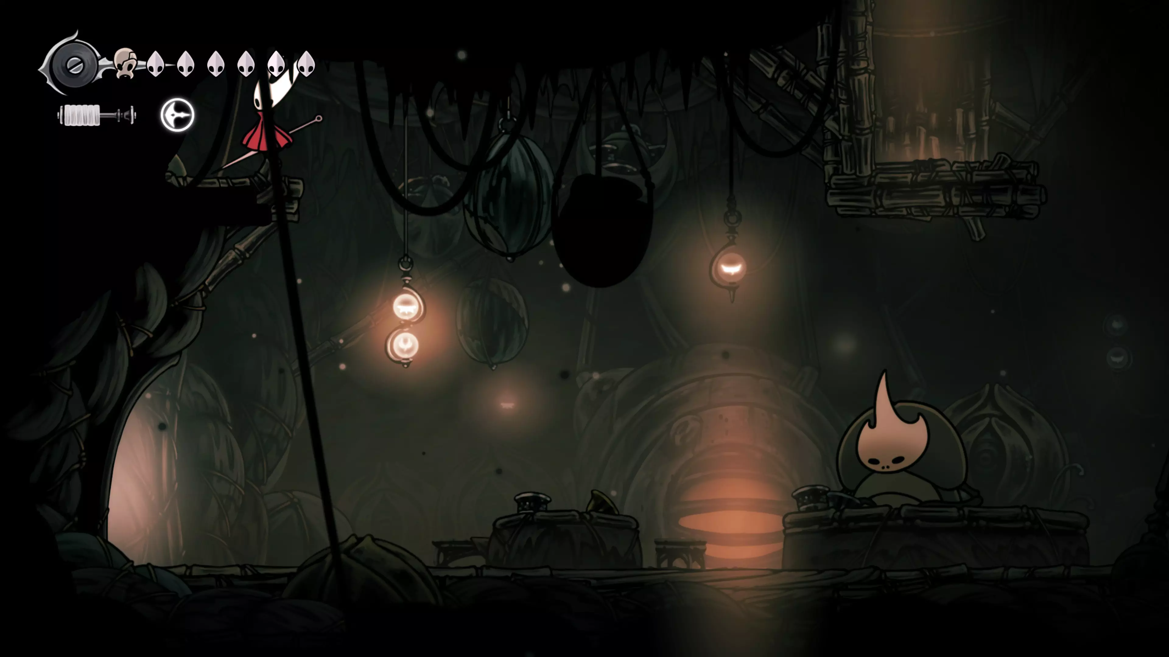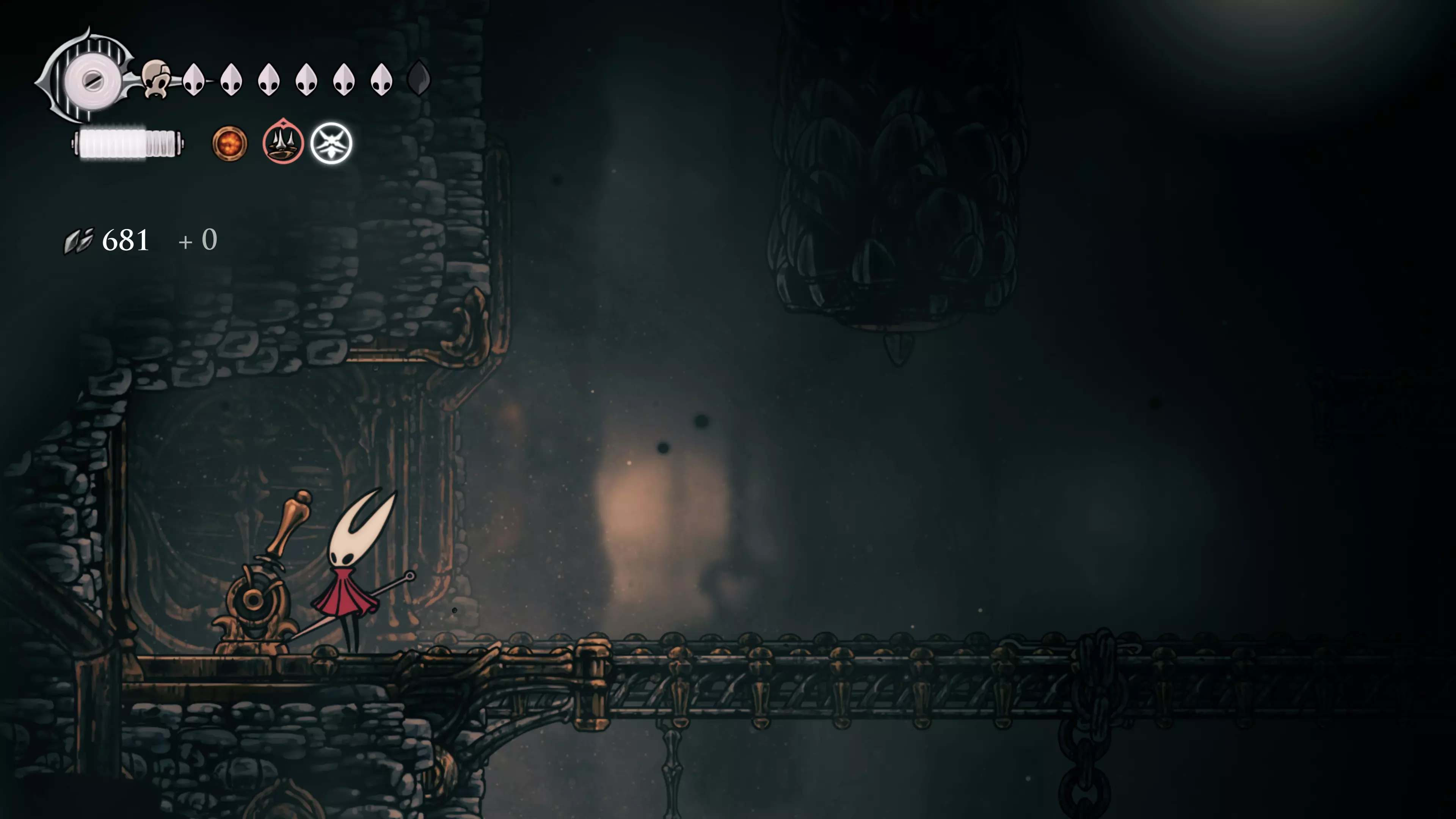 主要目标是前往下一个强化点,途中你会遇到蚂蚁,它们会掉落大量珠子。击败所有蚂蚁来获取一些资源。到达垂直区域后,你会在左下角看到一根管道,通向守护铃铛。这是一个实用的工具,常常能派上用场。