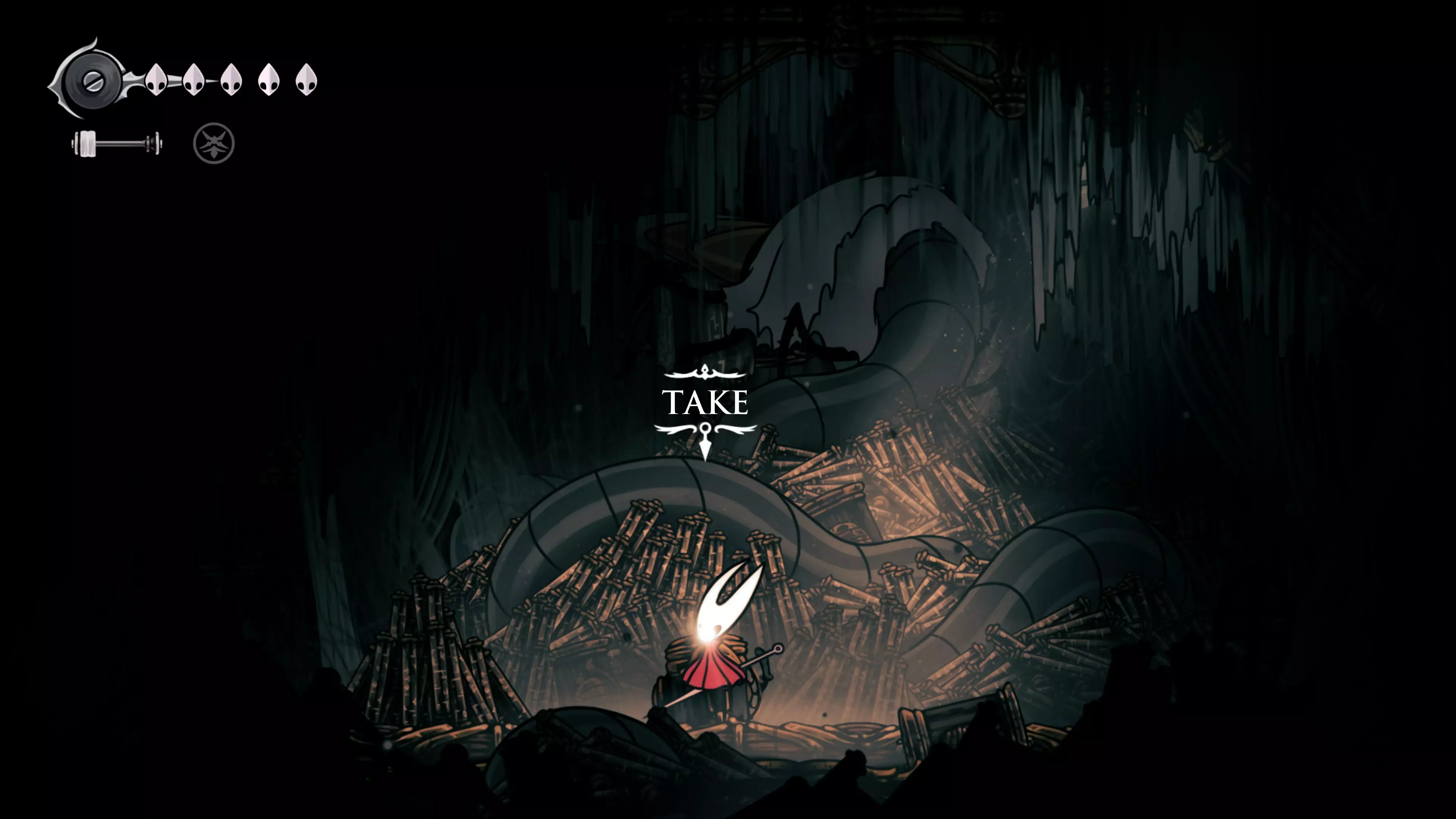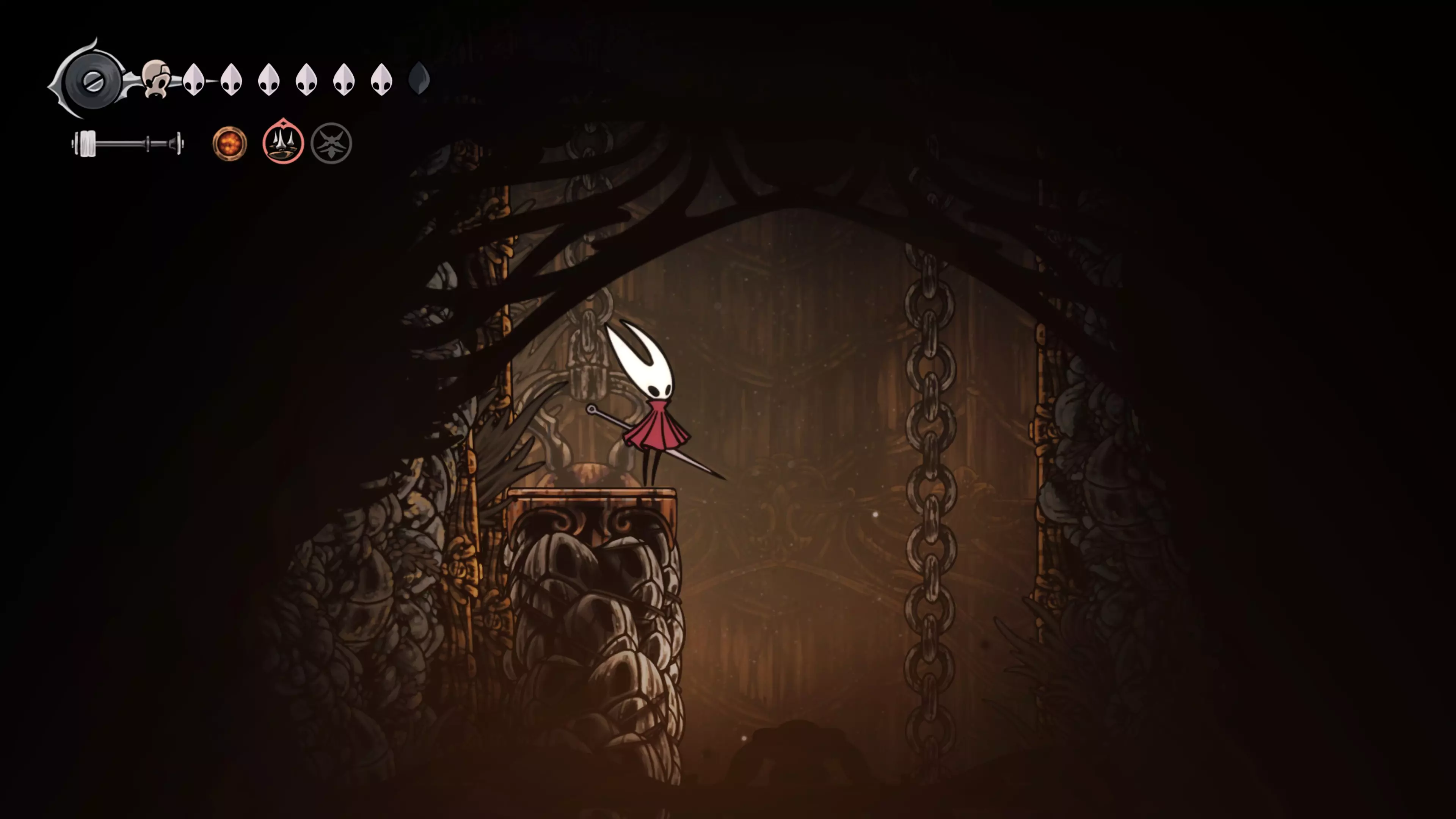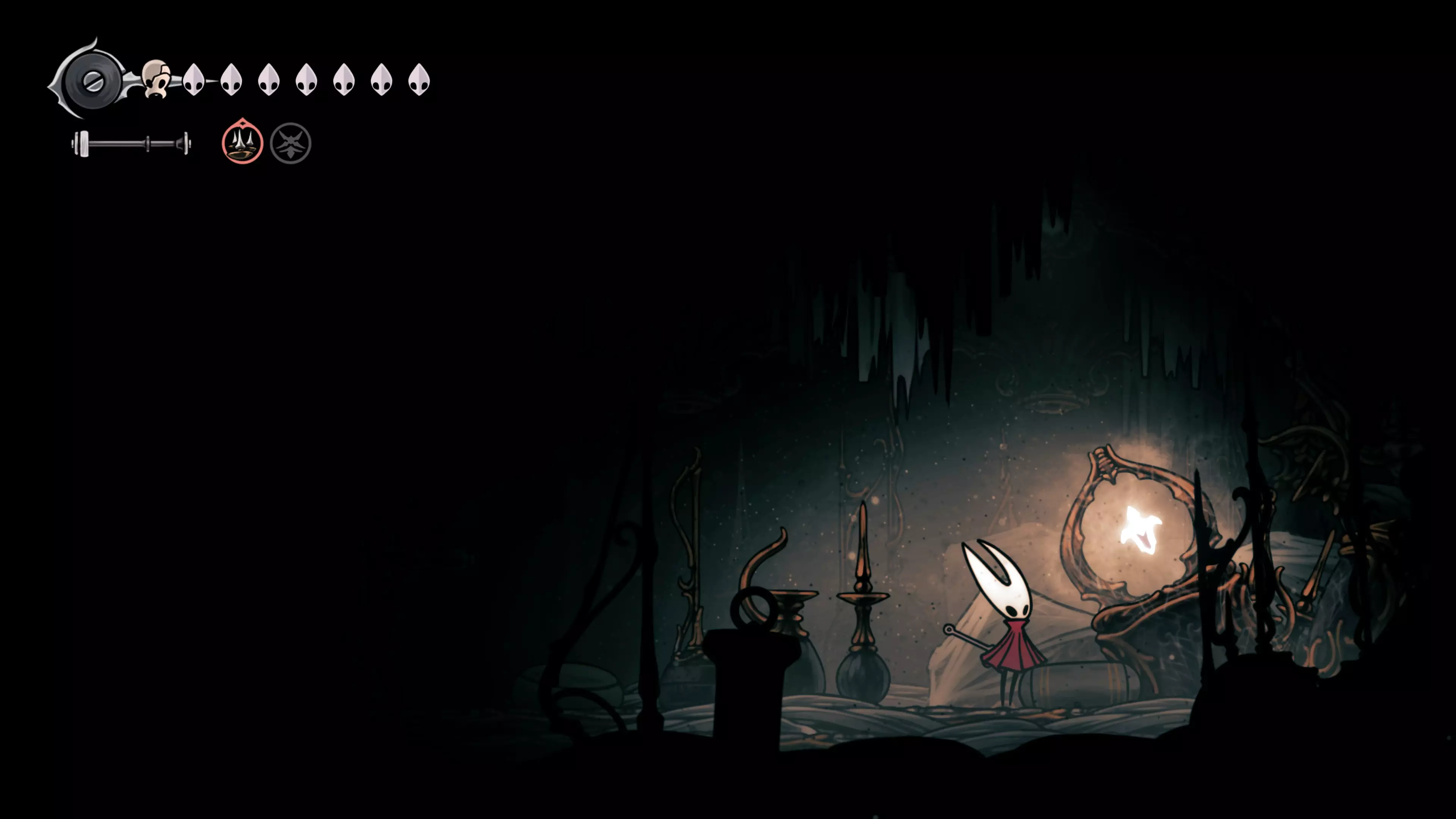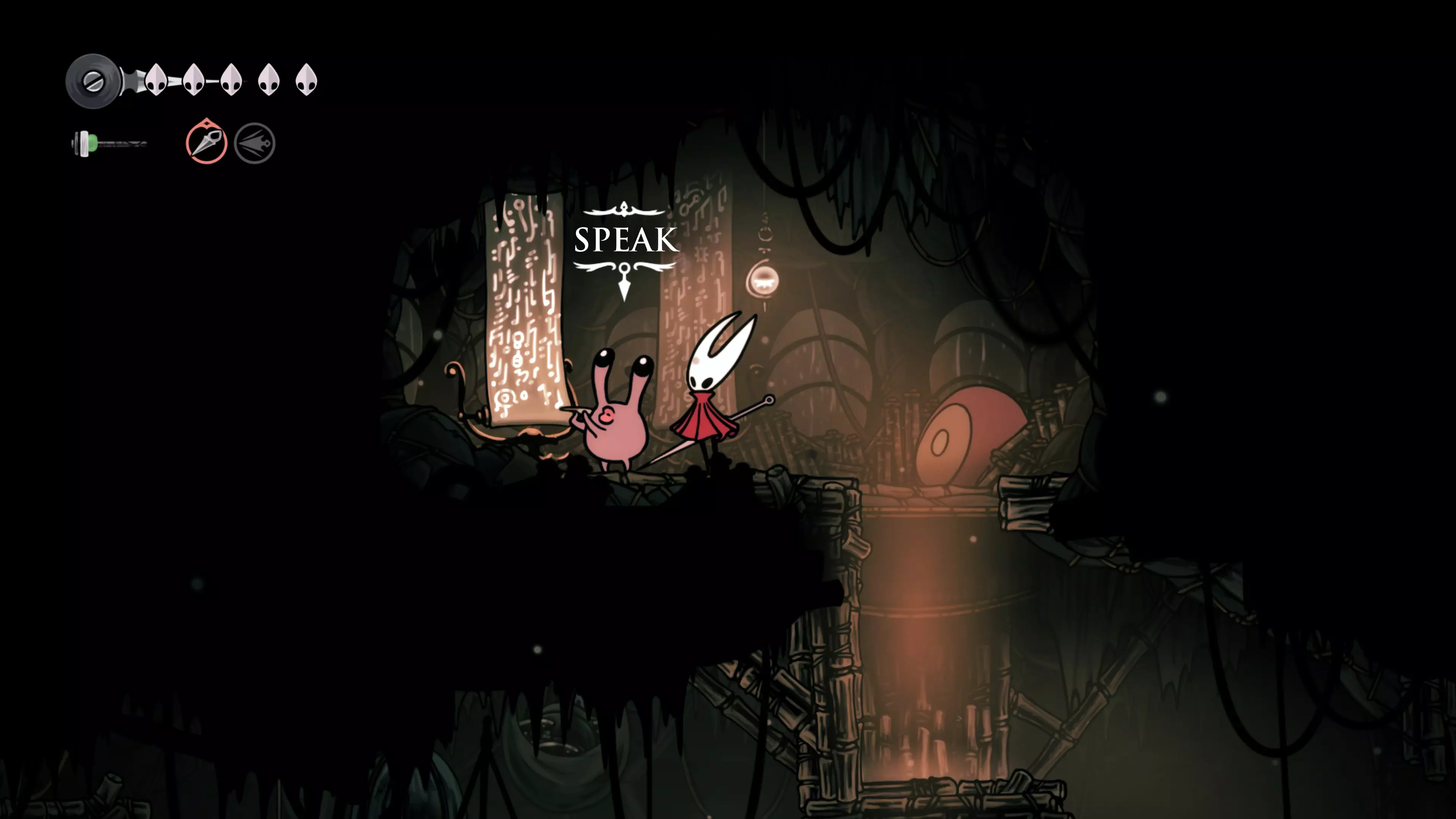 主要目标是前往下一个强化点,途中你会遇到蚂蚁,它们会掉落大量珠子。击败所有蚂蚁来获取一些资源。到达垂直区域后,你会在左下角看到一根管道,通向守护铃铛。这是一个实用的工具,常常能派上用场。