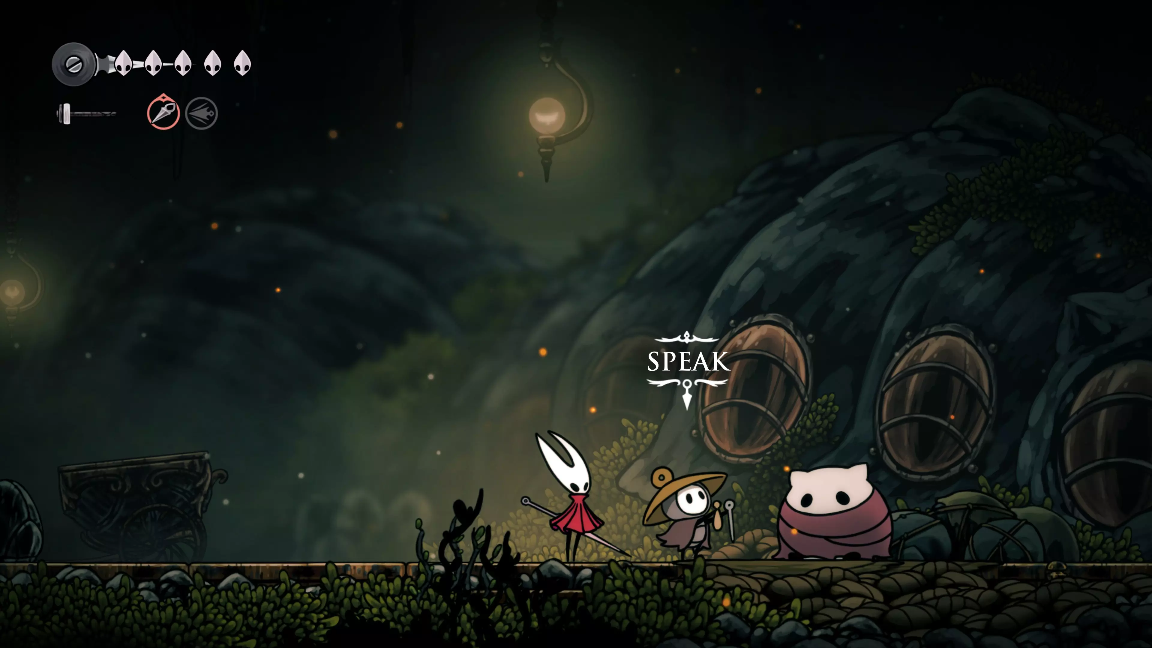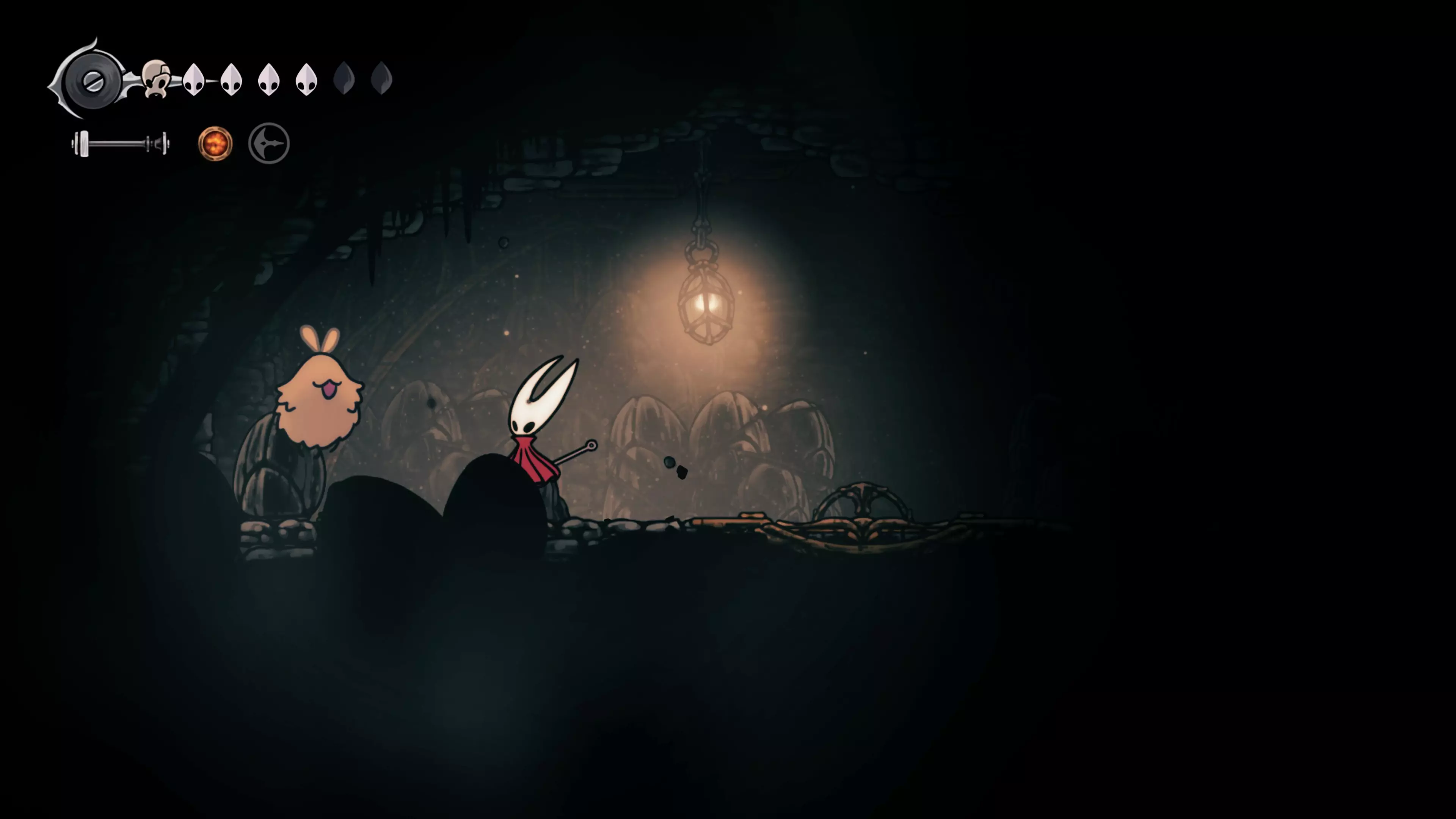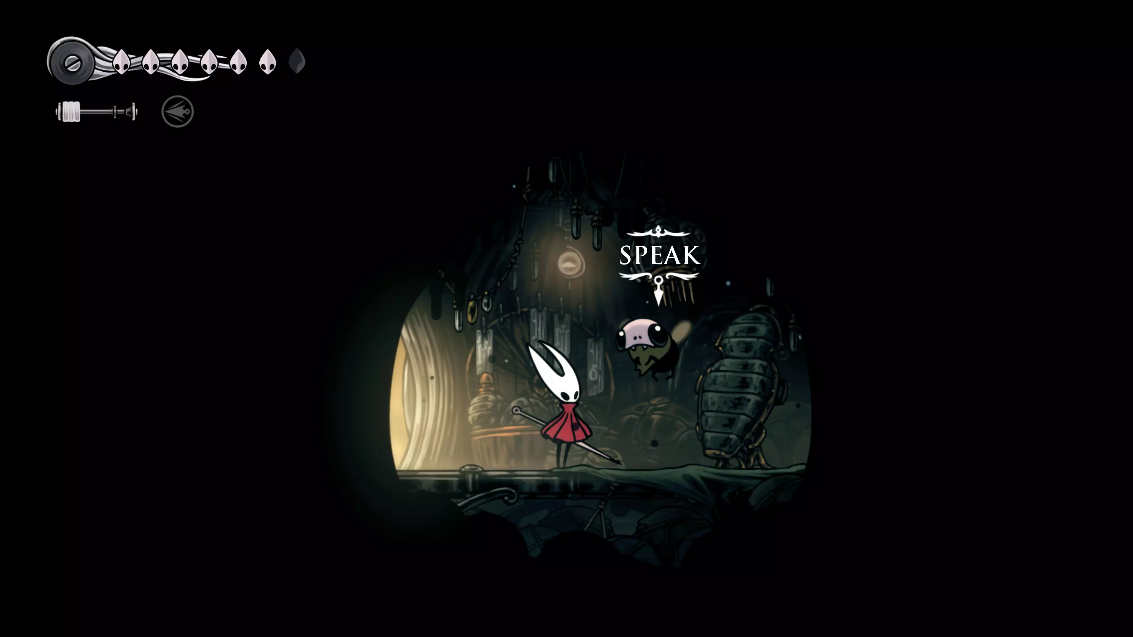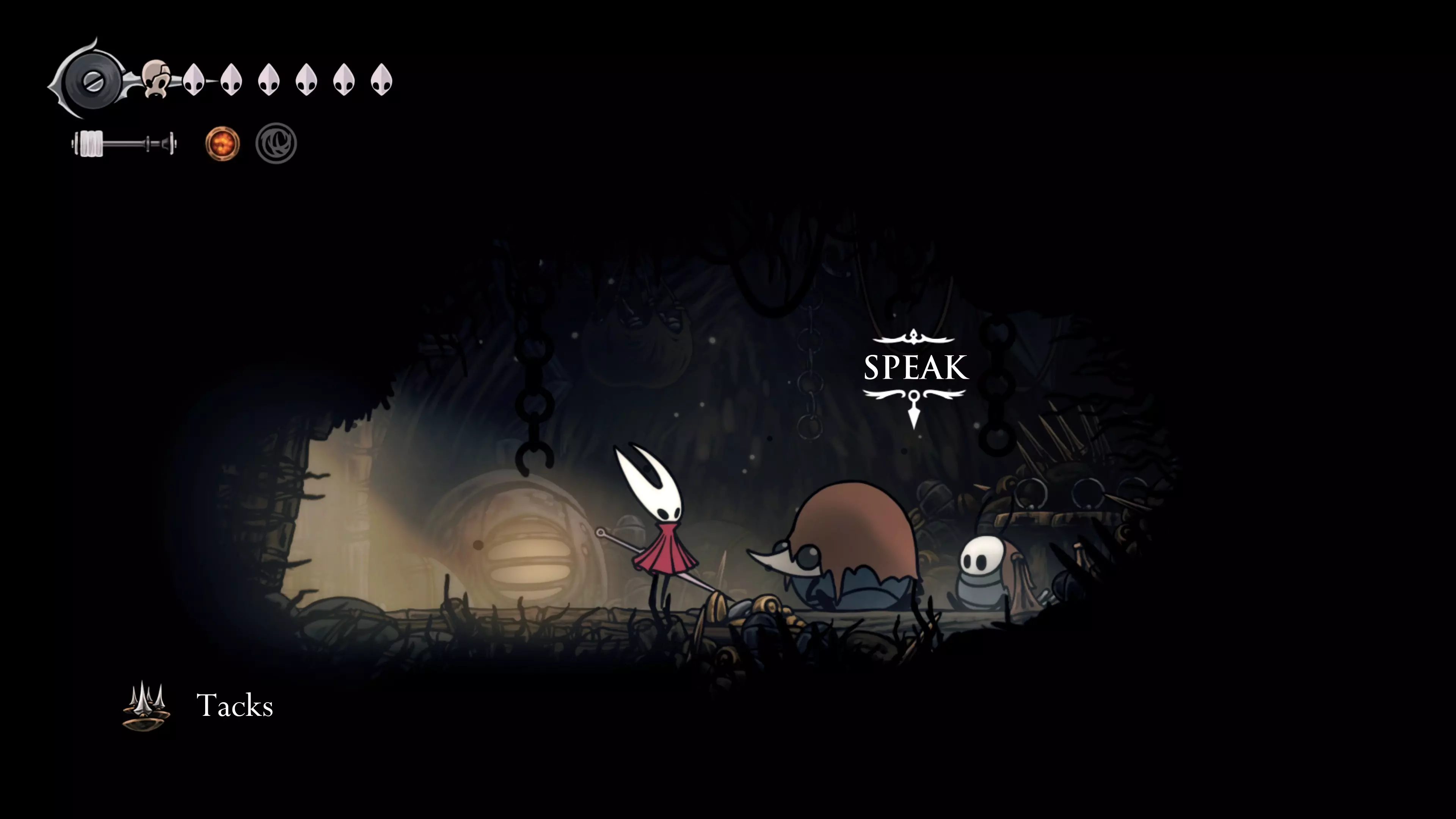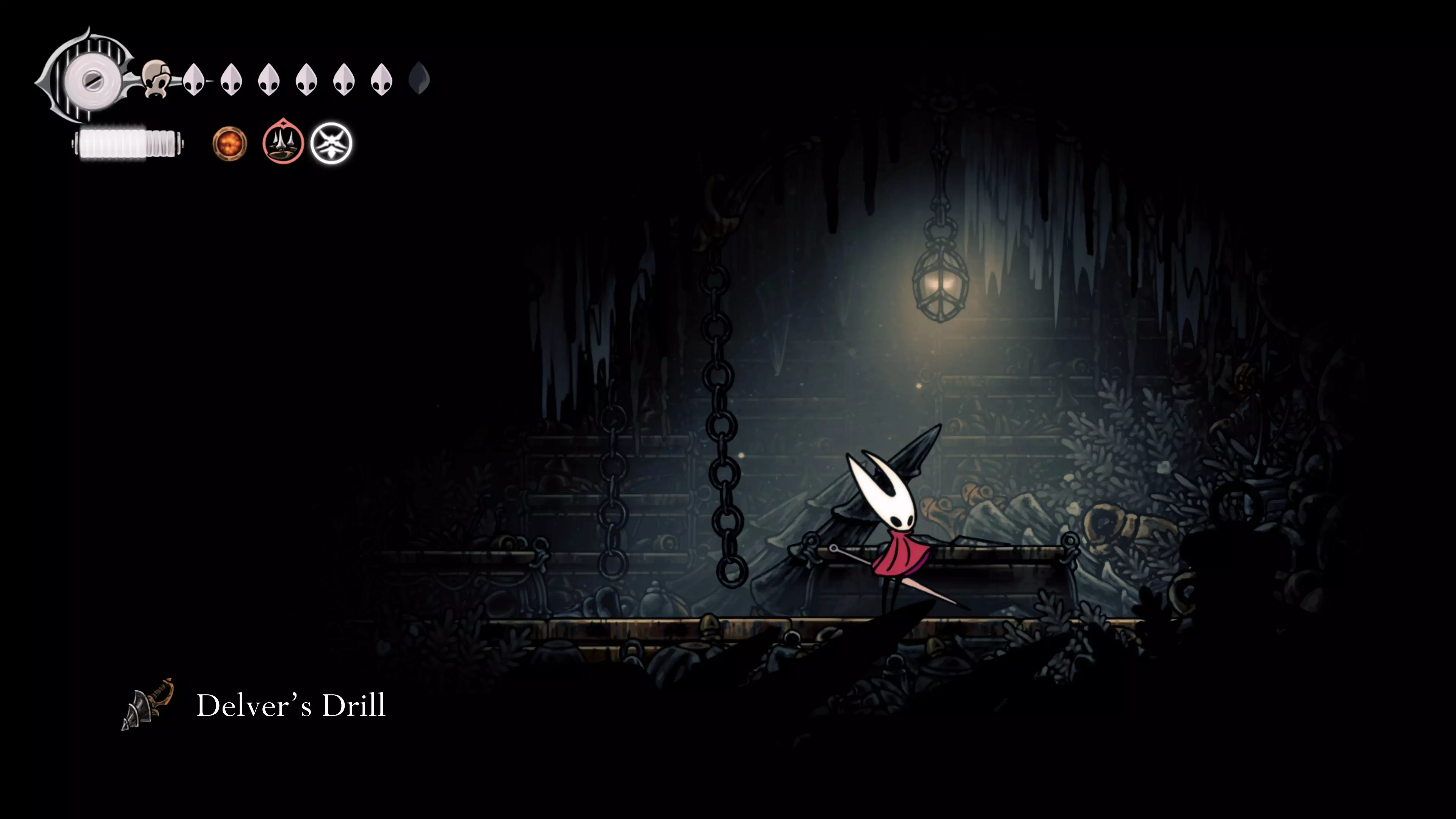 主要目标是前往下一个强化点,途中你会遇到蚂蚁,它们会掉落大量珠子。击败所有蚂蚁来获取一些资源。到达垂直区域后,你会在左下角看到一根管道,通向守护铃铛。这是一个实用的工具,常常能派上用场。