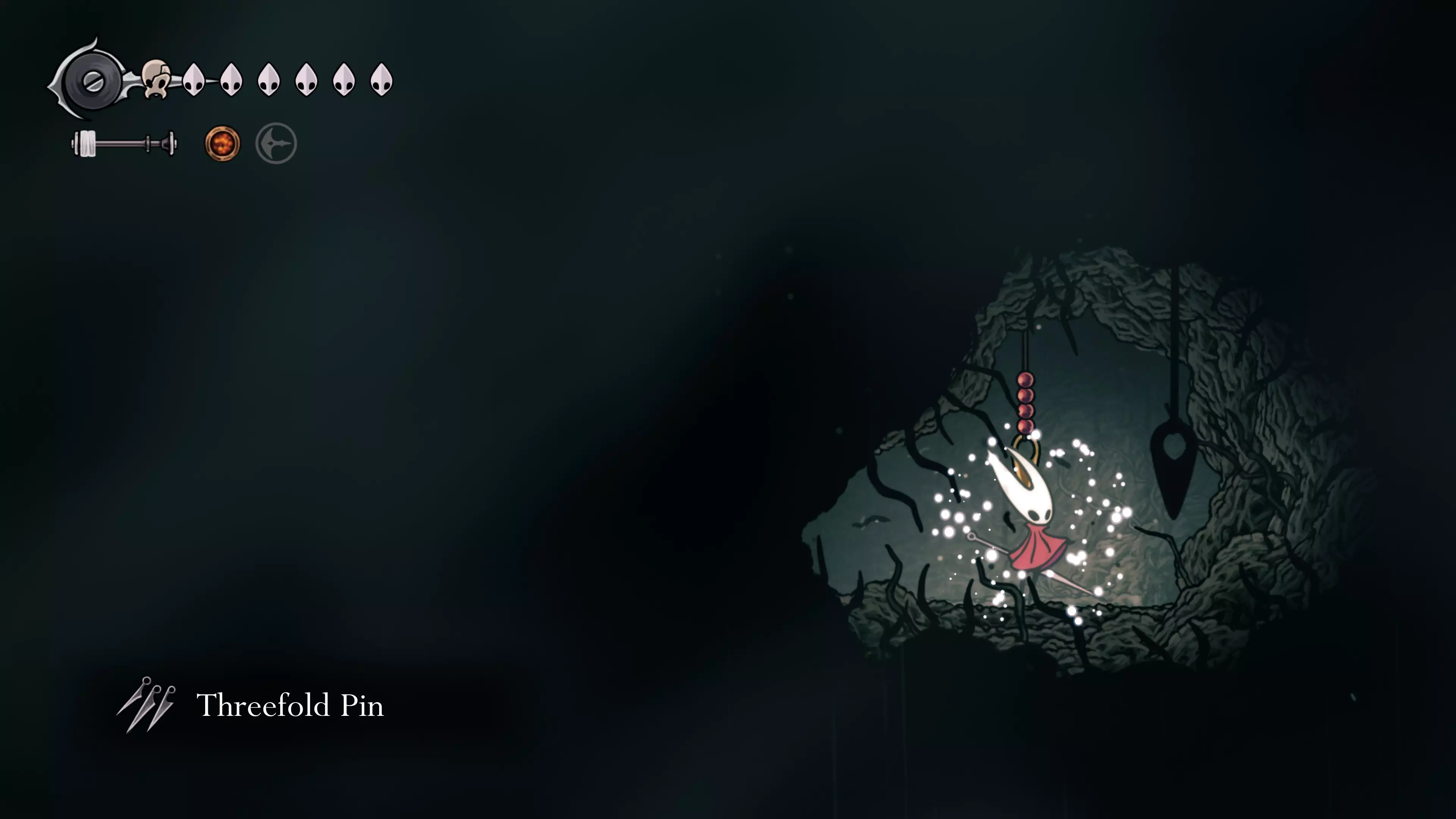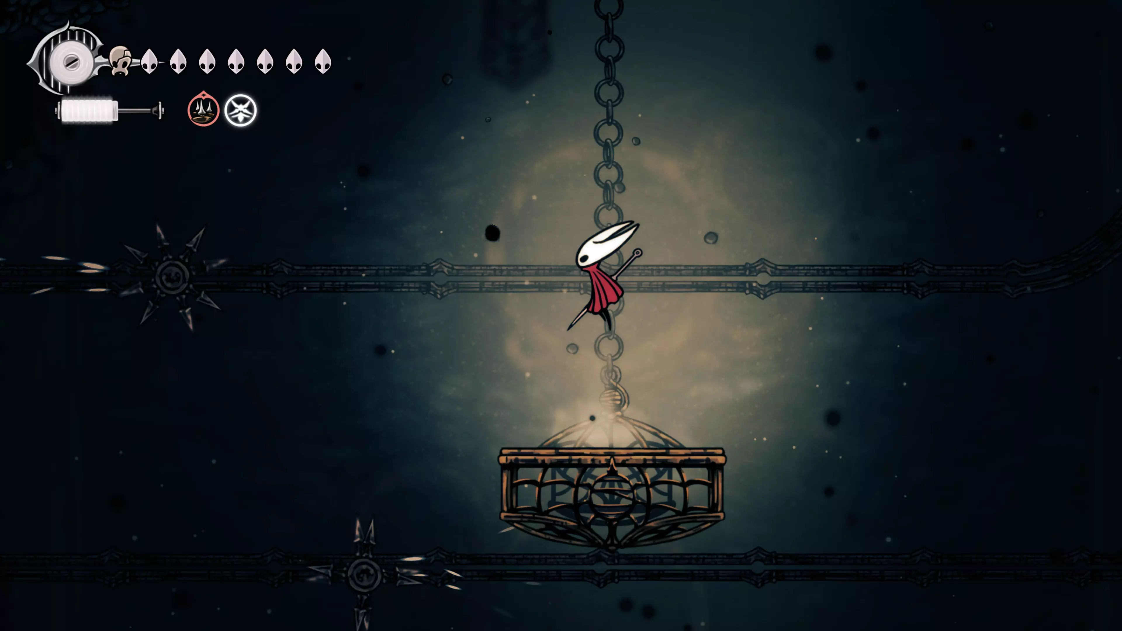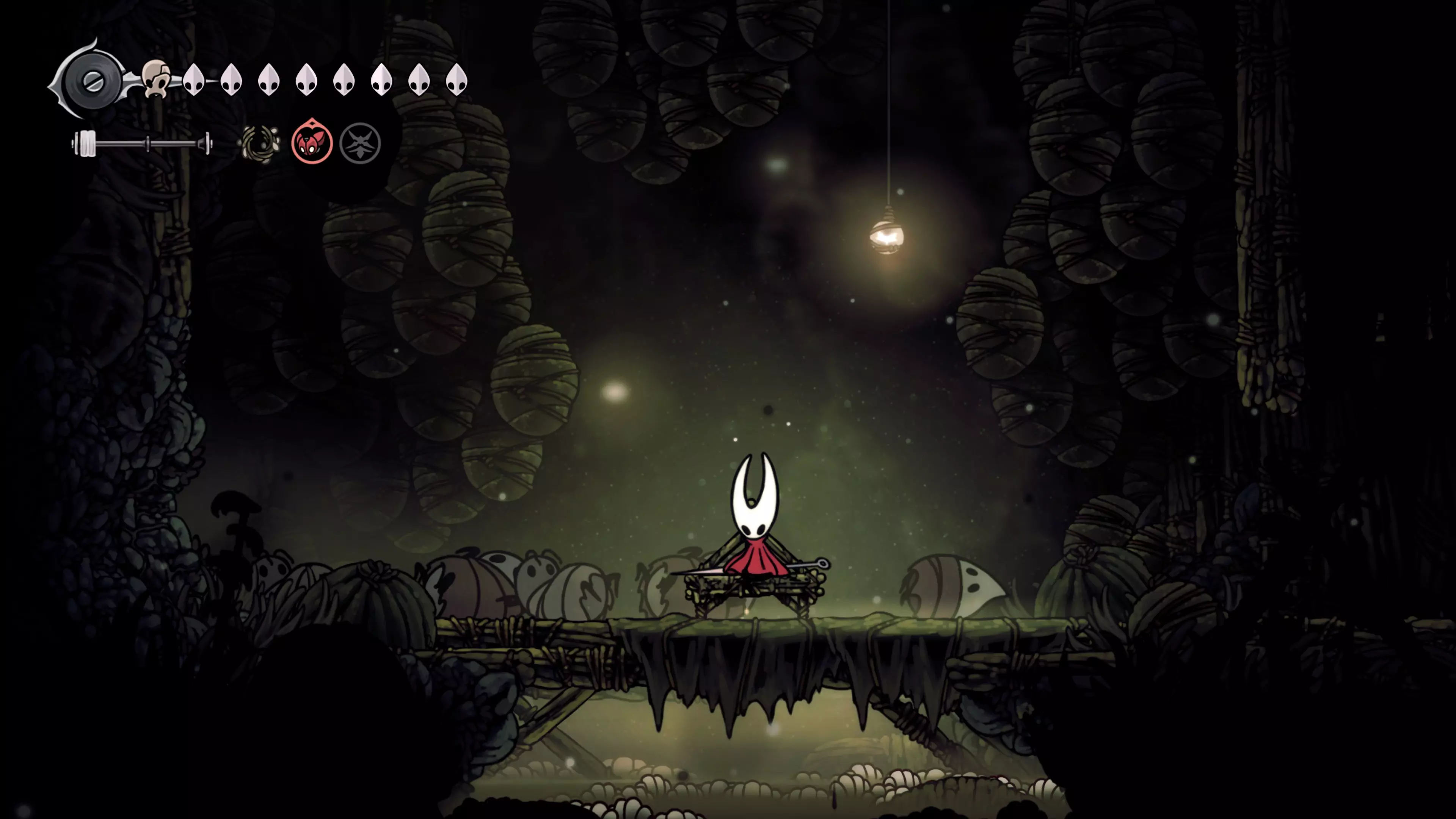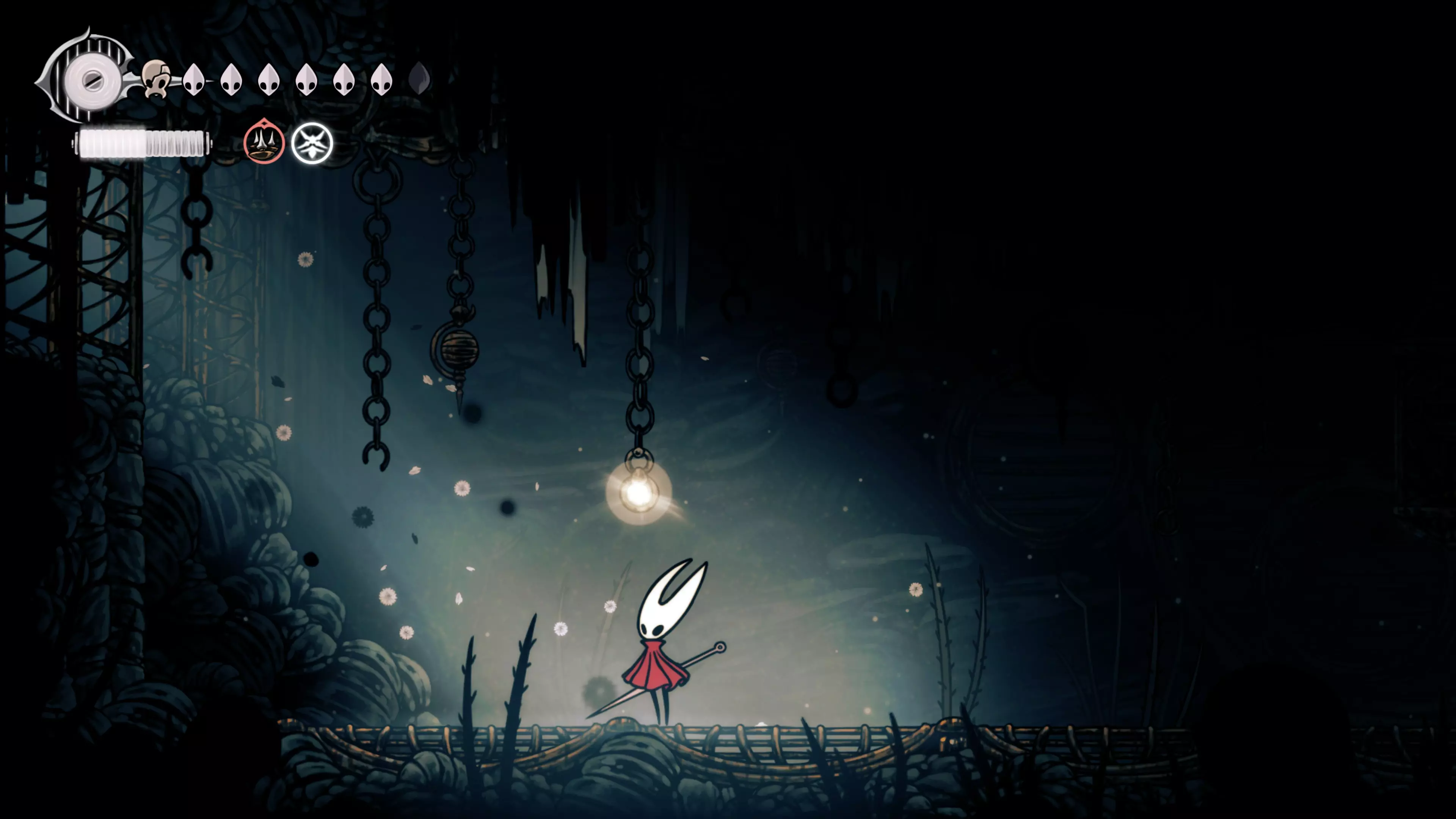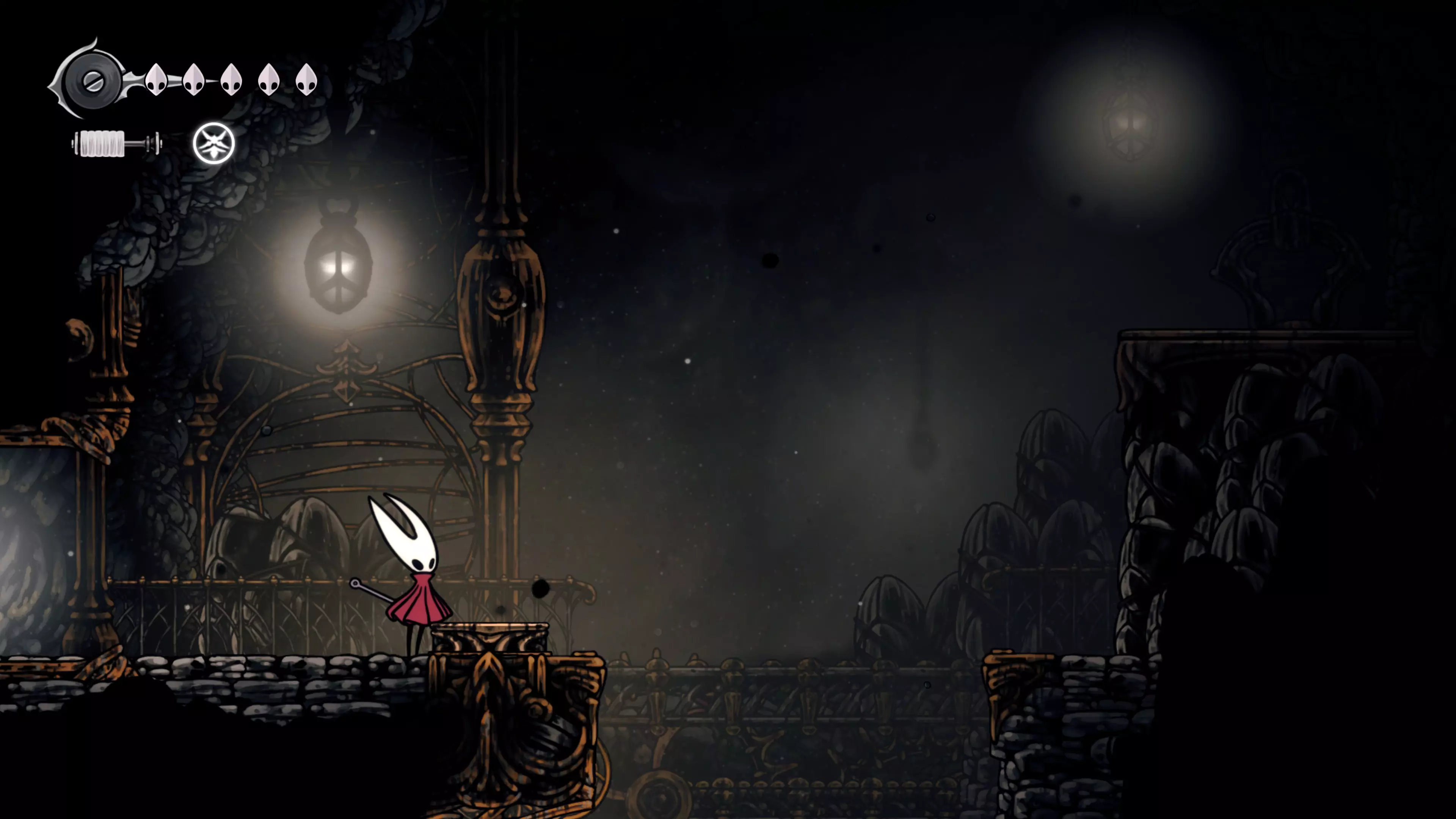 接下来需要穿过这片区域并完全探索它,直到抵达顶端。这里的平台跳跃可能并不简单——记住,你可以将钉子扔向带刺的石头,霍恩特会自动弹开。抵达顶端后,使用【王之翼】进入【电车门】。