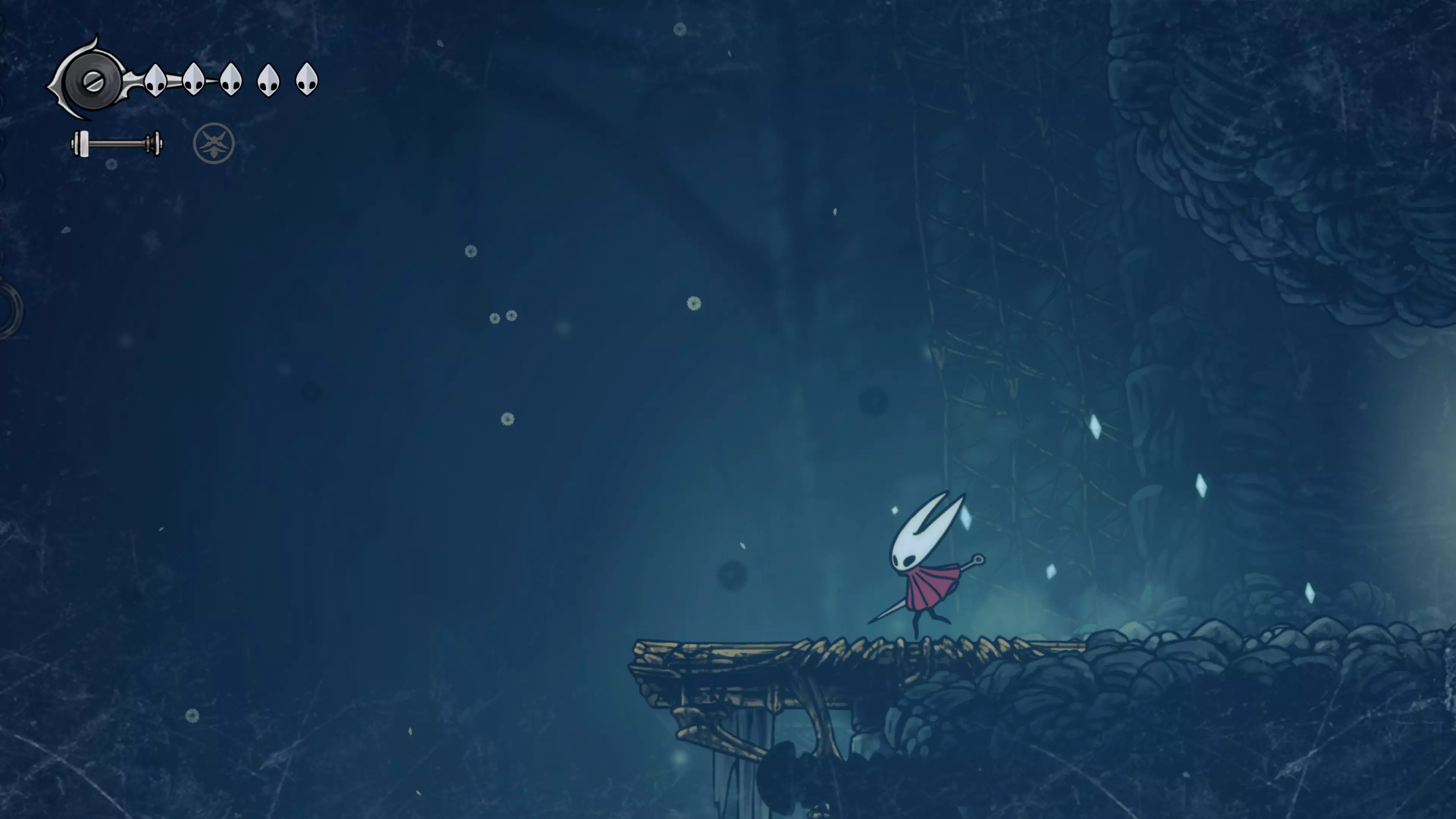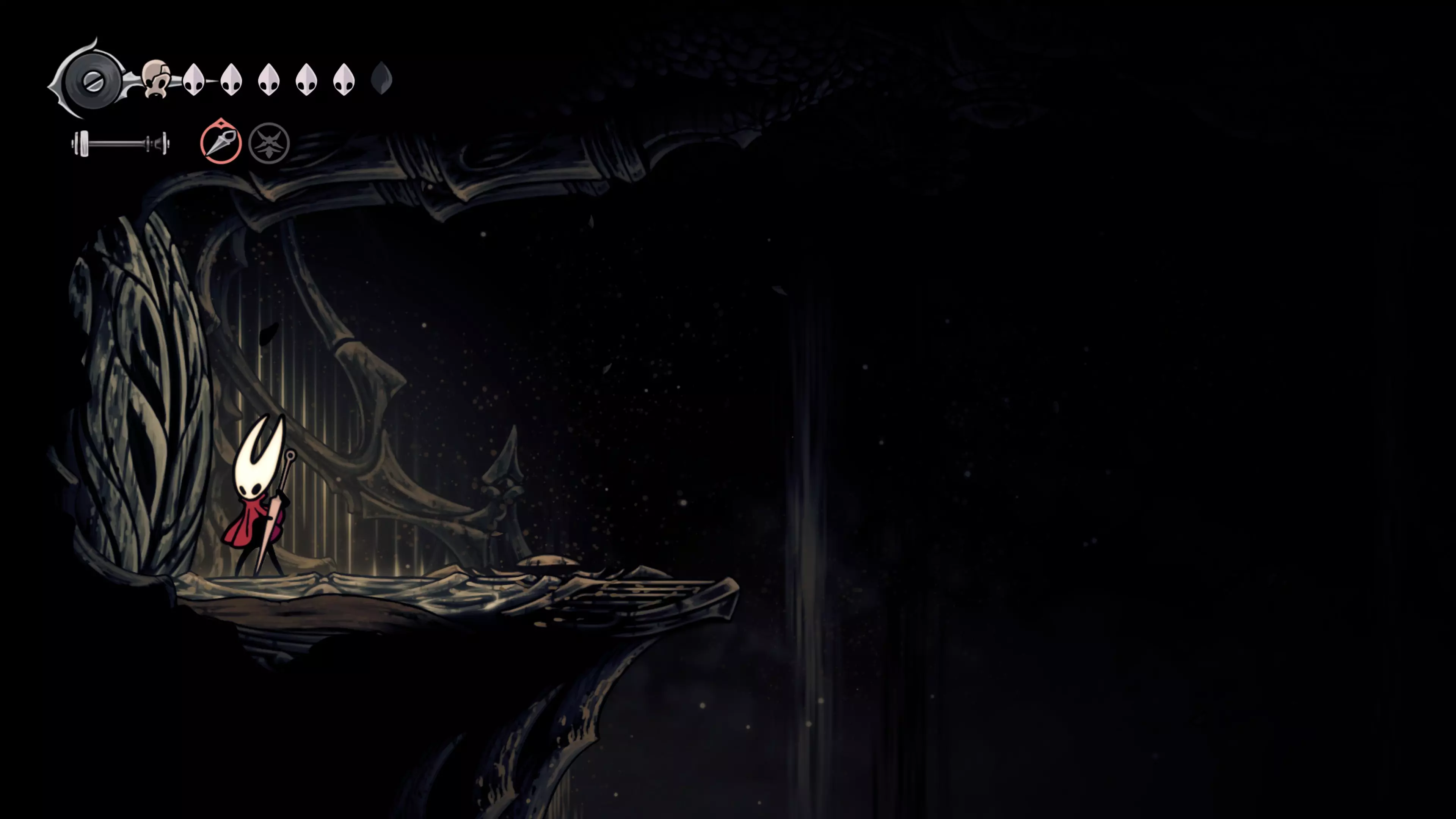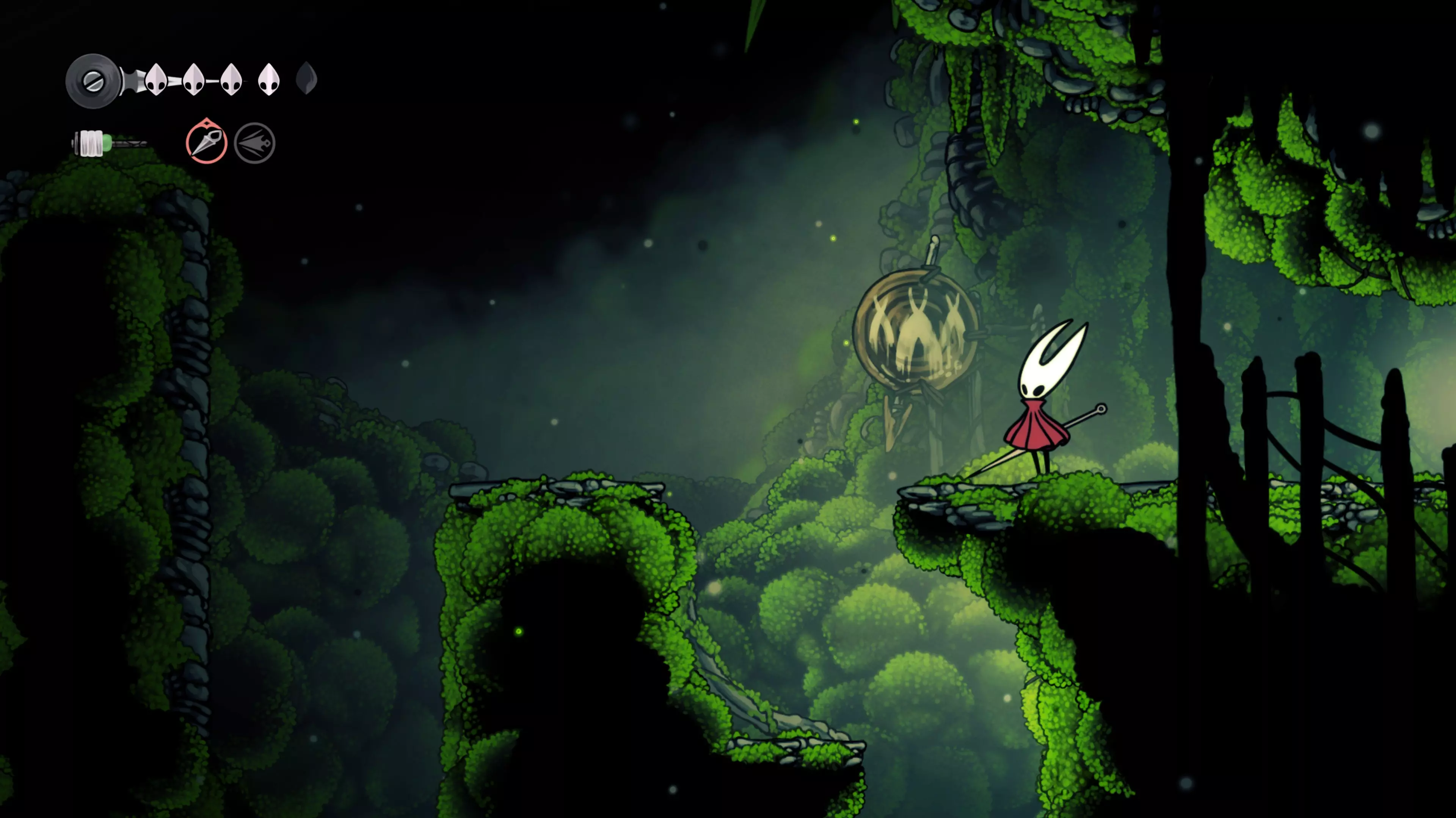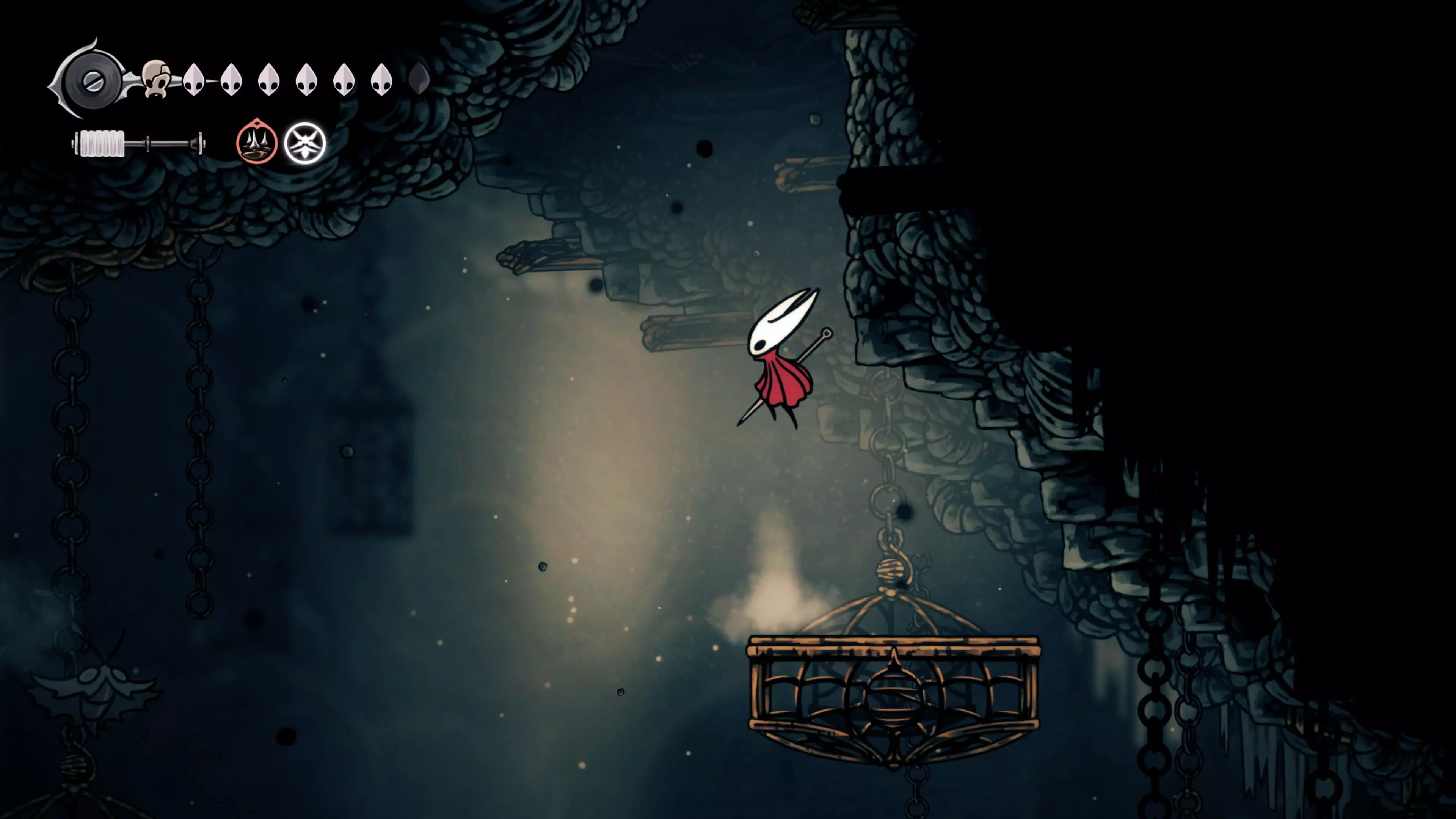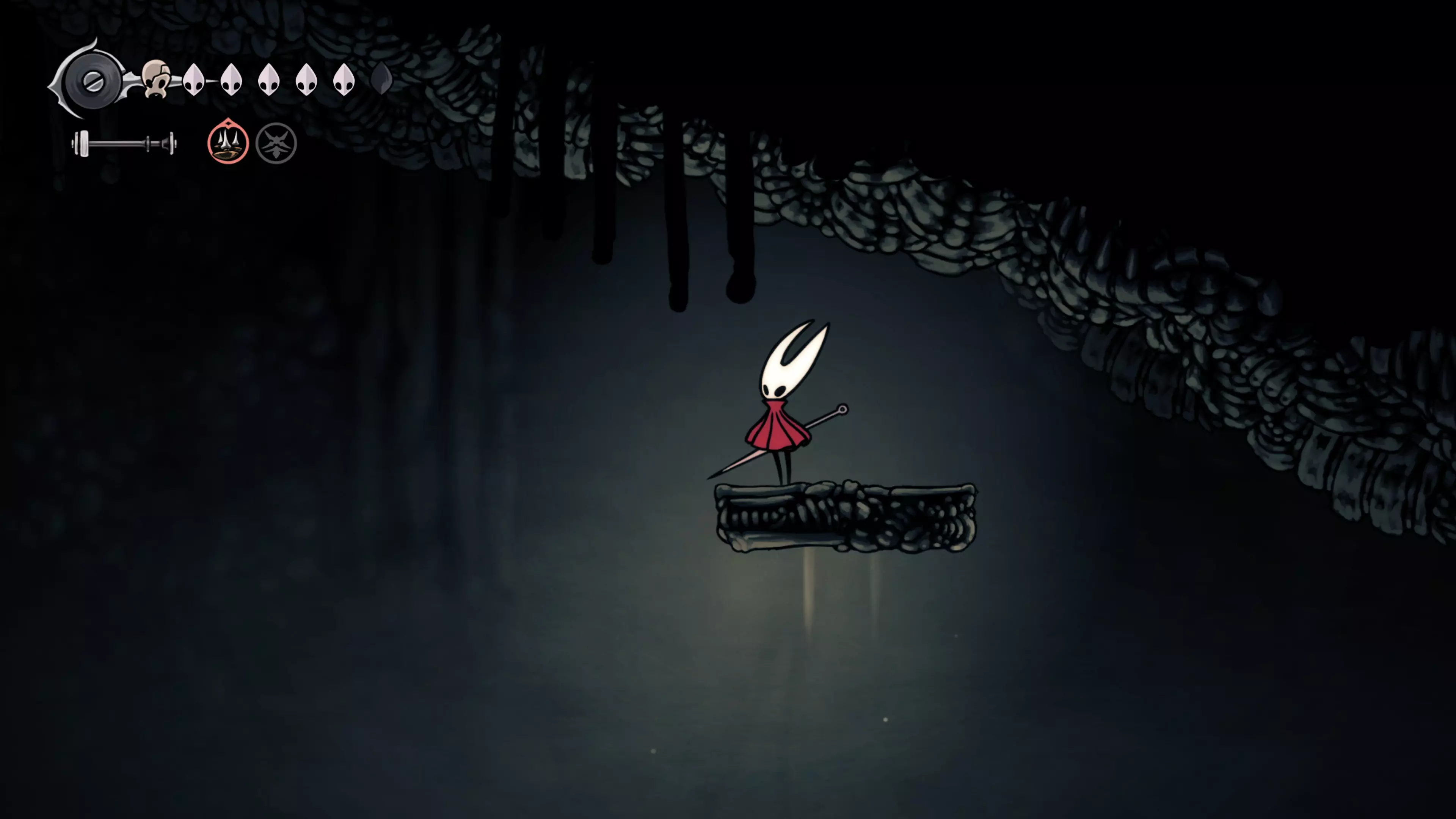 接下来需要穿过这片区域并完全探索它,直到抵达顶端。这里的平台跳跃可能并不简单——记住,你可以将钉子扔向带刺的石头,霍恩特会自动弹开。抵达顶端后,使用【王之翼】进入【电车门】。