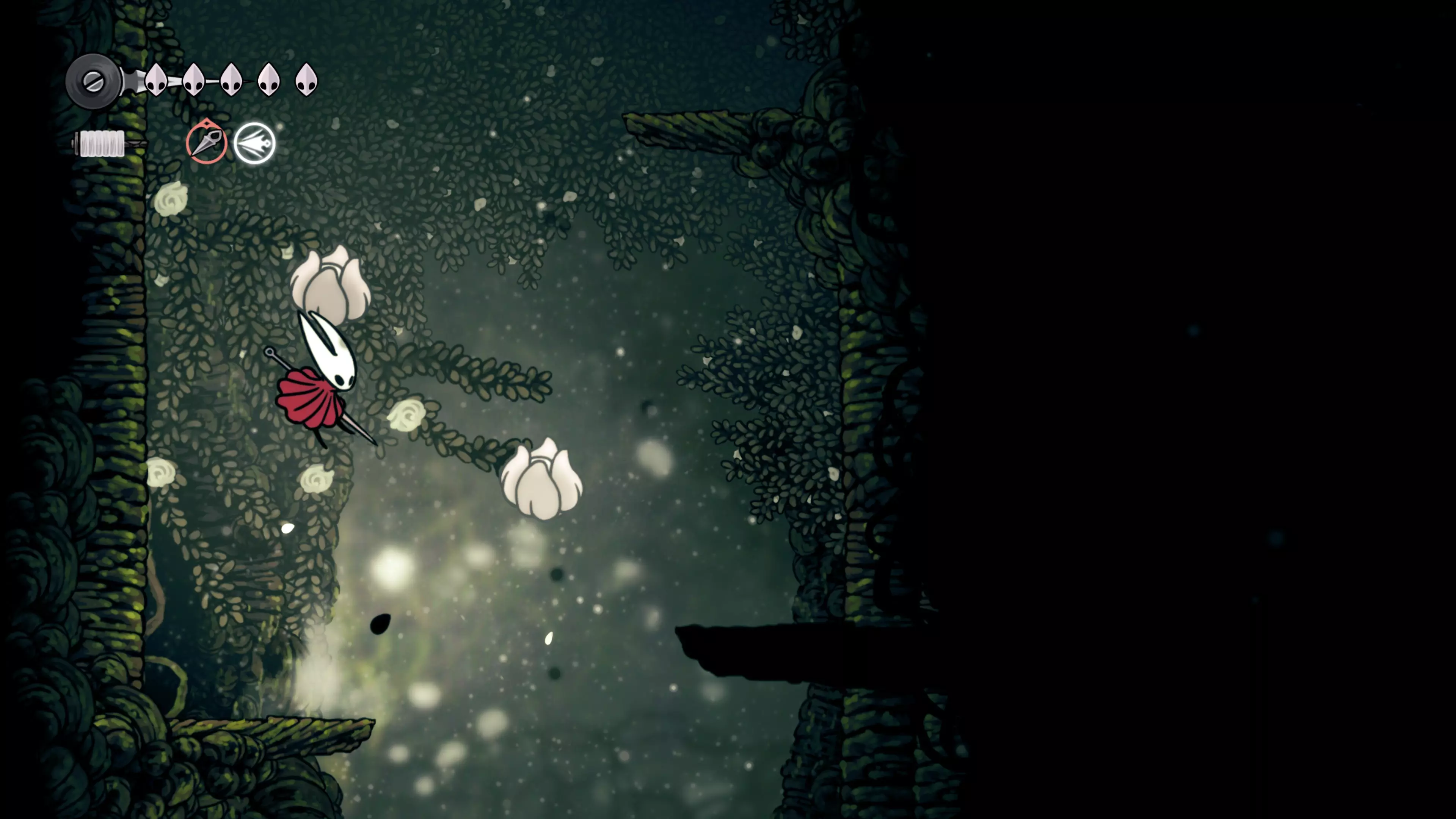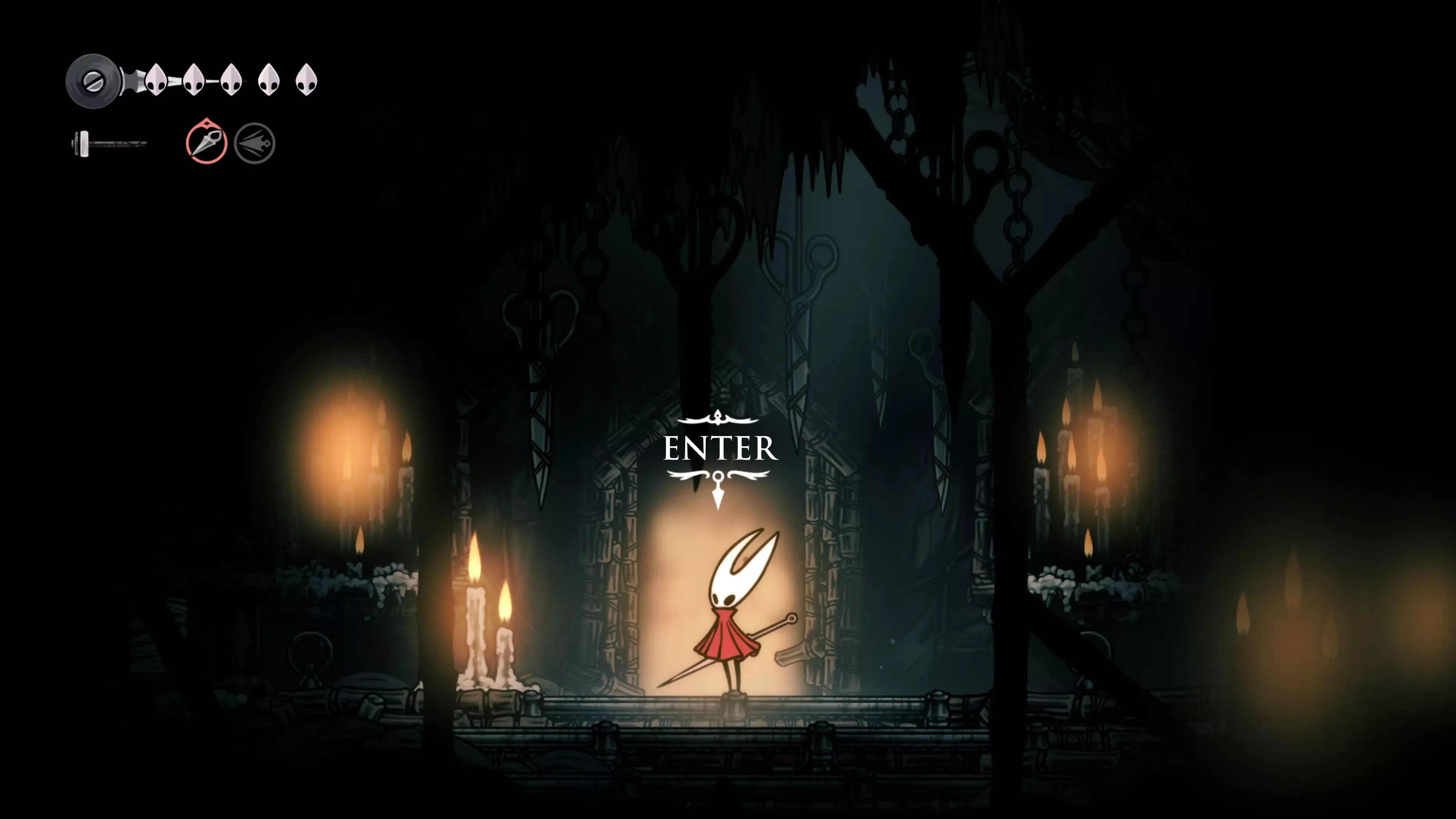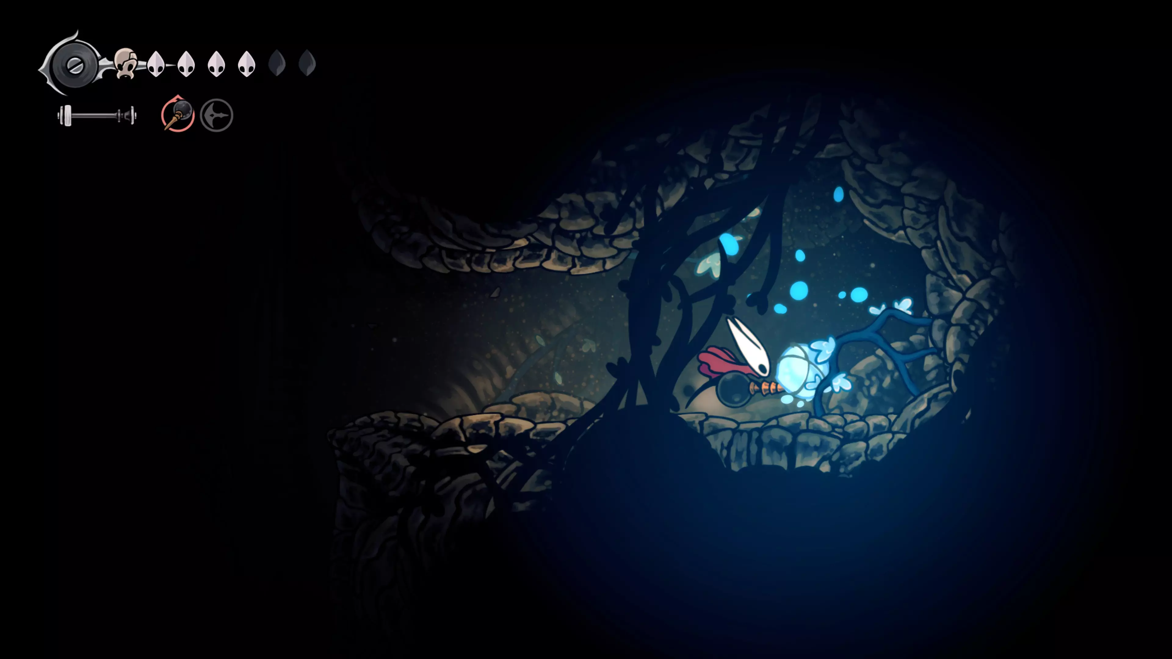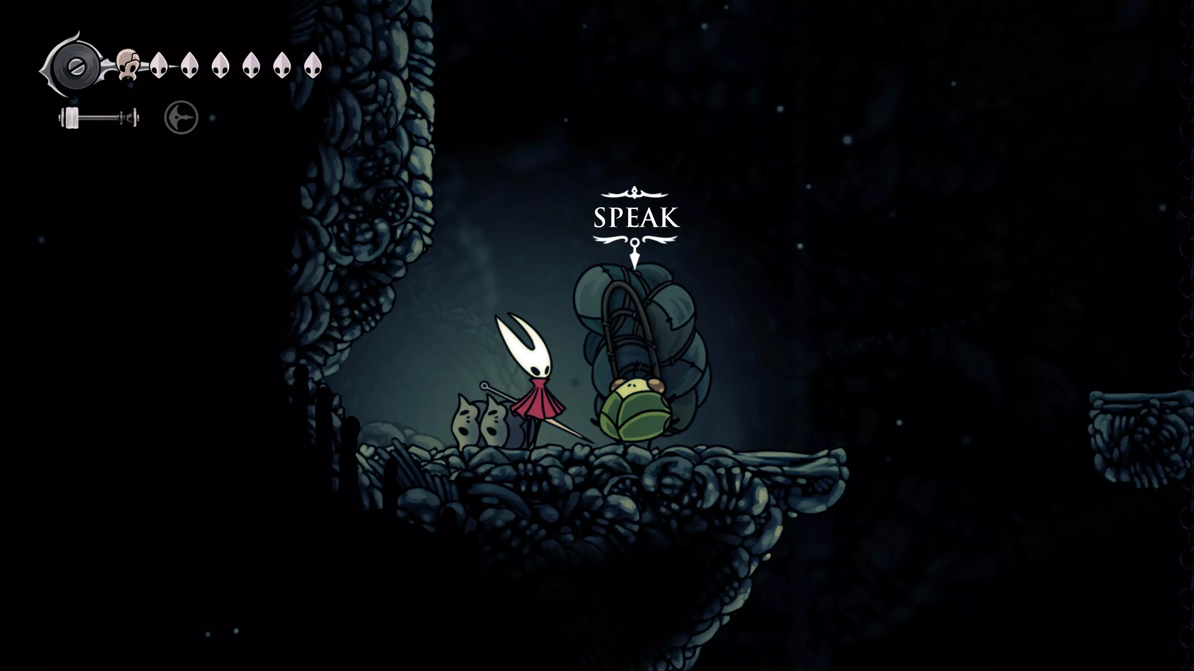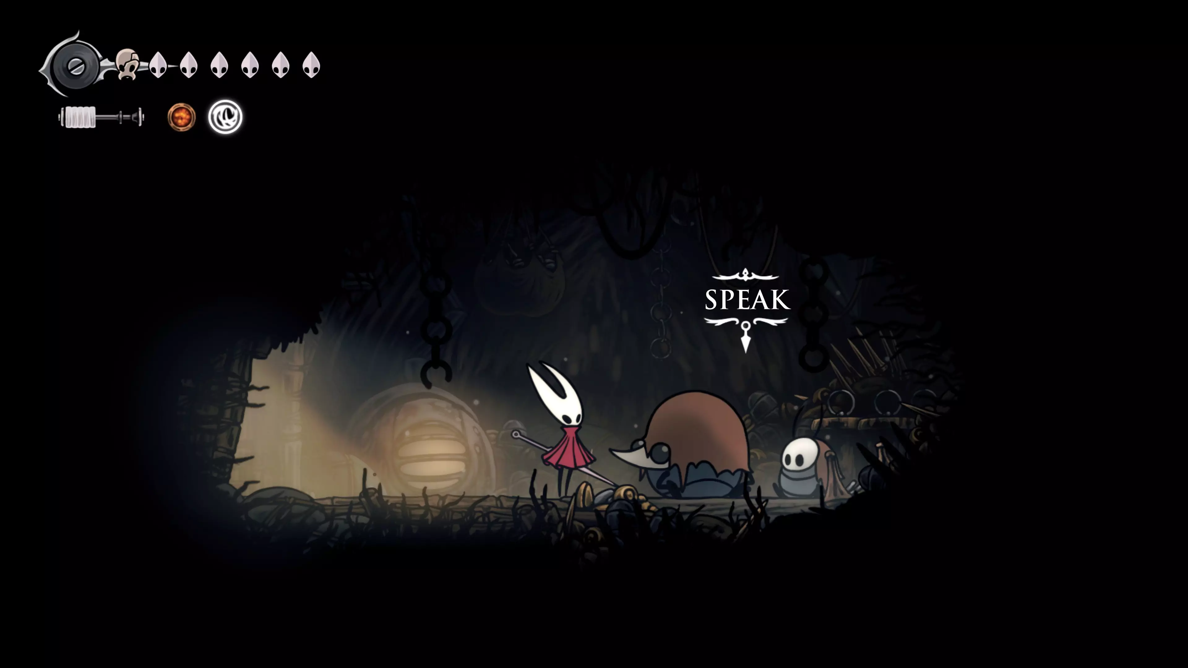 接下来需要穿过这片区域并完全探索它,直到抵达顶端。这里的平台跳跃可能并不简单——记住,你可以将钉子扔向带刺的石头,霍恩特会自动弹开。抵达顶端后,使用【王之翼】进入【电车门】。