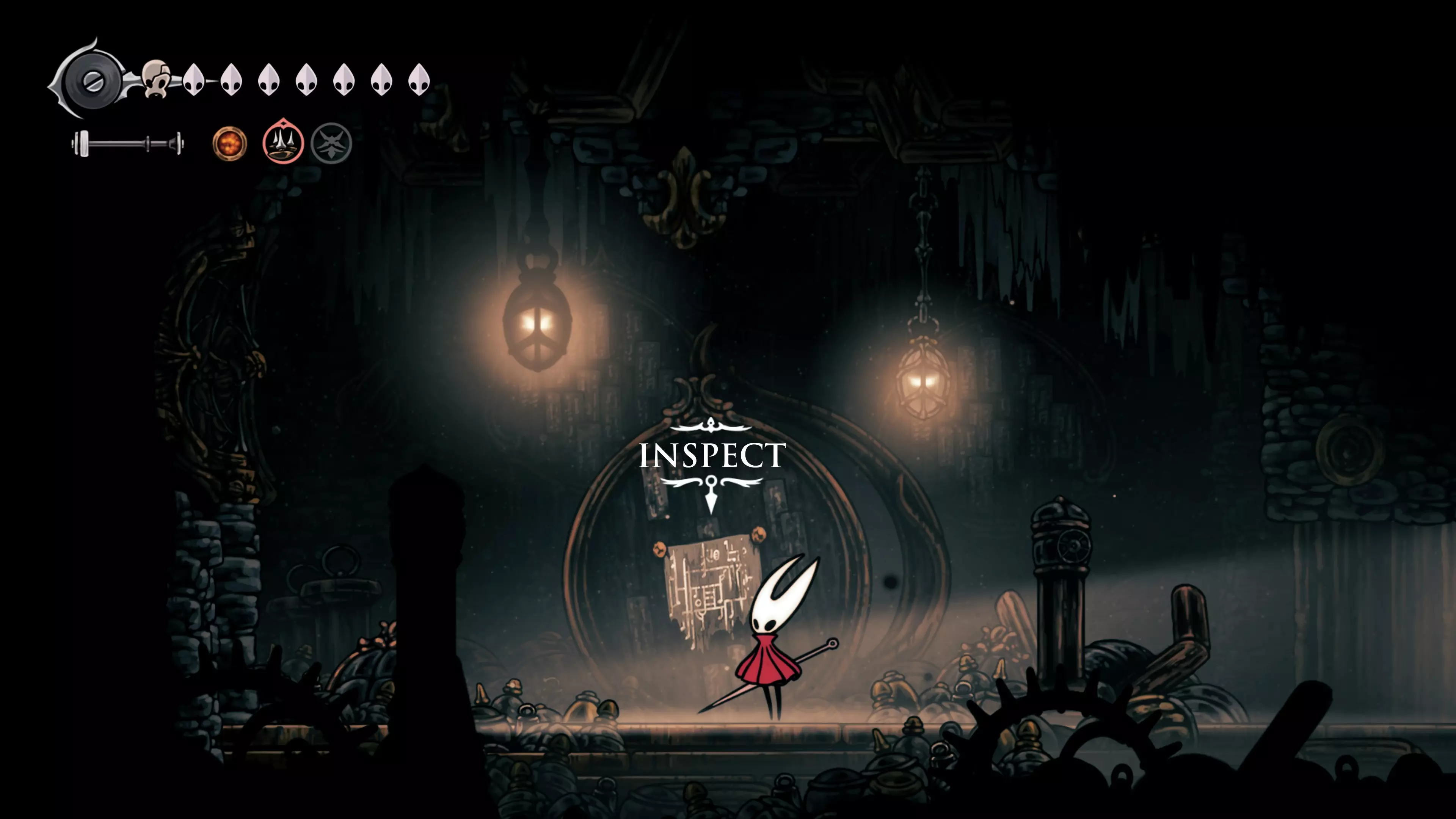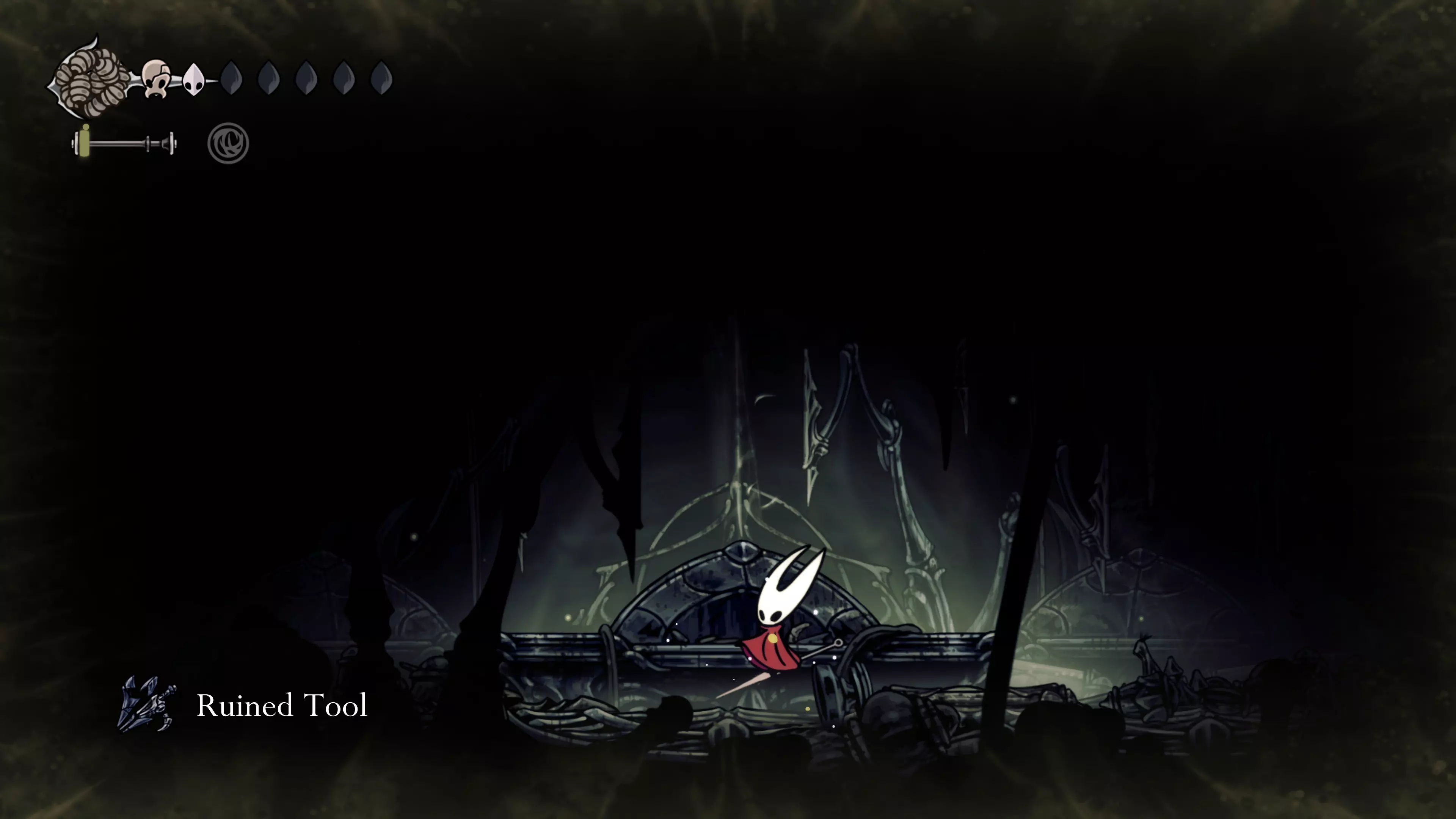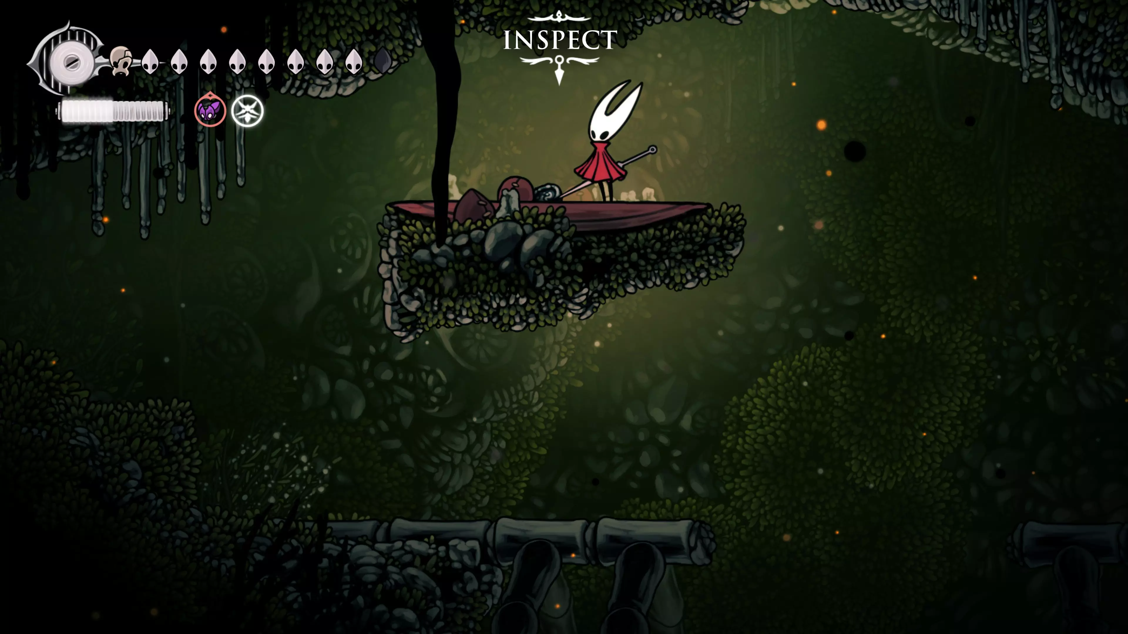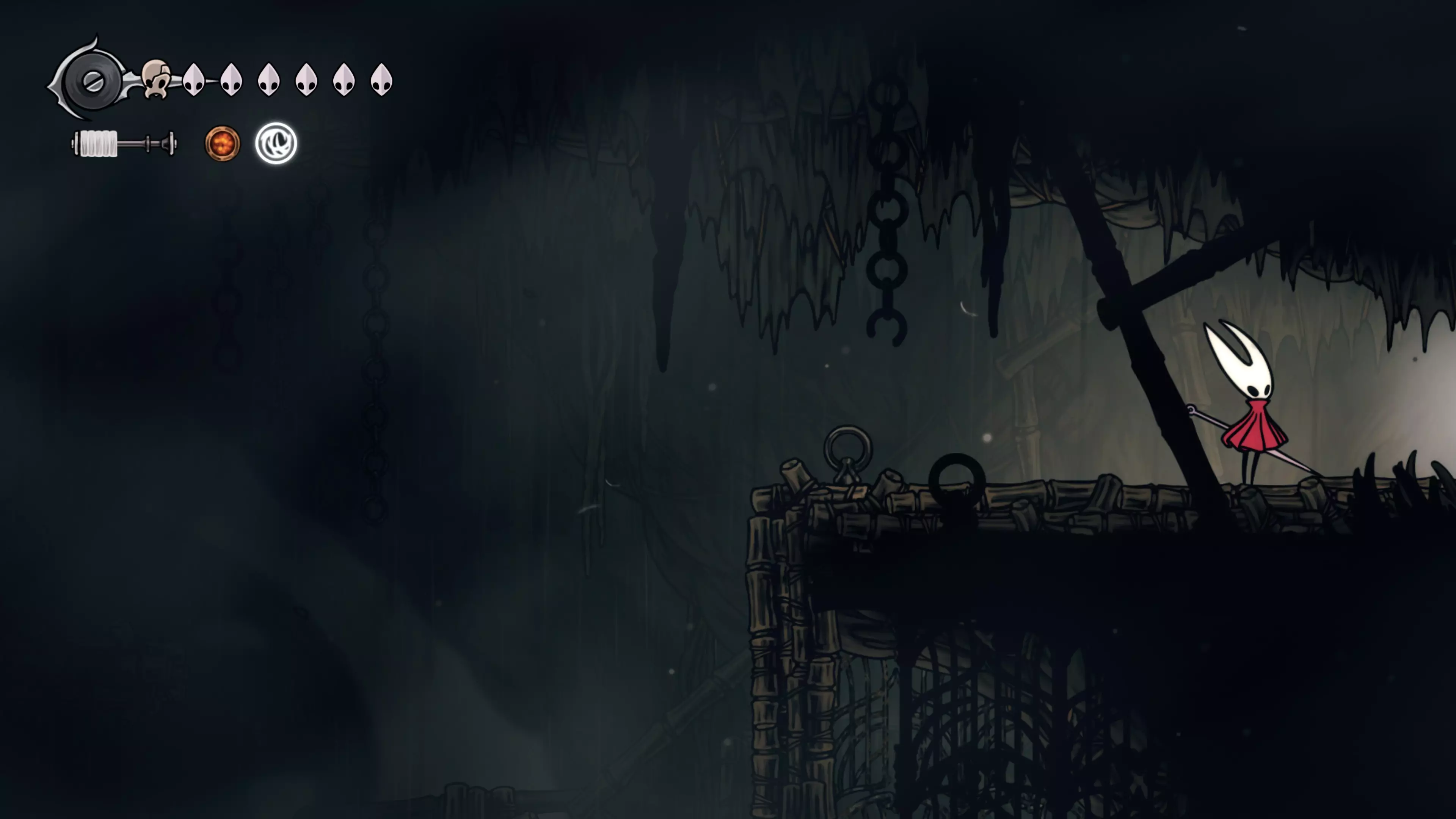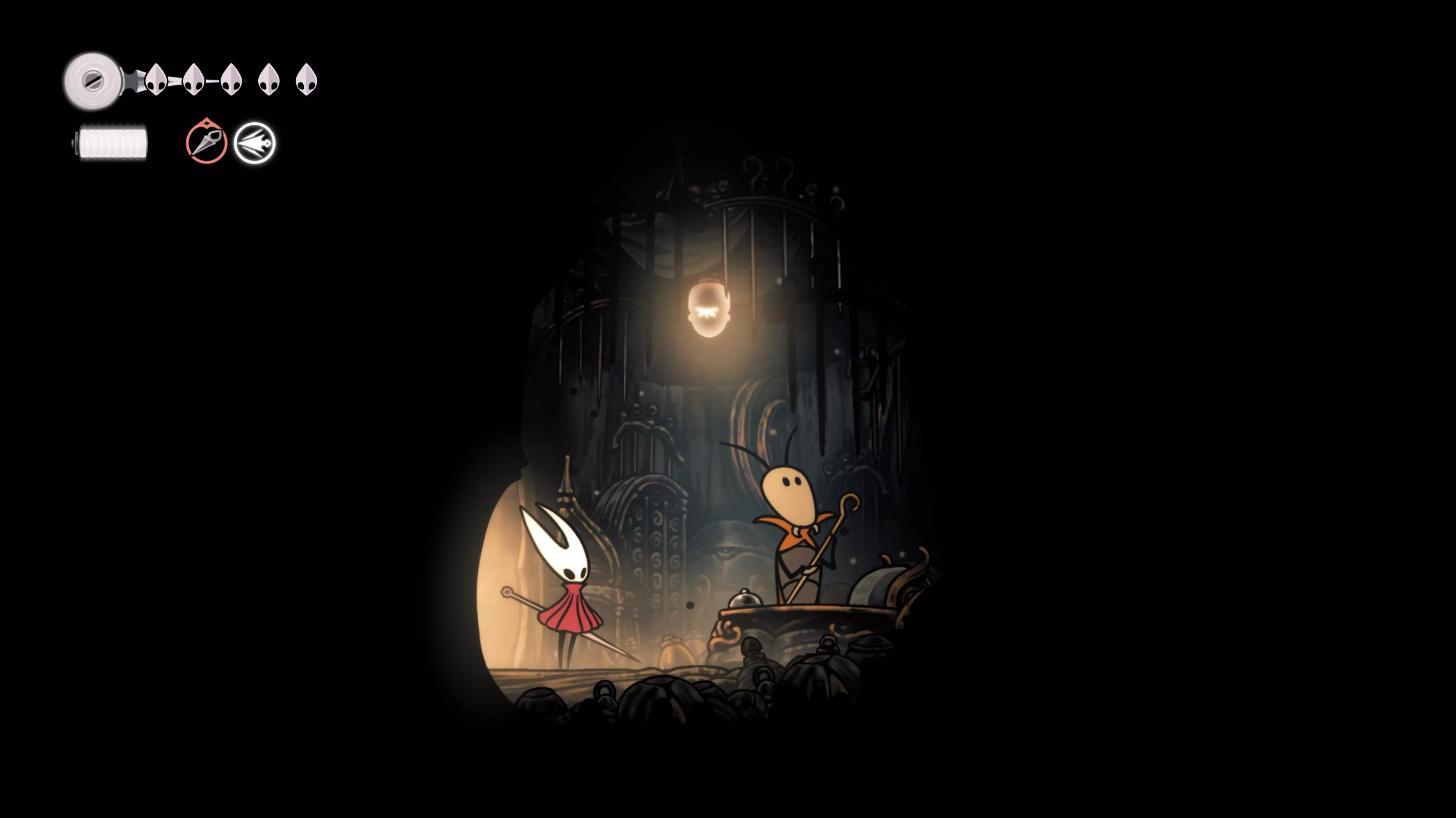 接下来需要穿过这片区域并完全探索它,直到抵达顶端。这里的平台跳跃可能并不简单——记住,你可以将钉子扔向带刺的石头,霍恩特会自动弹开。抵达顶端后,使用【王之翼】进入【电车门】。