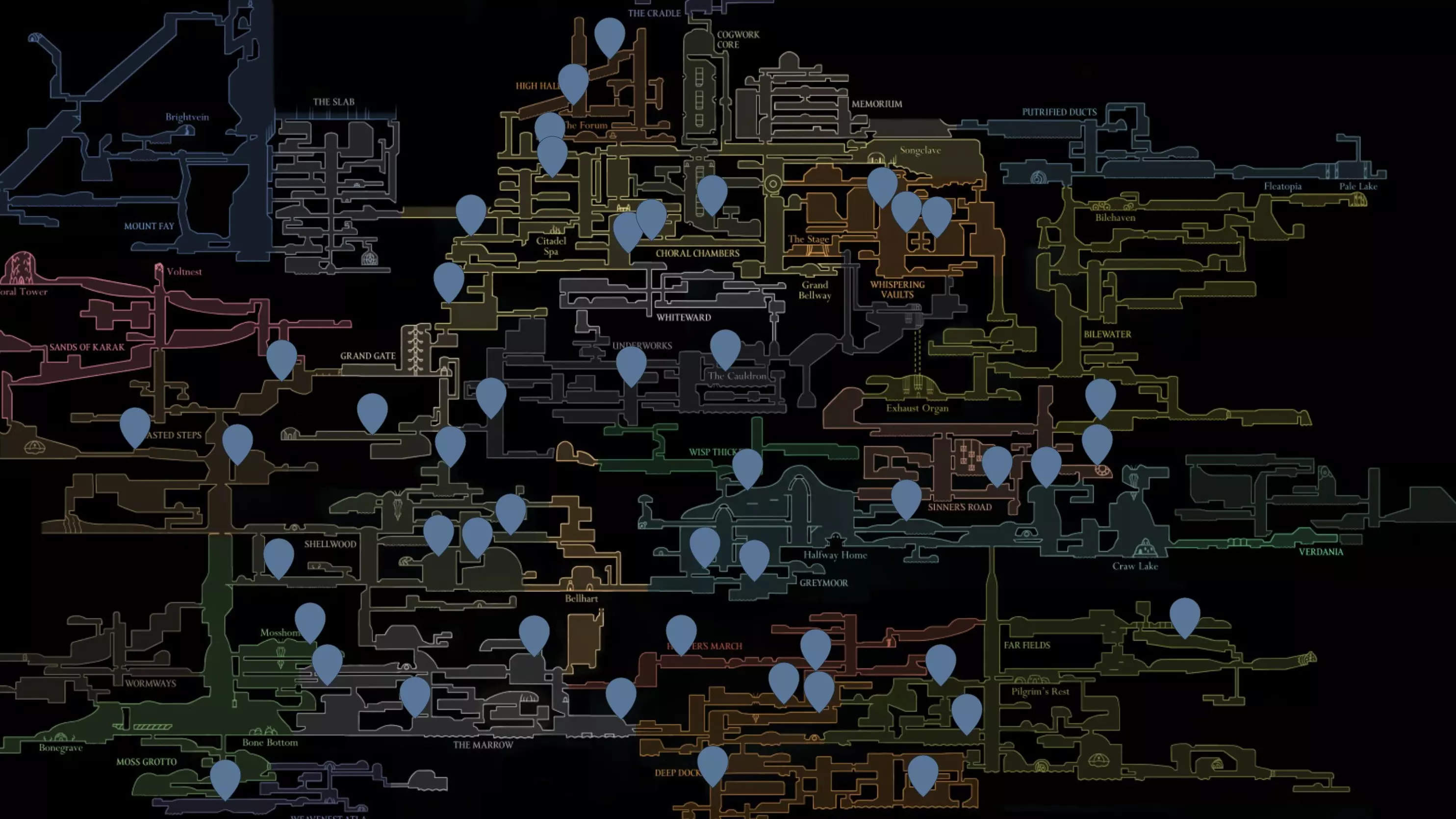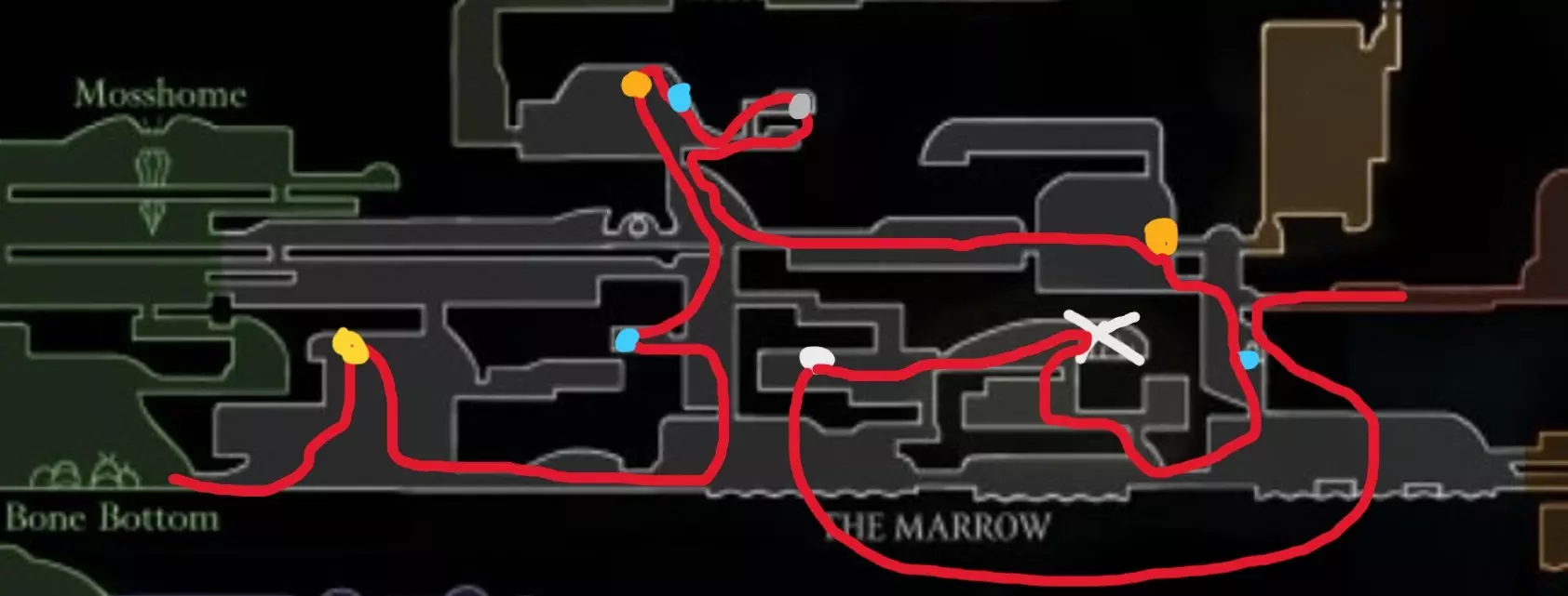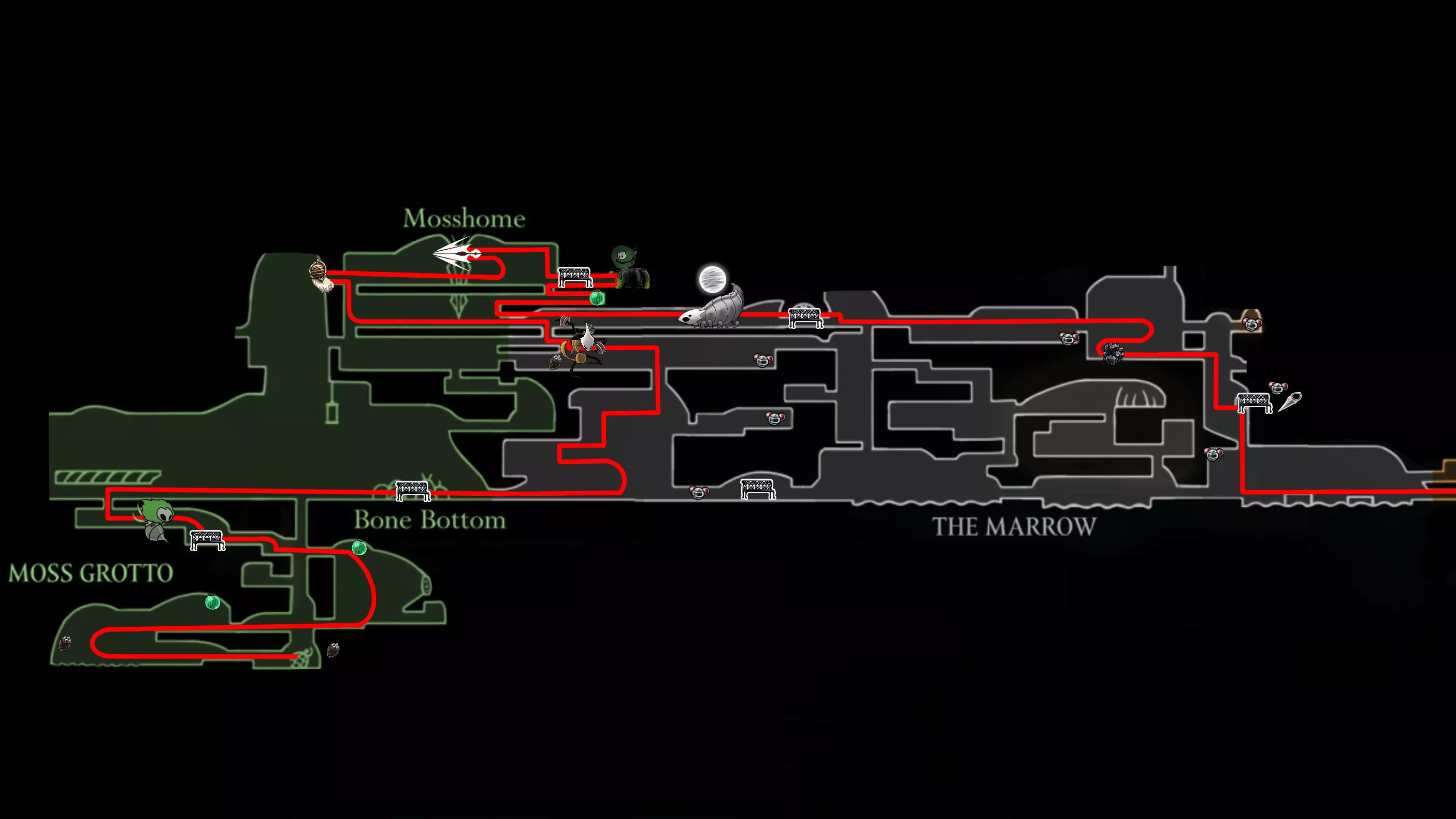 互动地图 这里标记了法鲁姆的每一个细节——如果你难以找到截图中未显示的内容,它会很有用:【Silksong (MapGenie)】 此外,还出现了一张由超过5000张截图整合而成的新地图。在这张地图上,你可以详细查看每一个区域:【Scripters War Interactive Map】 开始吧!苔藓洞穴速通 大部分物品都可以直接跳过并向前奔跑——只需注意在与苔藓之母战斗前可以收集到的两个沼泽浆果。 学会使用45度角跳跃来加速移动——这是游戏前期最快的移动方式。