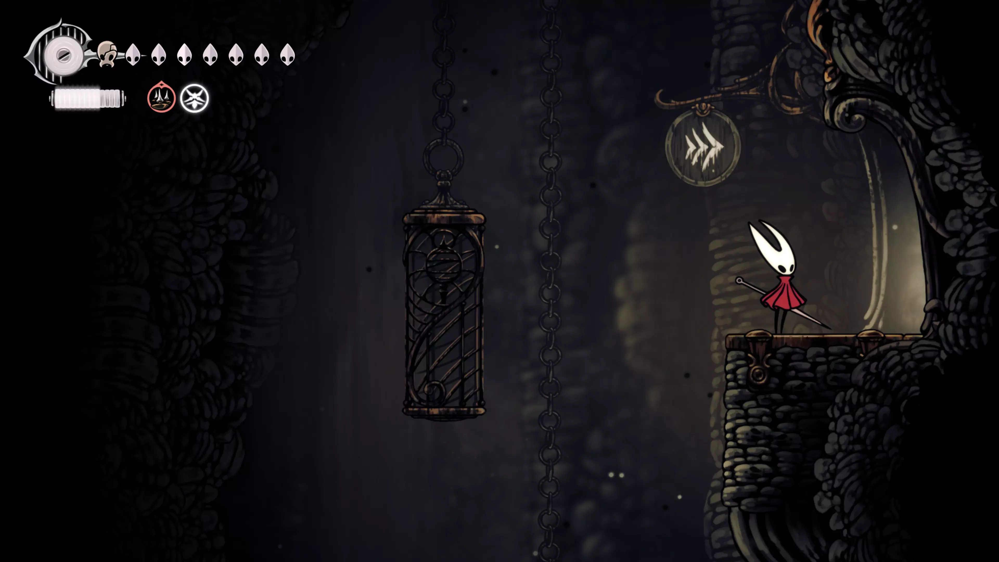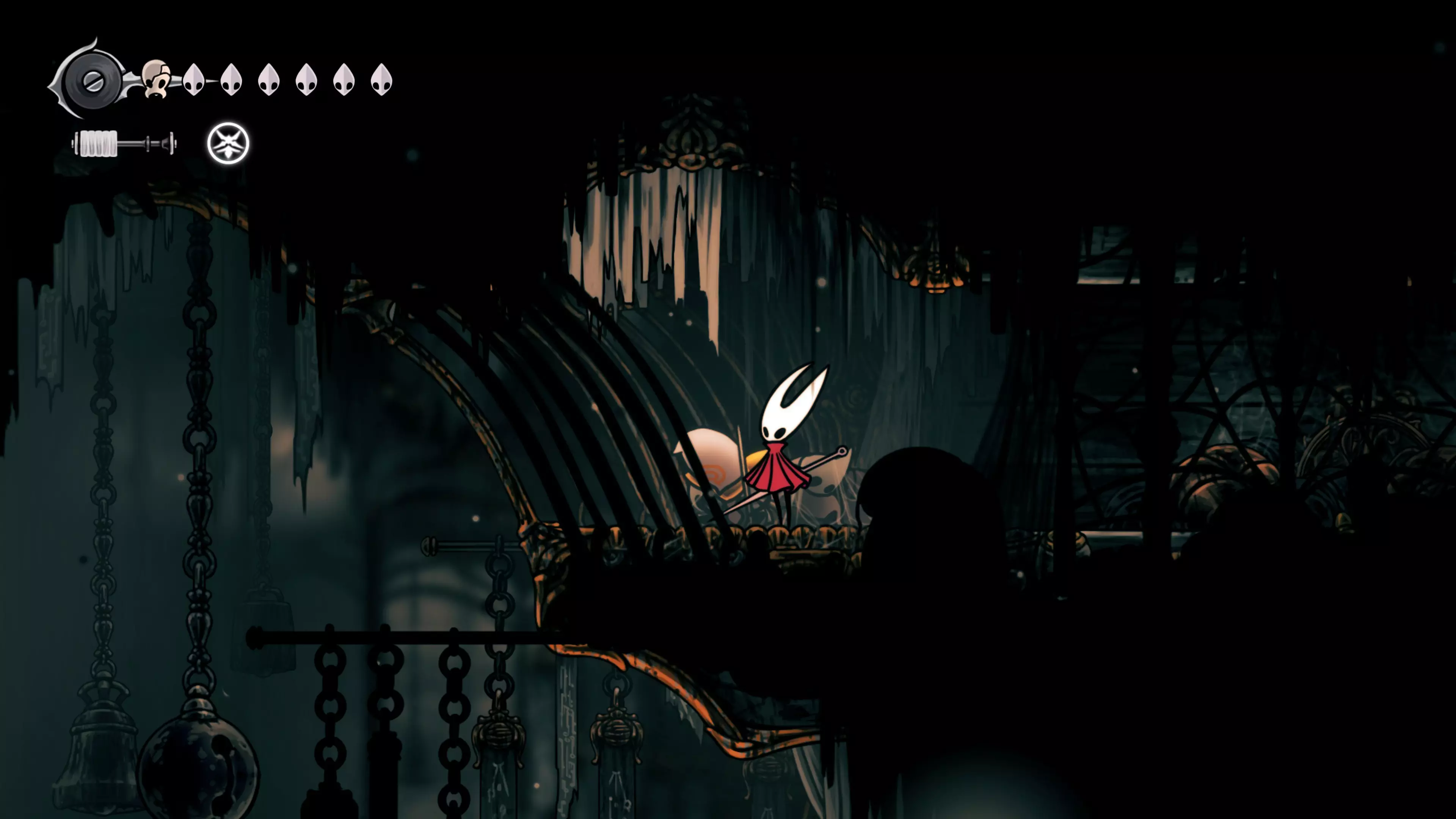 获得抓墙能力,然后跑向该区域的右上角。在这里你会找到一个有钟的地方——进入后从中间下方离开,以到达寡妇处。