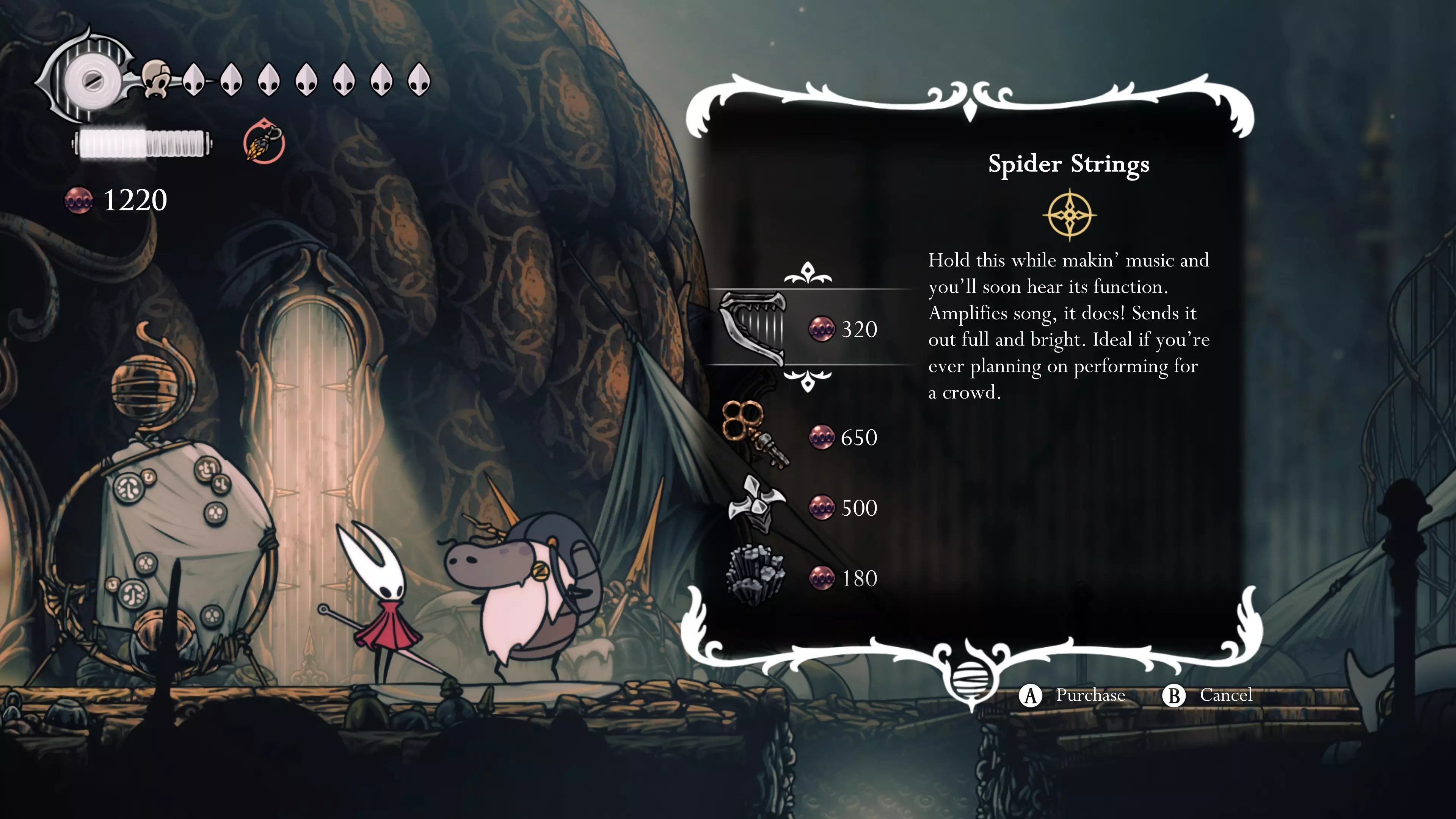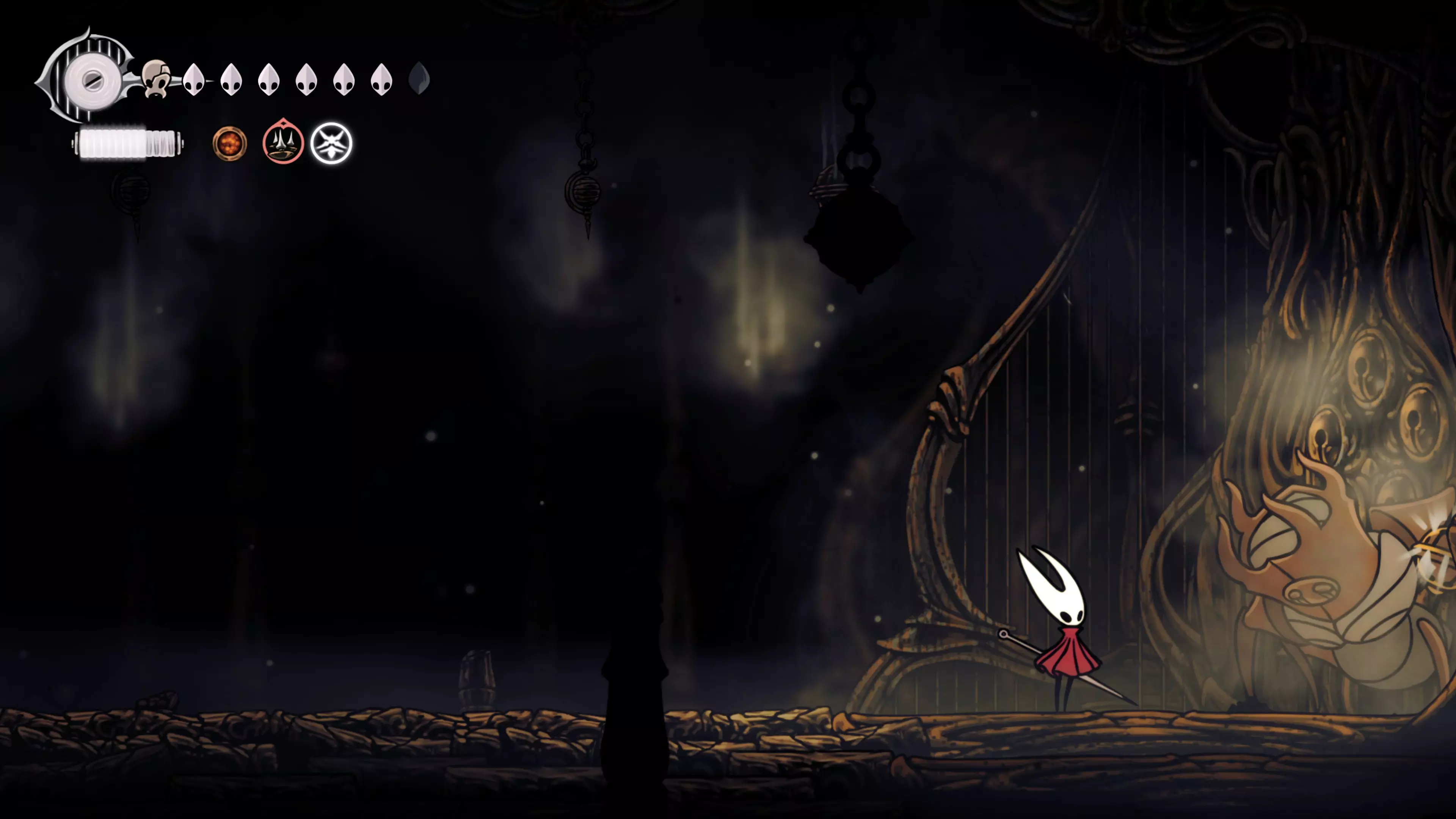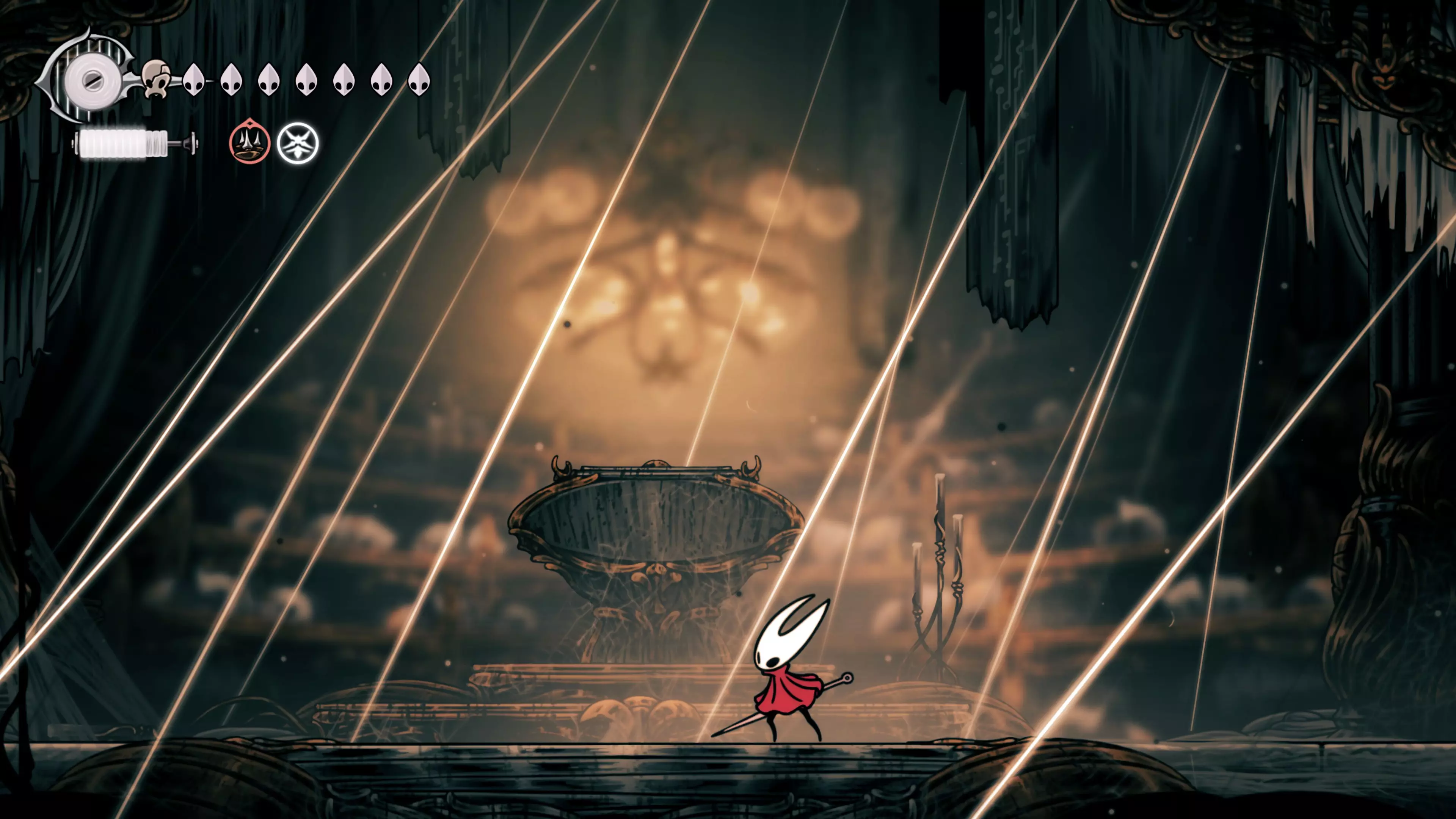 这无疑是游戏中最精彩且最困难的战斗之一。卡梅丽塔动作迅速且狂暴,战斗就像一场舞蹈——她移动,你便紧随其后。你可以反弹她的投射物,而弹反很有帮助,因为她会格挡许多来自下方的攻击。获胜后,你将获得最后一颗【歌唱之心】。