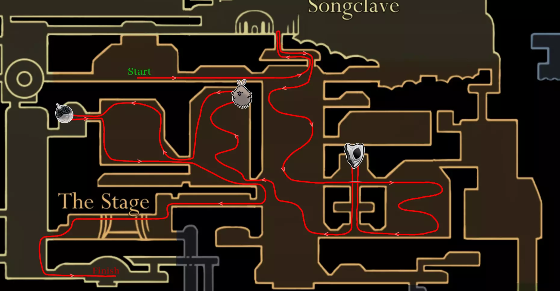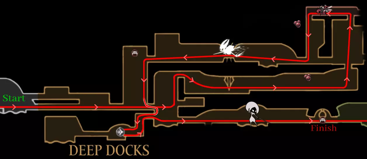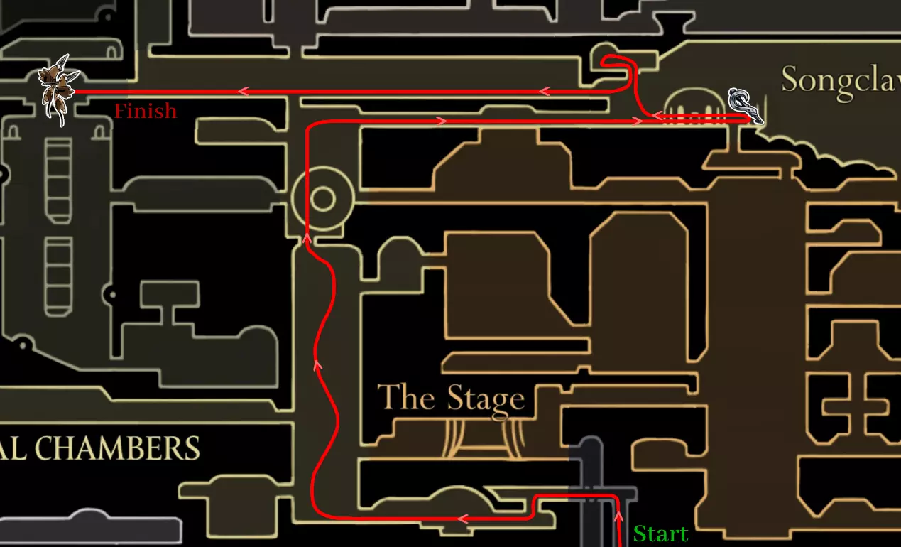 作者前言:如果您是首次游玩这款游戏,我强烈建议您在不看任何提示的情况下进行游戏——这样才能获得最完整的体验。但如果您正在寻找一份能帮助您尽快收集达成100%所需全部物品的指南,那么这份攻略就是为您准备的。 需要说明的是:在【钢铁灵魂】模式中不能死亡,因为这是一个永久死亡模式。这需要更加专注和努力才能一次通关。本指南的主要目标是展示最佳路线,让你能够以最快且连贯的方式通关游戏,同时尽量减少回溯。 指南的第一部分专注于速通第一幕,直到你解锁二段跳。之后将进入收集所有物品并100%完成关卡的阶段。此外需要注意:击败沿途遇到的所有敌人——这有助于更快完成努的心愿,同时还能积累碎片和珠子。 一旦获得冲刺能力,最快的移动方式将是连续执行跳跃+冲刺的组合。这样你就能像速通玩家一样移动,虽然这并非必需(我自己就没用过,但这可能节省时间)。此外,使用嘲讽按钮(手柄上按右摇杆,键盘上按V键)可以立即开始与Boss的战斗,跳过对话,还能在任意响轨车站召唤钟楼巨兽。 我完整重玩游戏花了大约18小时,其中部分时间用于探索地图和规划路线。你的成绩甚至可能更好,这取决于你完成第一幕速通和击败 Boss 的速度。 需要特别说明的是:提供的路线是推荐路线,但并非完美。你可以根据自己的游戏风格调整游玩顺序。不要害怕尝试——这只会提升你的游戏体验。