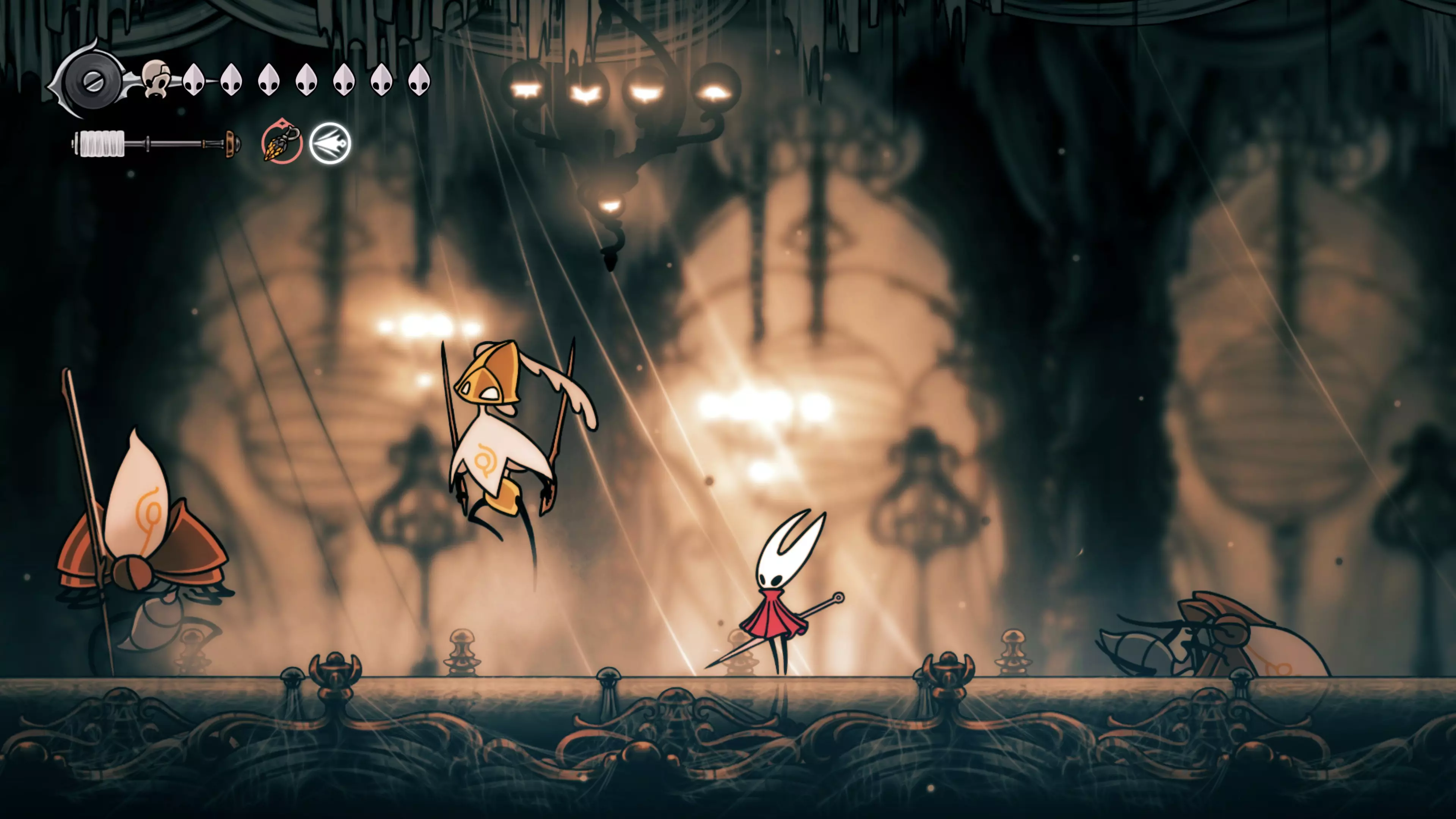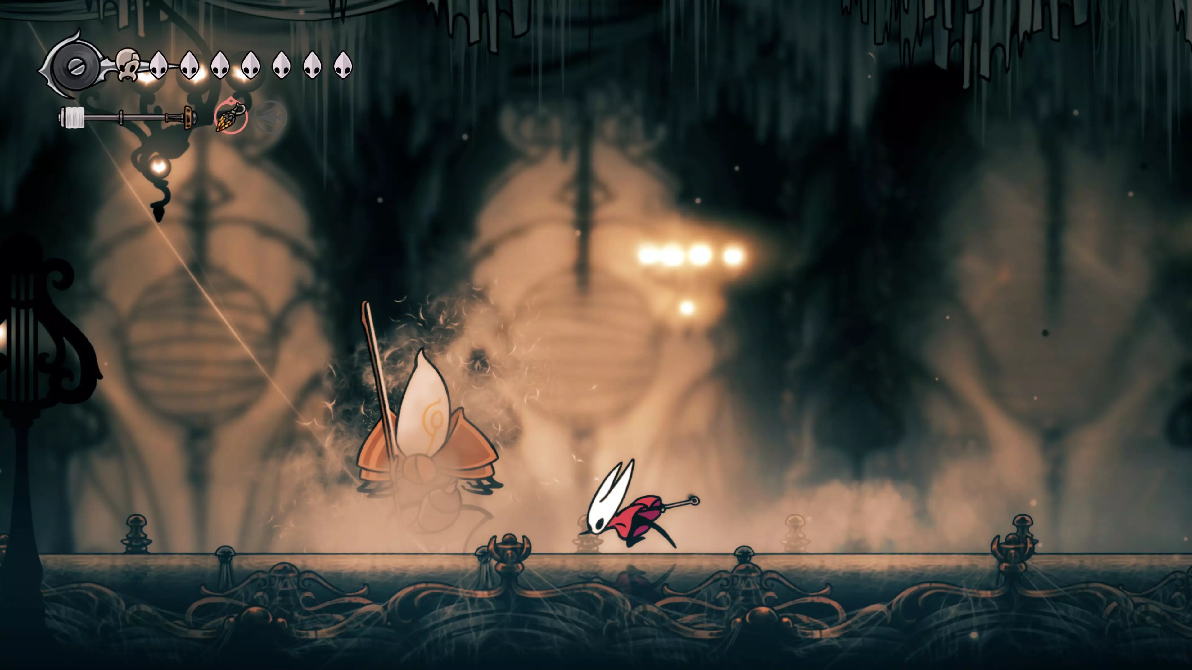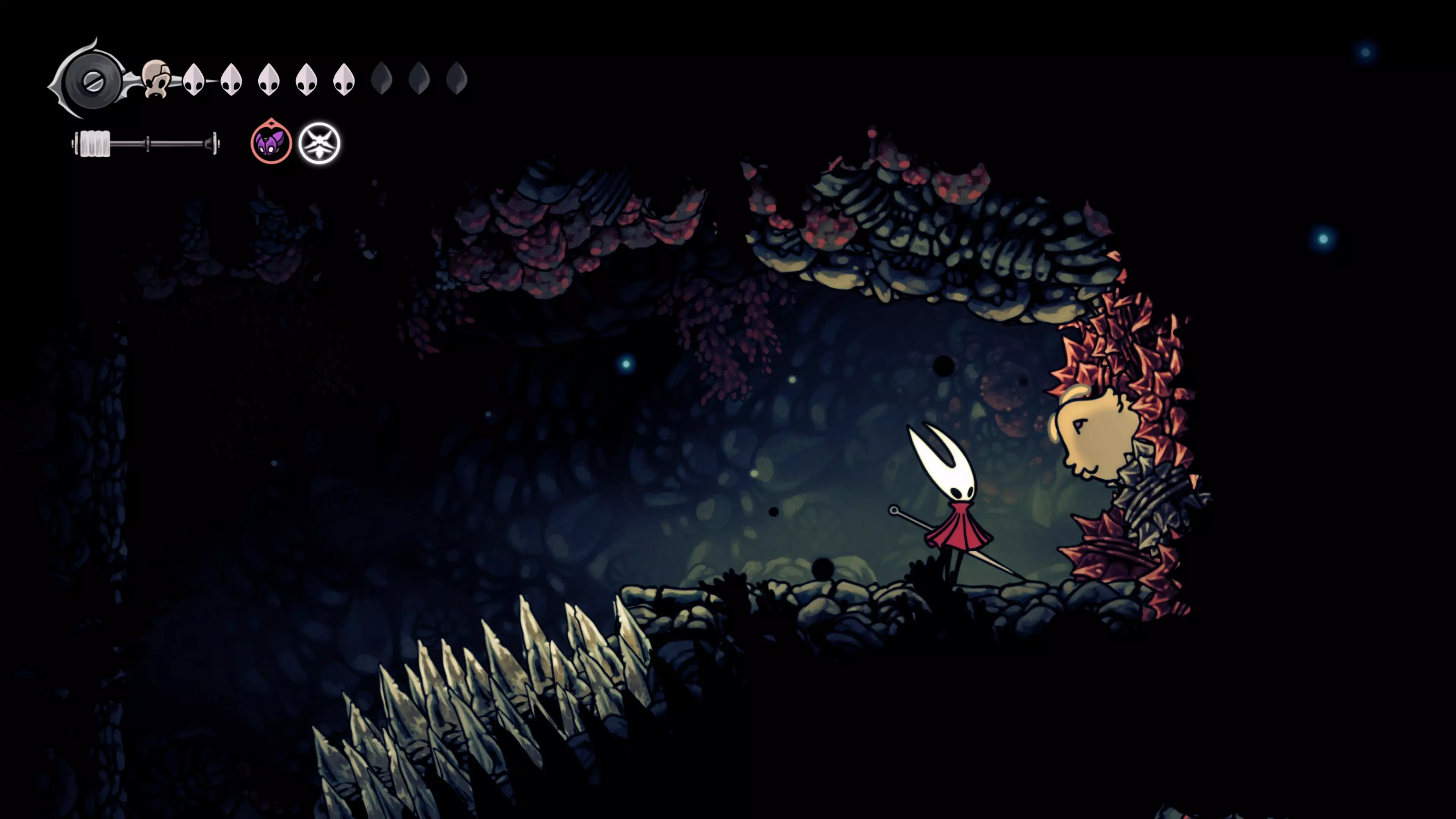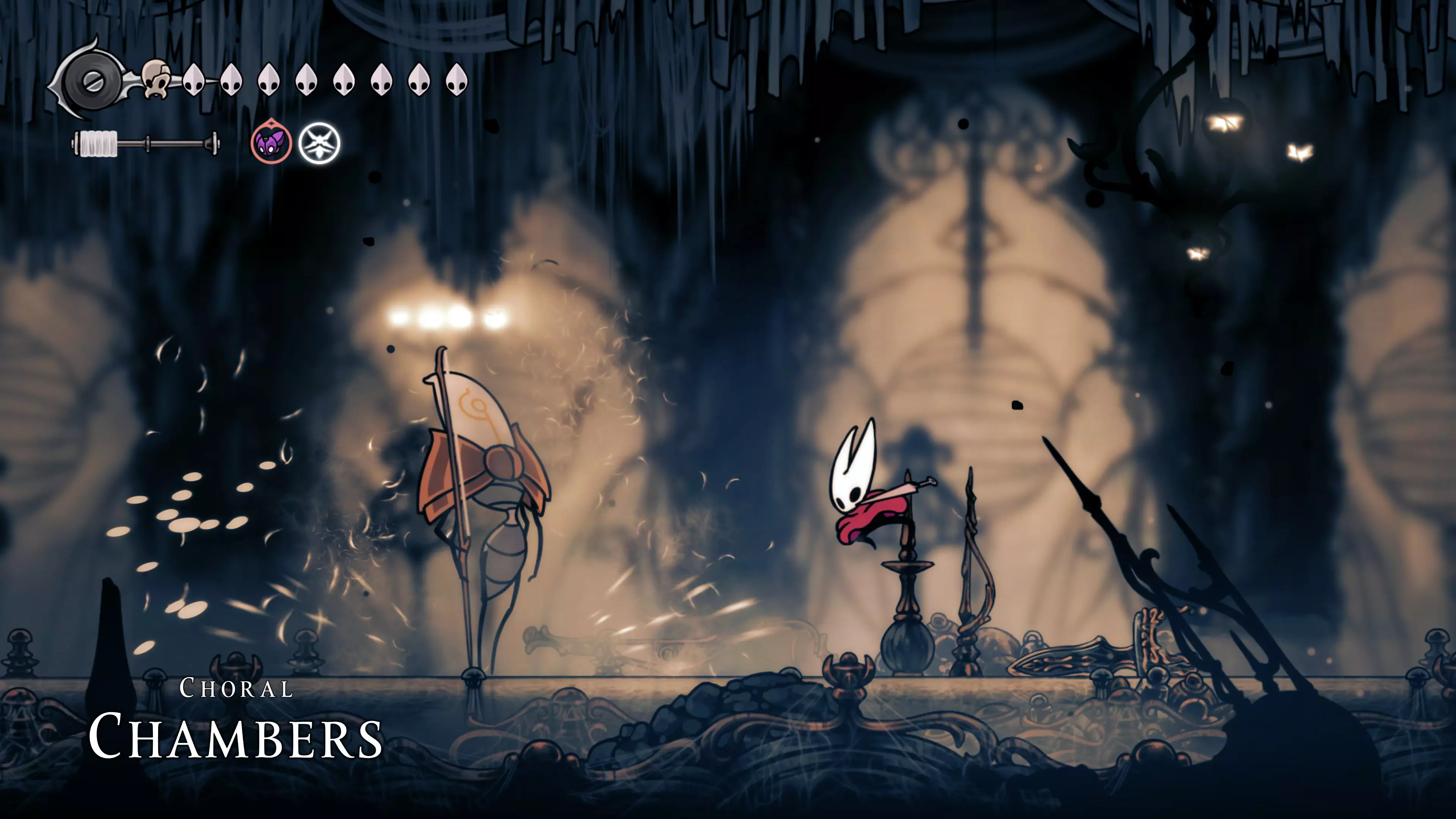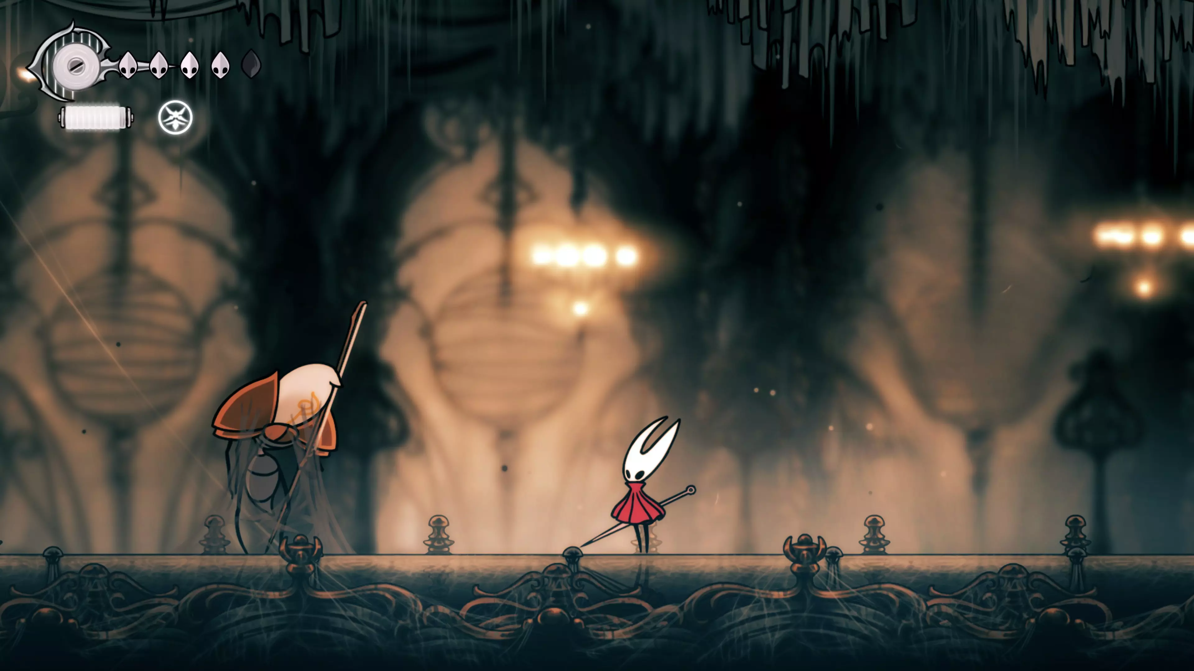 在森林区域前进时,你会遇到准备战斗的塞塔。这场战斗是Team Cherry向塞塔·古德曼致敬。