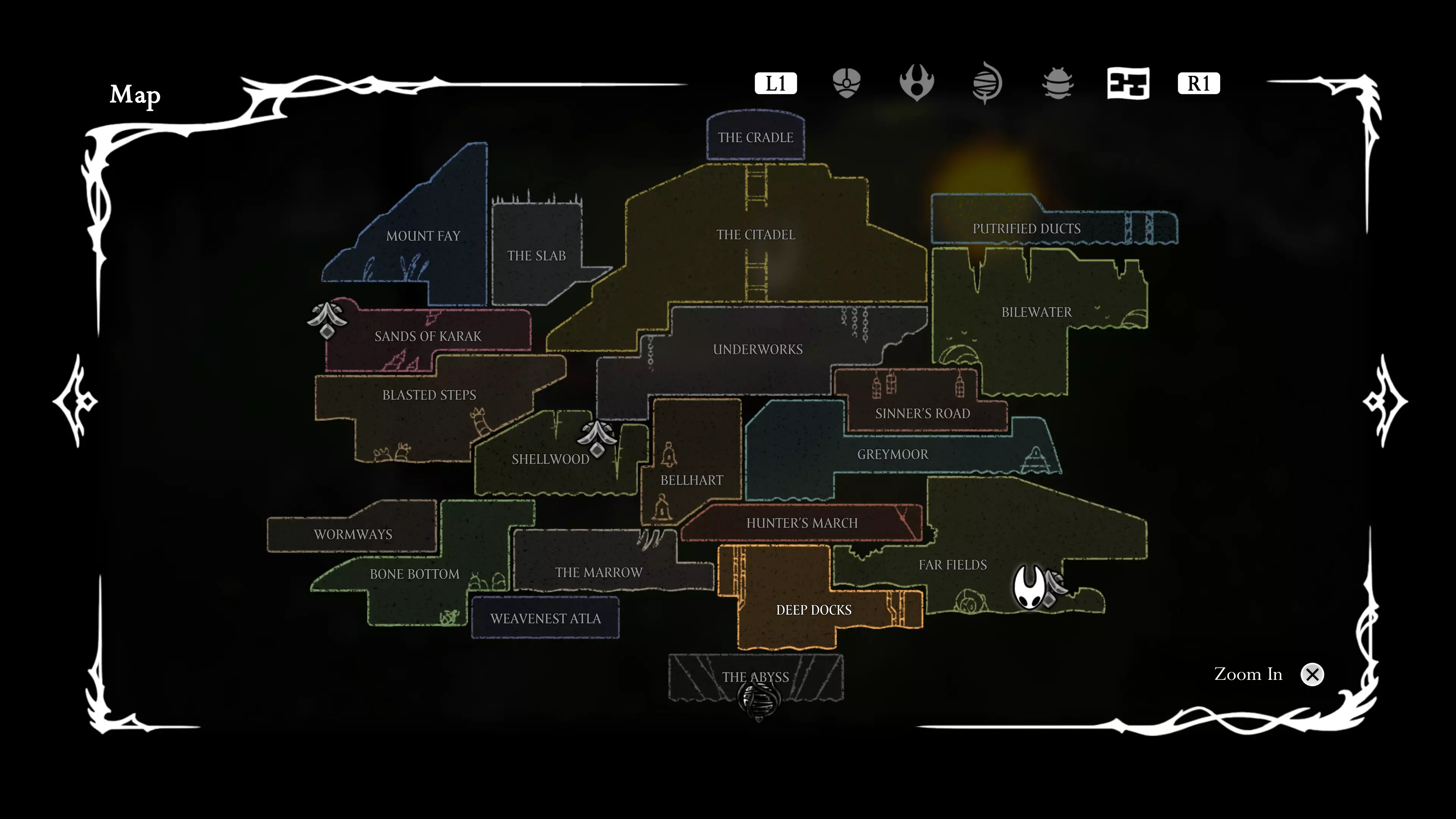 苔藓洞穴 远方田野 腐烂排水沟 上层殿堂 装甲森林 卡拉卡沙漠 她为我标记的地点: