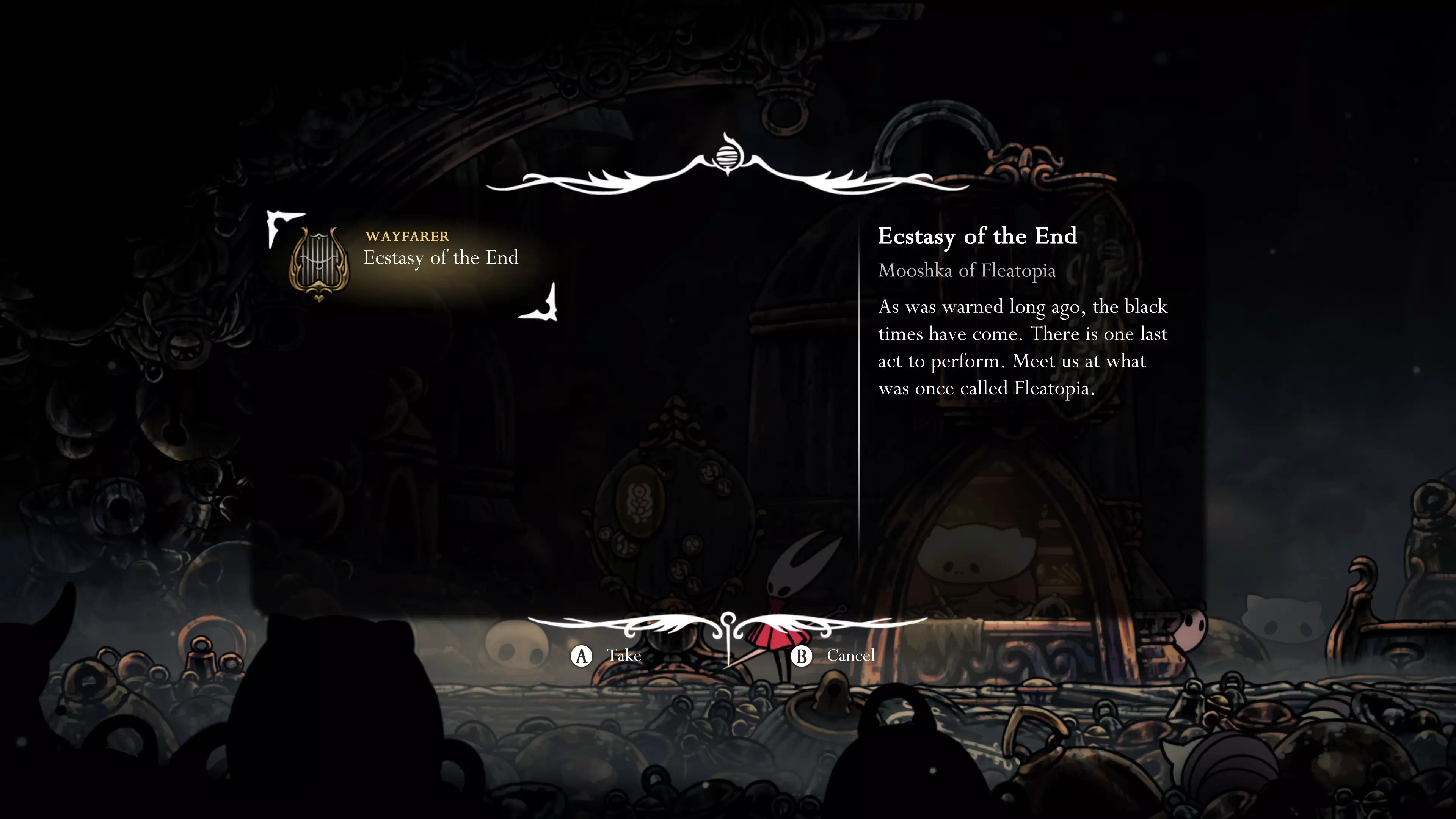 在所有迷你游戏中获胜后,跳蚤首领穆什卡会庆祝你的胜利,你将获得最后一份苍白之油。