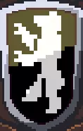 生成点:魔法粉树 岛屿:5 解锁成本:4宝石 成本:12金币 地形行走速度奔跑速度耐力加成 田野默认默认约16秒约48秒 森林+8.5%+5% 当独角兽在草地上吃草时,会“喷射”3枚金币,大约每12秒可进行一次,为君主提供轻松积累金钱的方式。除了这项能力外,独角兽可被视为马匹的不错替代选择,总体而言只是比默认马匹略有提升。 VI-I.纹章 在暂停界面的选项菜单中可以找到纹章选项。正确使用后,它将改变你的纹章外观,从而改变你的美学色彩!或者,玩家可以在暂停菜单中点击自己的纹章,调出一个通过按钮菜单自定义纹章的界面,但颜色选择是随机的,因此对纹章的控制精度较低。建议玩家如果想要特定的纹章并能在每个新游戏中复制粘贴设置,可使用选项菜单中的文本框来设置纹章。本指南的这些部分提供了正确使用该文本框的说明。当你在文本栏中输入信息时,请使用以下格式,不要包含“<”或“>”: <颜色1> <图案> <颜色2> <纹章> <颜色3> 颜色1 = 纹章背景、君主服饰以及部分骑士盾牌的颜色 图案 = 纹章上的图案 颜色2 = 图案以及部分骑士盾牌的颜色 纹章 = 纹章上的徽章/动物轮廓 颜色3 = 徽章/动物轮廓的颜色 例如,如果你想要一个黑白棋盘图案,上面有一条绿色的蛇,你可以输入: 黑色 棋盘格 白色 蛇 绿色 然后就能得到: