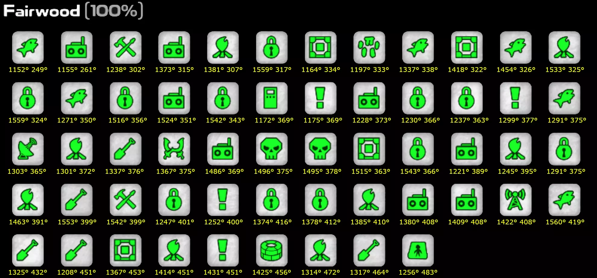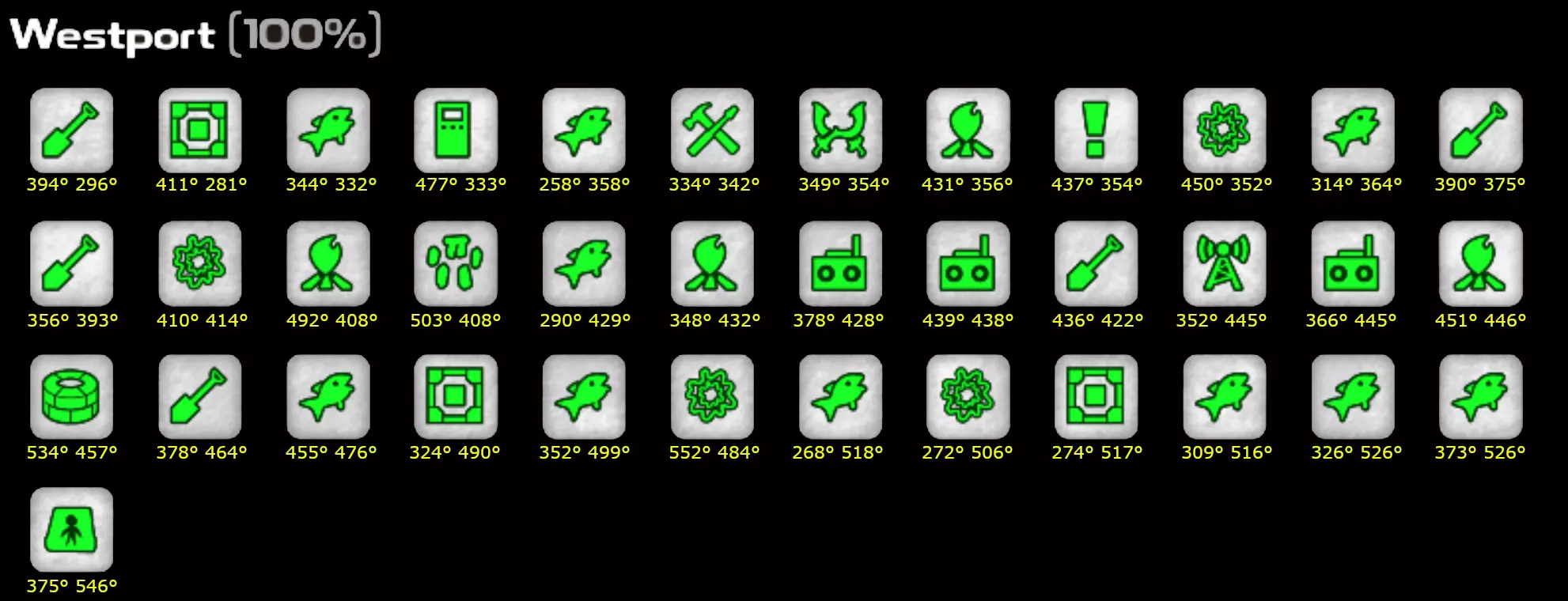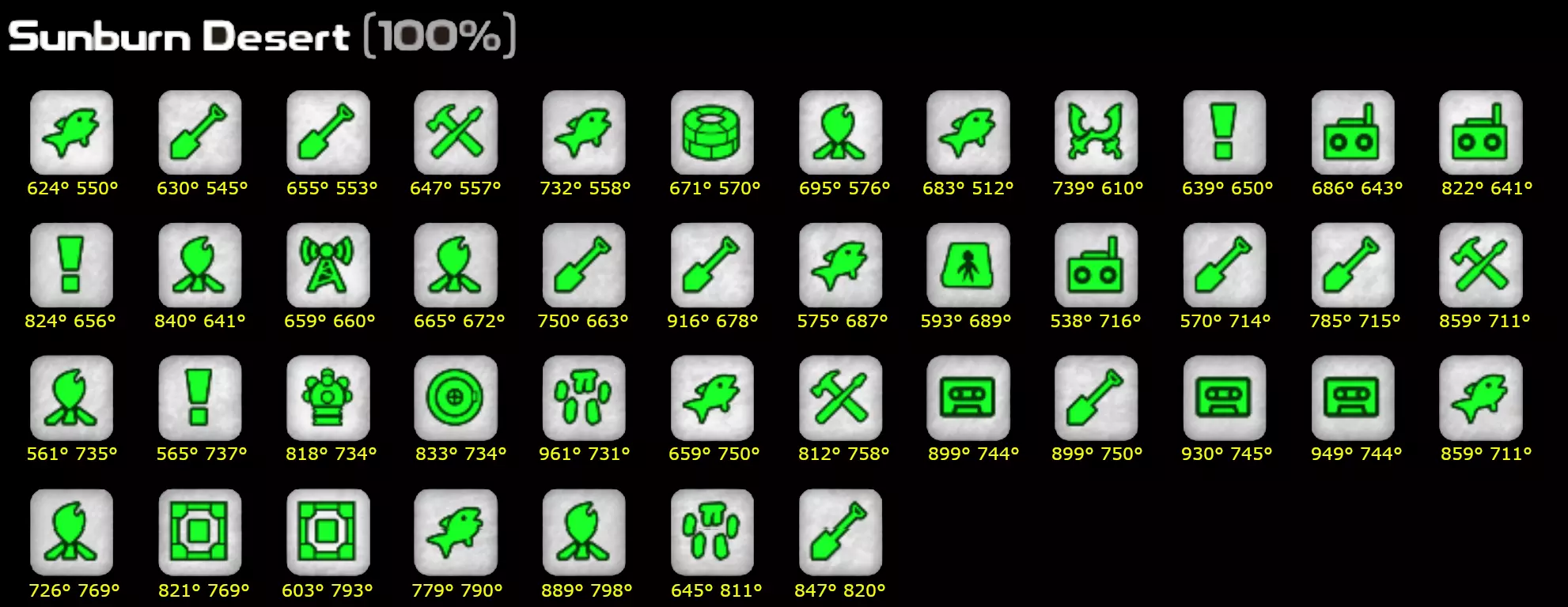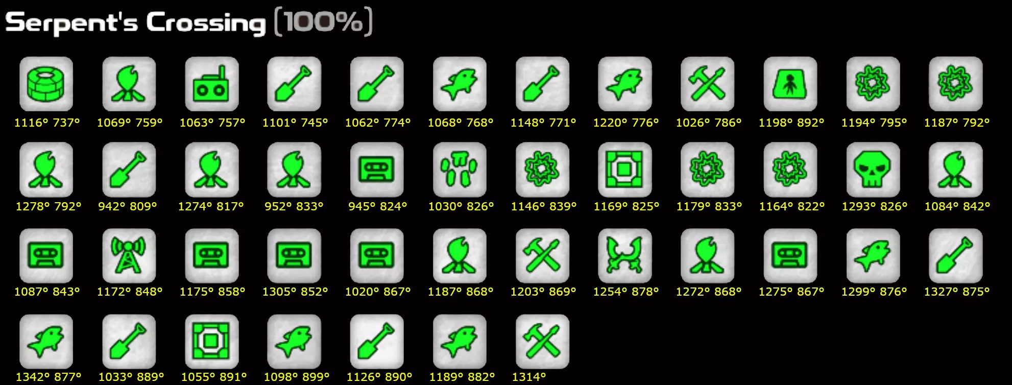 当我尝试完成兴趣点收集时,找不到能简洁显示我遗漏兴趣点位置的东西。希望这个能帮助到有同样困扰的人。如果坐标太小看不清,可以在新窗口打开图片。迦百农