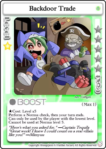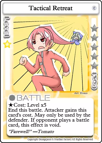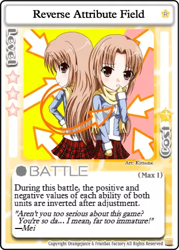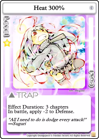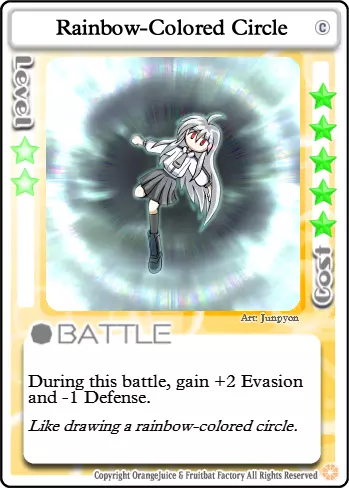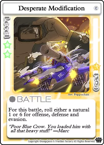 快滚,蠢货!这张卡牌的实用性很大程度上取决于对局情况。如果游戏中有像【Suguri】这样高闪避的角色,当他们生命值较低时,这张卡会让他们有机会在你强化后的攻击下存活。否则,它会让玩家更难格挡你出色的掷骰结果。