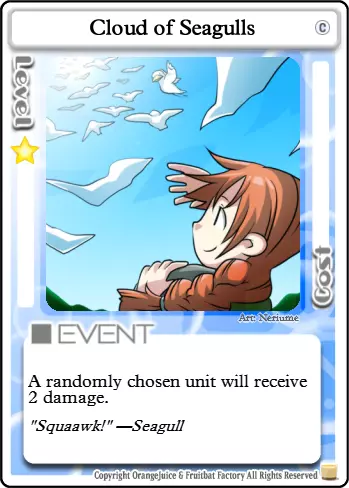 看起来像免费经验值 这张卡牌能帮你获取一些胜利,但由于夏海的攻击力增益机制,它并不可靠。你几乎肯定能至少击倒一次机械球,但满血状态下的小鸡会闪避你的攻击,而海鸥如果运气好的话也能造成伤害。