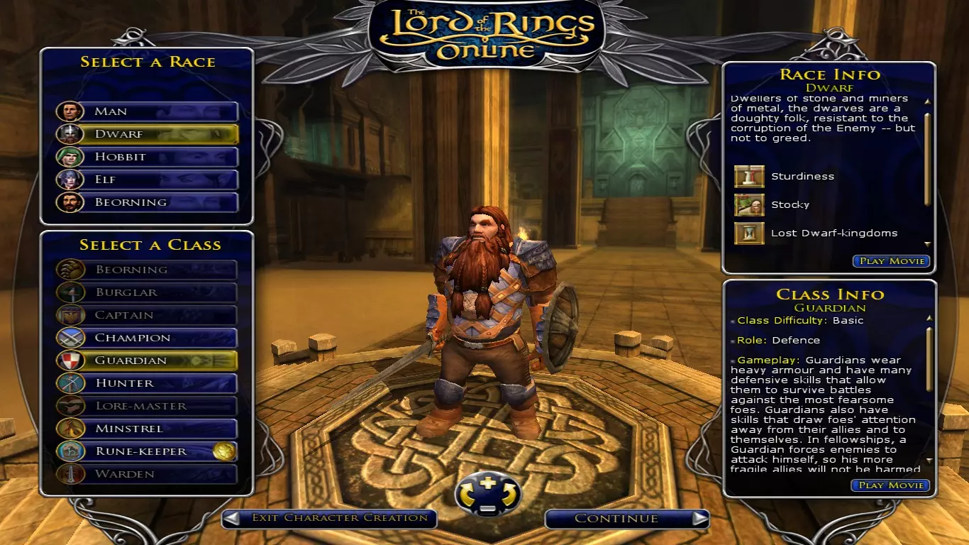 在我看来,如果你只打算创建一到两个角色,并且决心选择一个简单直接的近战职业,那么这个职业可能比守护者更合适。我这么说是因为,虽然组队很有趣,但在你差不多将任何角色练到满级之前, solo 玩法都将是你的主要内容,而以目前(撰写本文时)115 级的等级上限来说,这需要花费你不少时间。由于守护者的 dps 很低,他们在任何战斗中都非常慢。因此,作为“我的第一个《指环王 Online》近战角色”,这个职业可能是更好的选择。 那么,如果你选择冠军职业,应该选哪个种族呢?我会说人类(请不要认为我有性别歧视,是游戏中将人类称为“人类种族”——当然,托尔金的作品带有他那个时代的印记),不过矮人也是个不错的选择,精灵就不太推荐了。坦白说,这款游戏刚开始时等级上限是50级,那时角色种族非常重要,但现在随着等级提升,种族的重要性越来越低,而且所有种族都有有用的种族特性,所以如果你想选精灵,尽管去选,只是要知道精灵冠军需要几级才能赶上其他种族。 守护者 - 近战 - 可选择任意种族 - 穿戴重甲,可装备重盾,能真正“扛住伤害” - 经典重型坦克