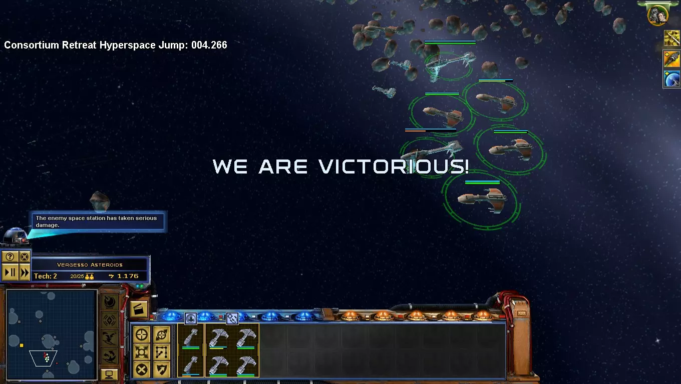 如果摧毁AI的空间站,它们就会撤退。如果你想快速征服,就主攻空间站,反之亦然。当你只与空间站作战时,自动解决战斗是安全的。