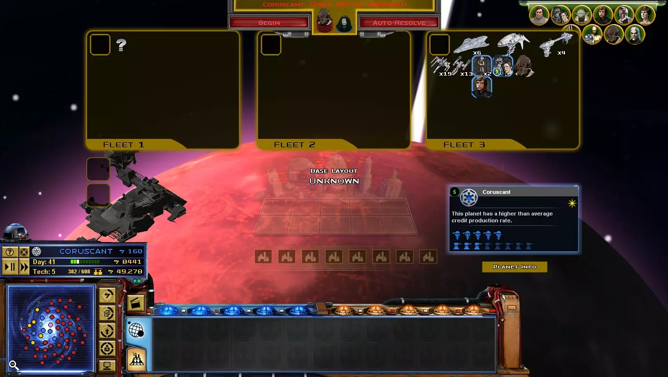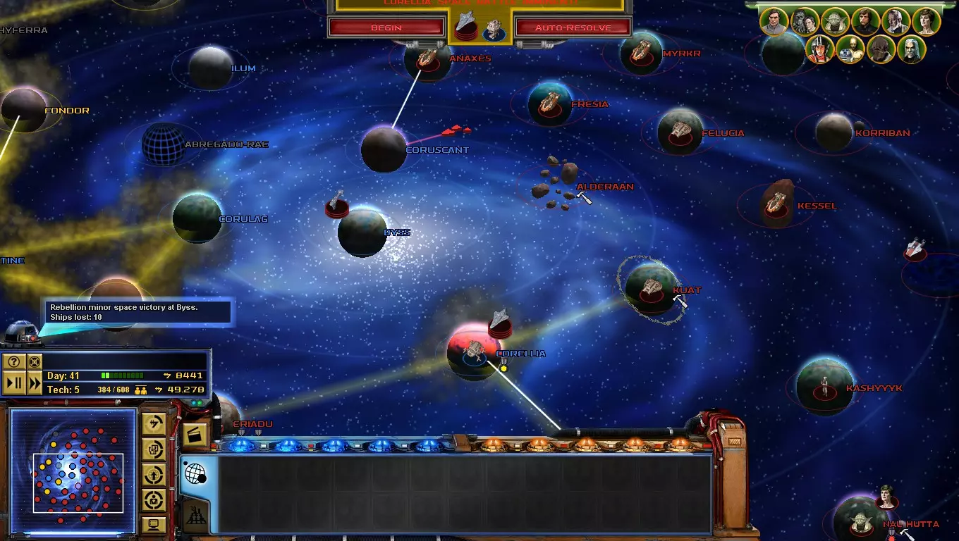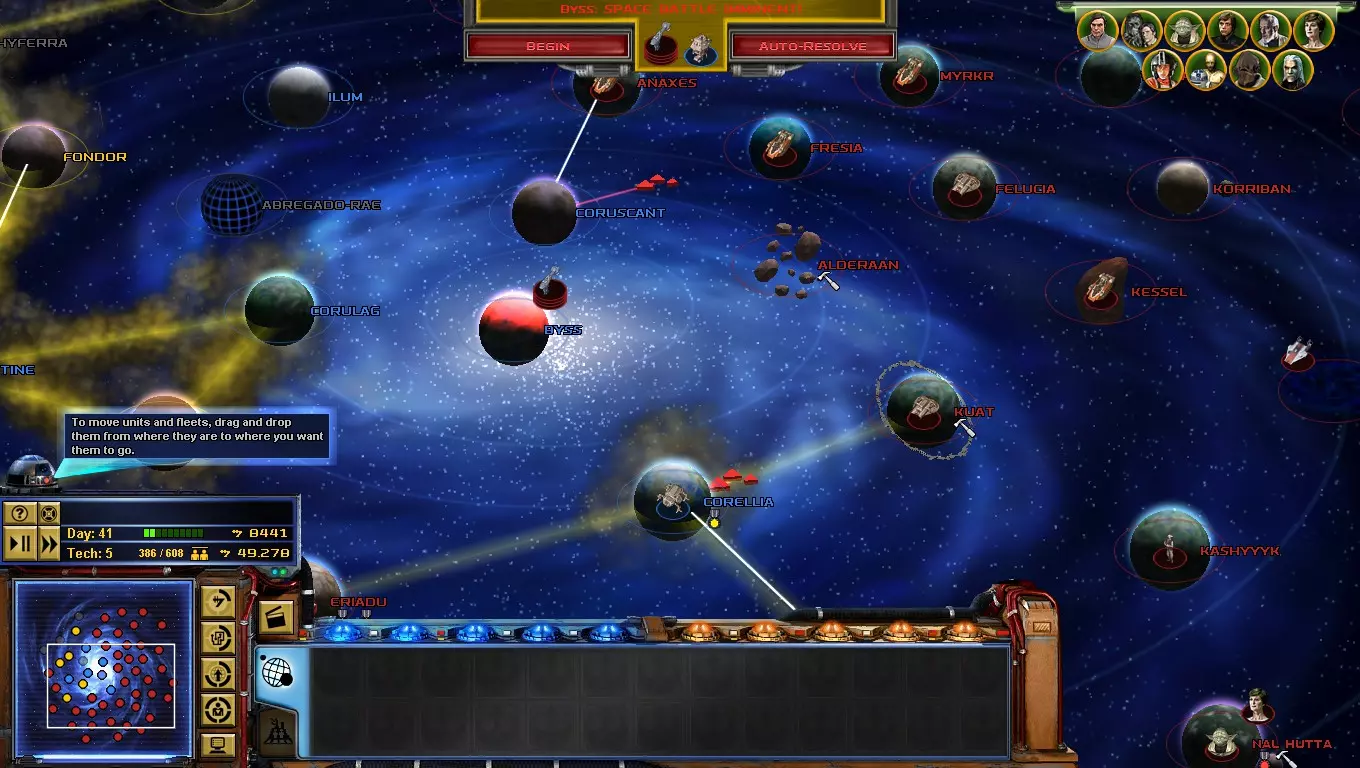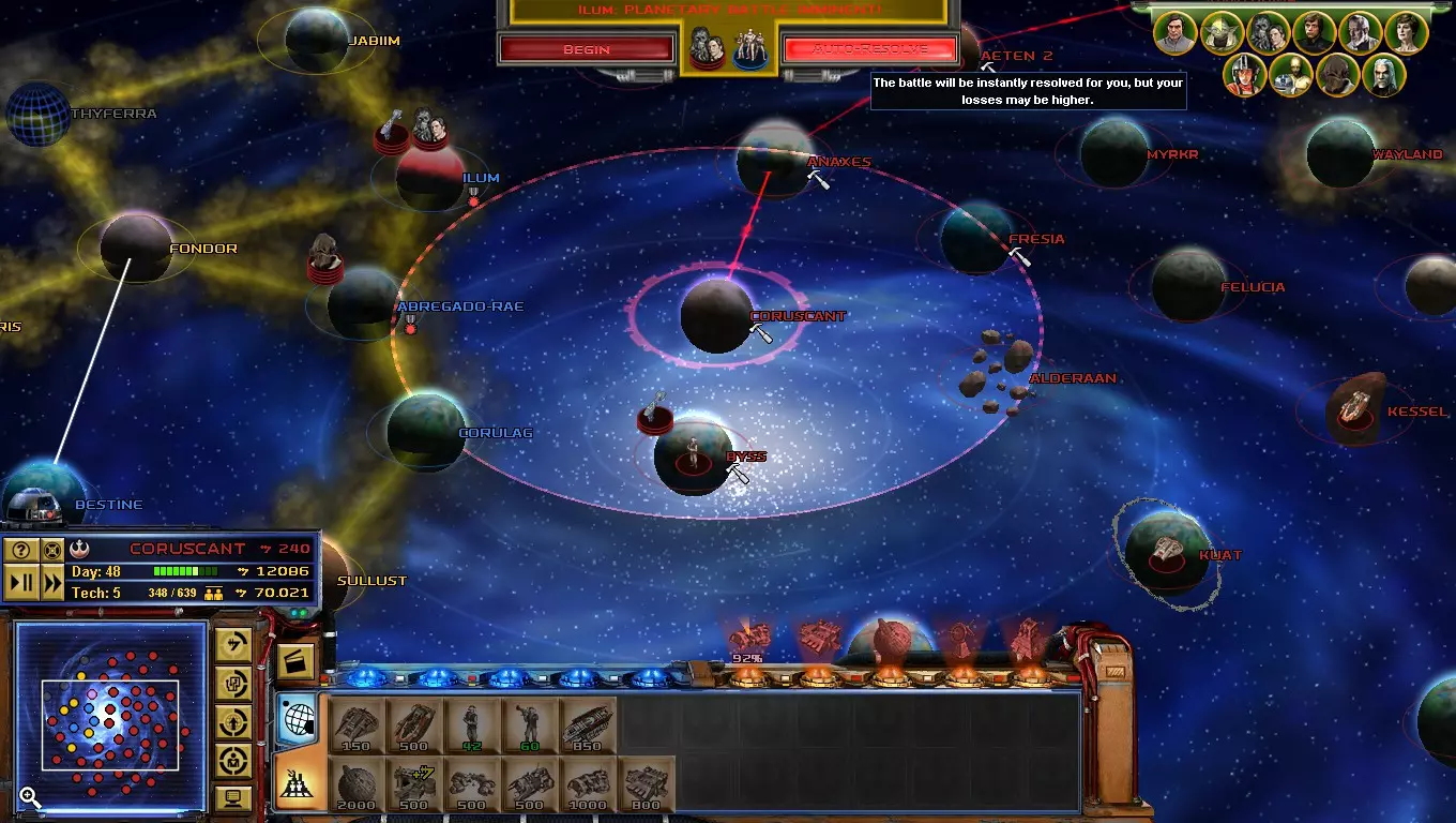 到了游戏的这个阶段,【星区联盟】是你面临的主要问题!只要发动决定性一击,你就能离胜利更近一步! 如何做到这一点?你必须突袭吉奥诺西斯、曼达洛、赖洛思、博萨威、肖拉、纳尔赫塔和塔图因……听起来很难!但你必须一个星球一个星球地完成! 不要急于求成,否则你会变得过度扩张! 祝你玩得开心! 吉奥诺西斯