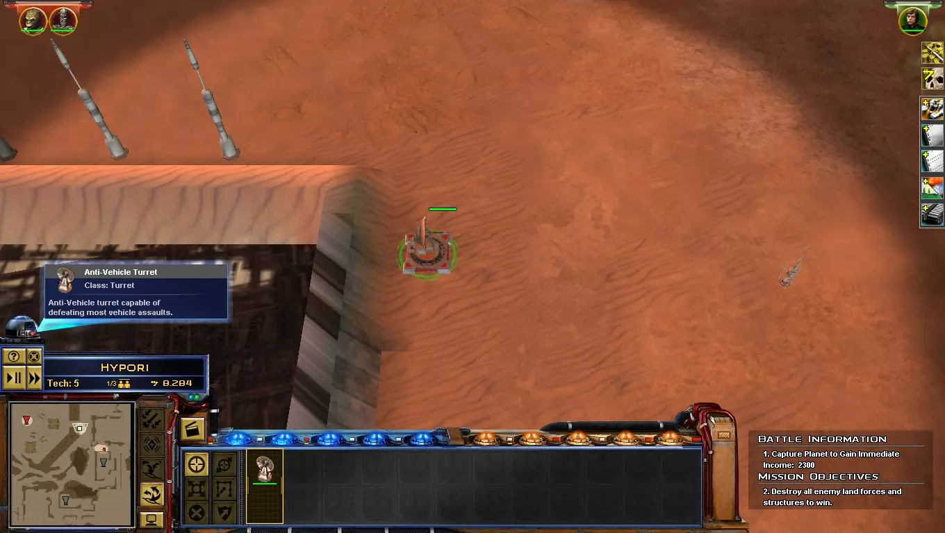地面作战技巧 -当地居民可能效忠于你或你的敌人,入侵时需考虑这一点。例如:卡希克的伍基人效忠于义军,这并非玩笑,借助伍基人你可以轻松占领整个星球,他们的实力极为强大。 -在前往敌方基地的途中或防御星球时建造炮塔,这些炮塔会永久保存在地图上,能轻松扭转战局。 -反载具炮塔对击杀英雄非常有效!