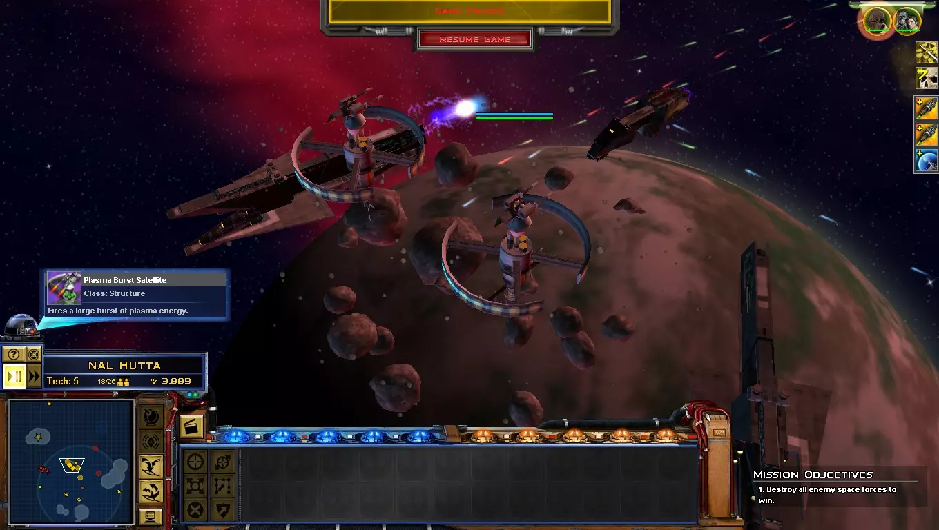 管理技巧 -作为叛军不要建造空间站,我们将采用不同的策略,你知道作为叛军不需要空间站!你需要少数能够建造强大舰船的空间站,并使用这些舰船保卫X星球 -建造2座离子炮,这样你就能更快开火,相信我,这将单凭一己之力赢得许多战斗!