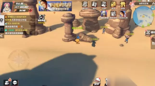 1 油菜花区域 藏宝图提示:在广阔的沙漠之上,与大片风化的巨大岩石为伴 宝藏具体位置:油菜花地区地图上的出口,走出城市后