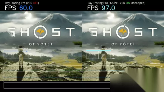 油管知名博主RajmanGaming HD专门录制了一段开启VRR后的对比视频,录制设备选用的是PS5 Pro。在PS5 Pro专属的光追Pro模式里,当关闭VRR时,游戏帧率为60帧;而开启VRR后,帧率能够飙升至90多帧,不过在遇到复杂场景时,帧率会下降到70多帧。
