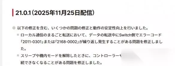 以下是Switch 2系统更新21.0.1版本的主要内容: