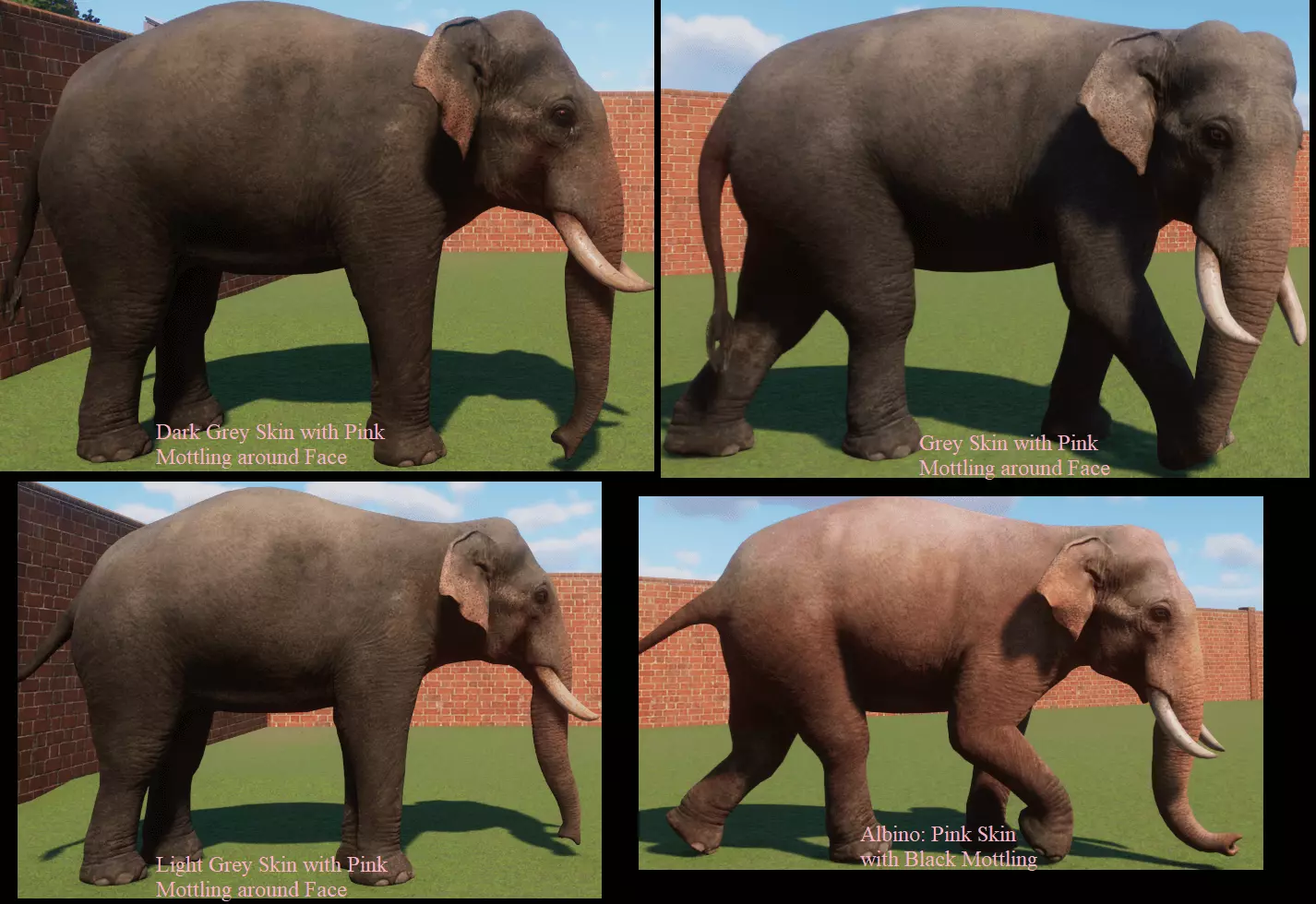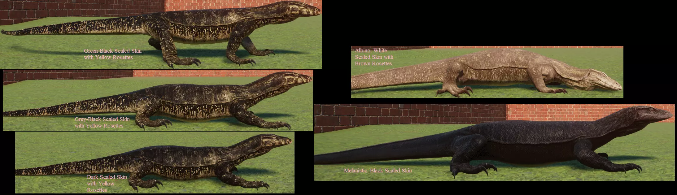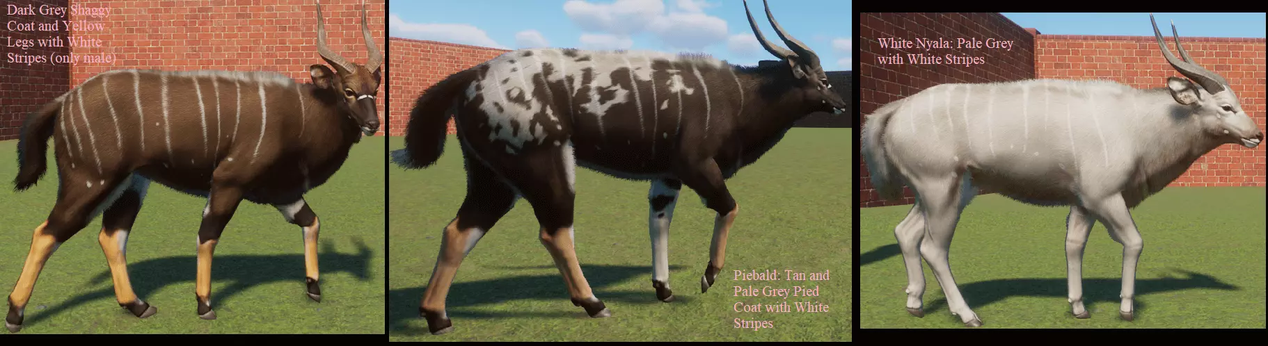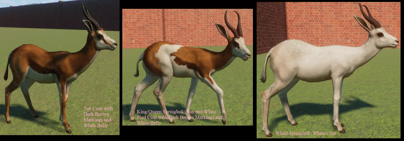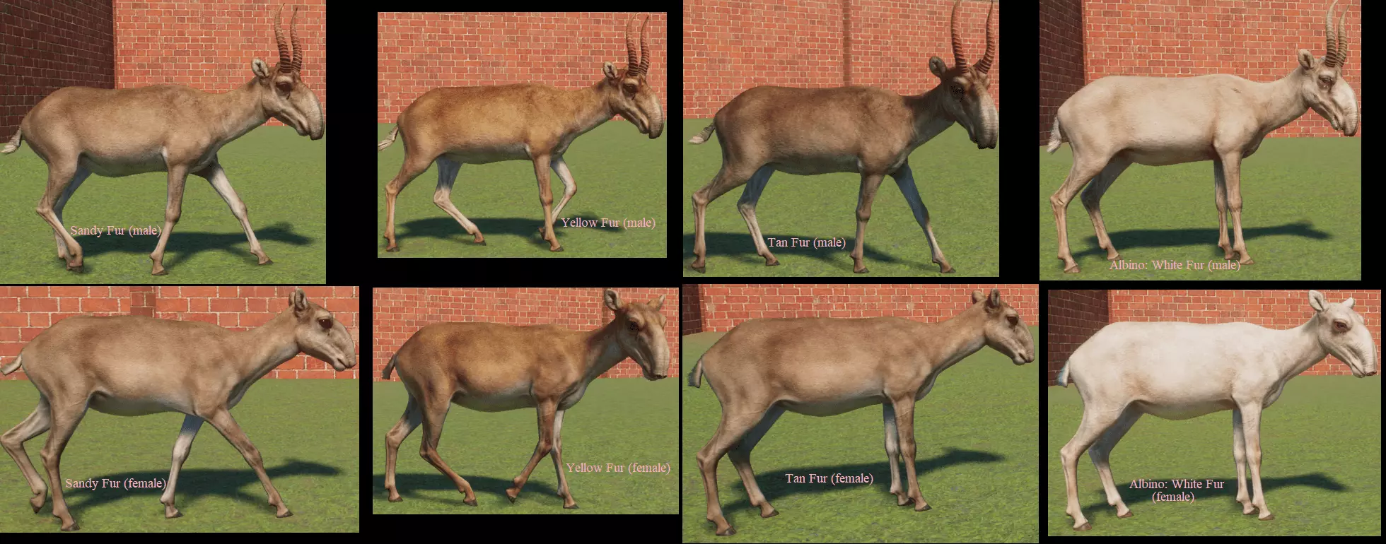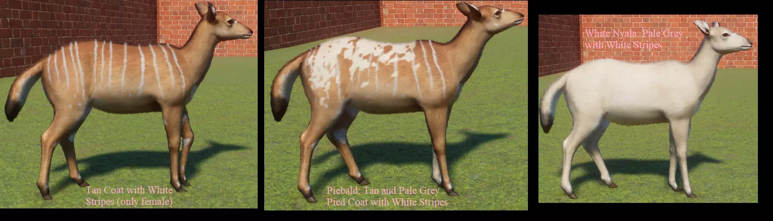 蓝牛羚 麋鹿 展示动物 展示中的大多数动物没有变种。我只收录了有变种的物种。 基础游戏: 蟒蛇